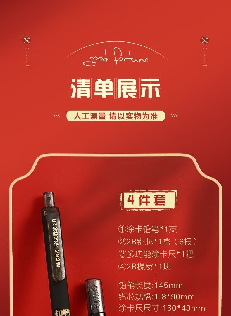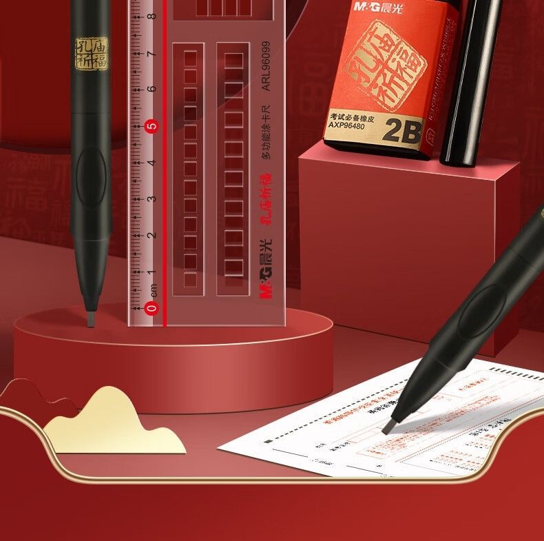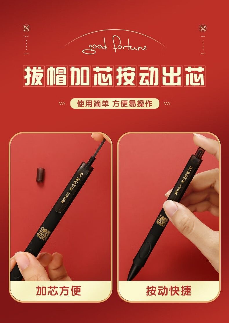 Chenguang 카드 자동 연필 구멍 사원 축복 카드 HKMP0334 검정색 2B 프레스 연필 심자 일자자 지우개스토어 가기