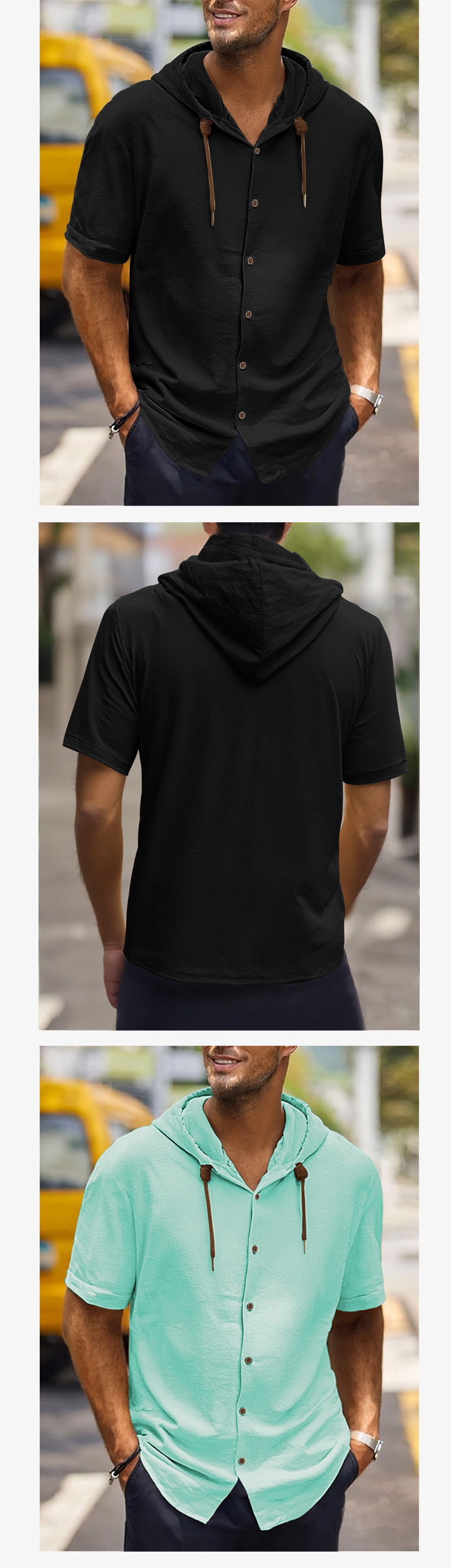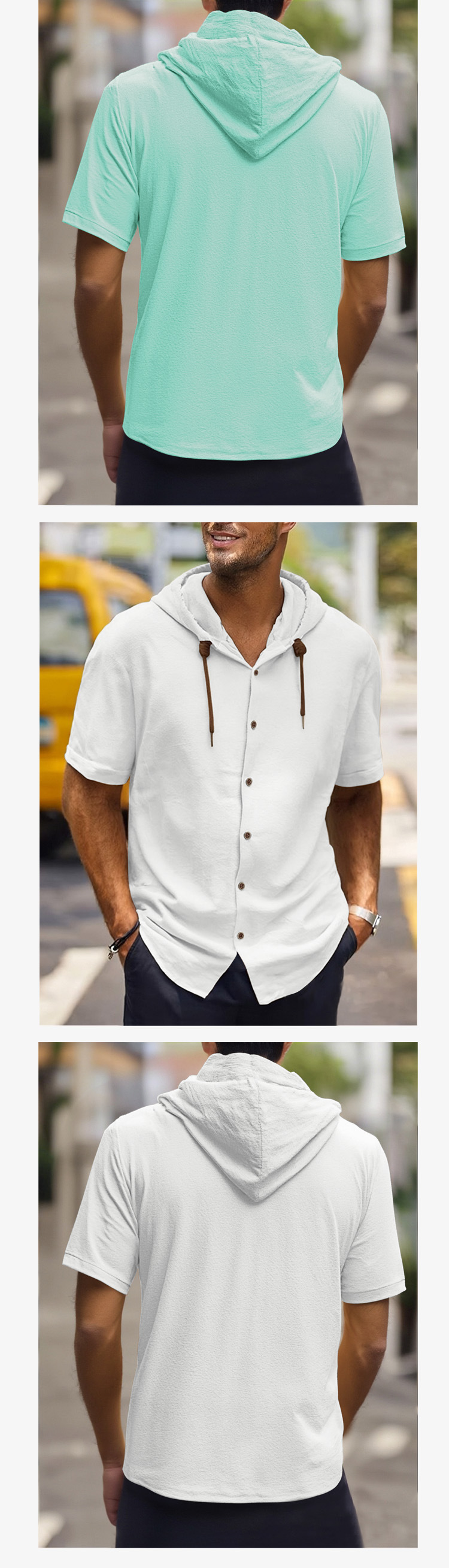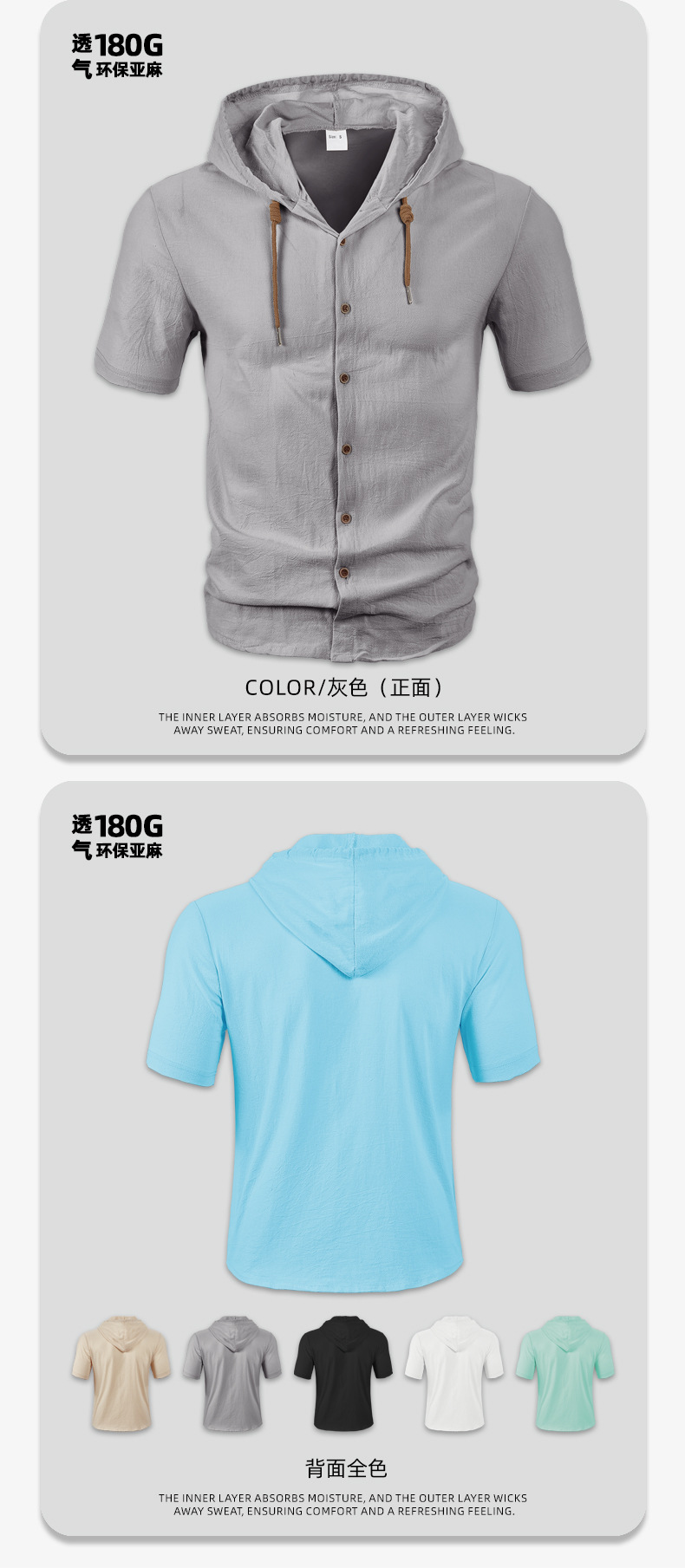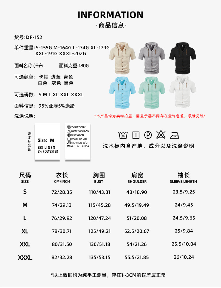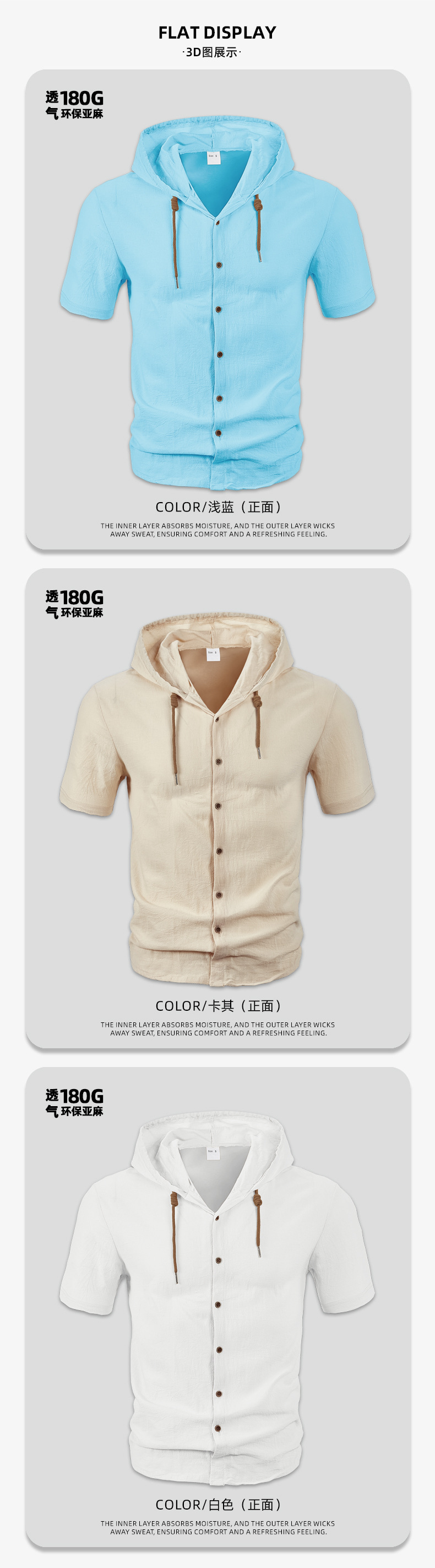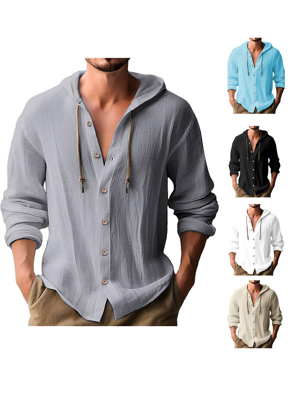 아마존 미국 린넨 남성 셔츠 대외 무역 패션 캐주얼 여름 통기성 얇은 후드 반소매 카디건 코트