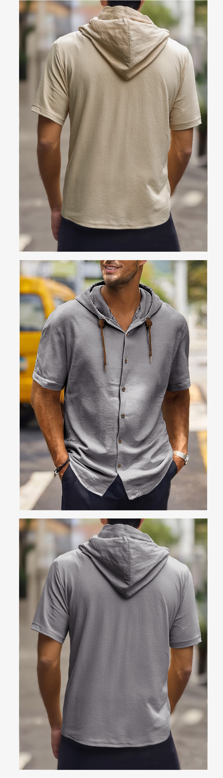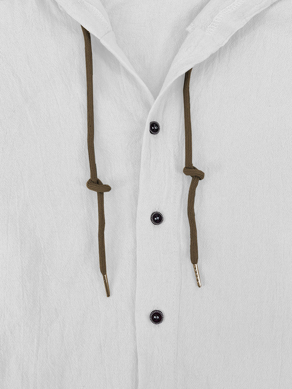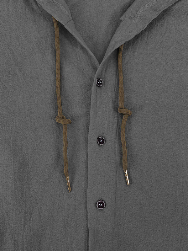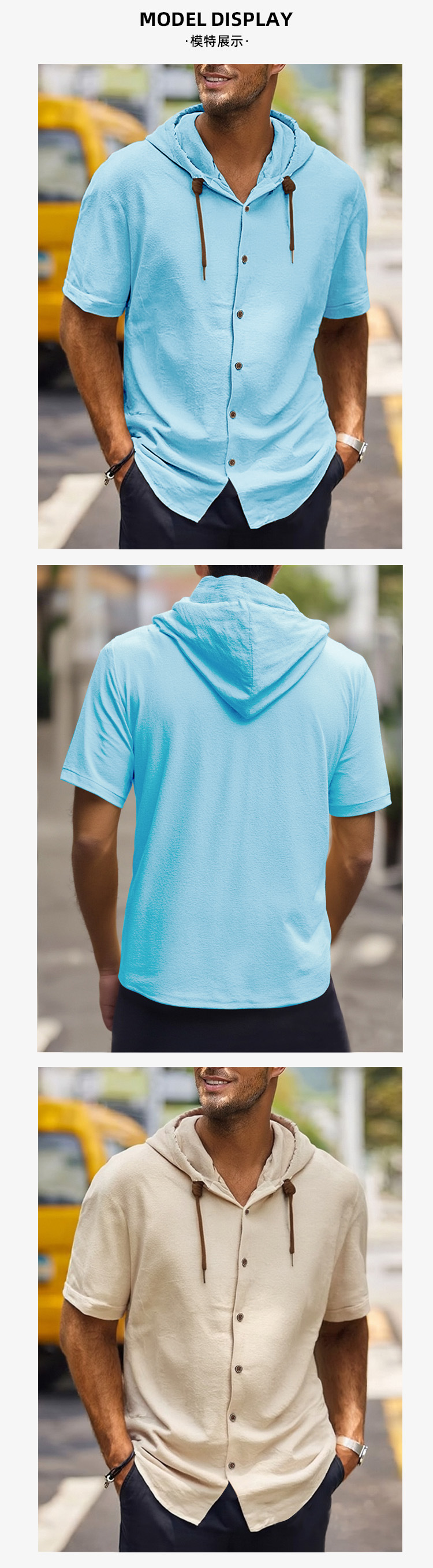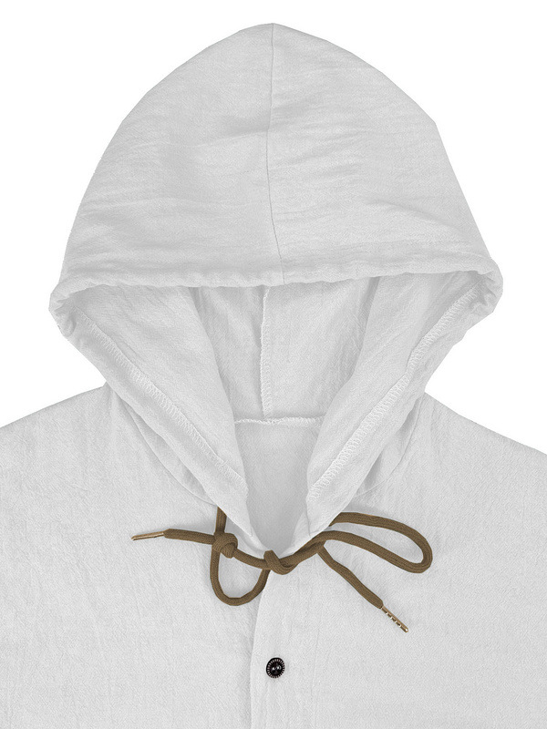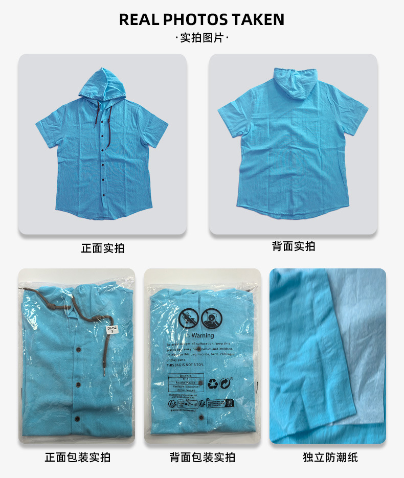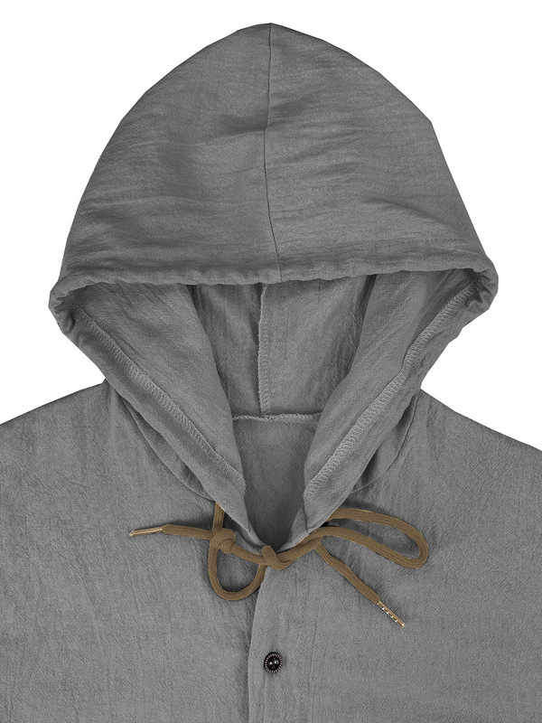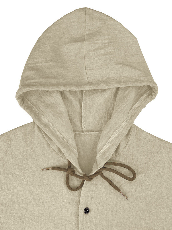 亚马逊美式亚麻男衬衫外贸时尚休闲夏季透气薄款连帽短袖开衫外套