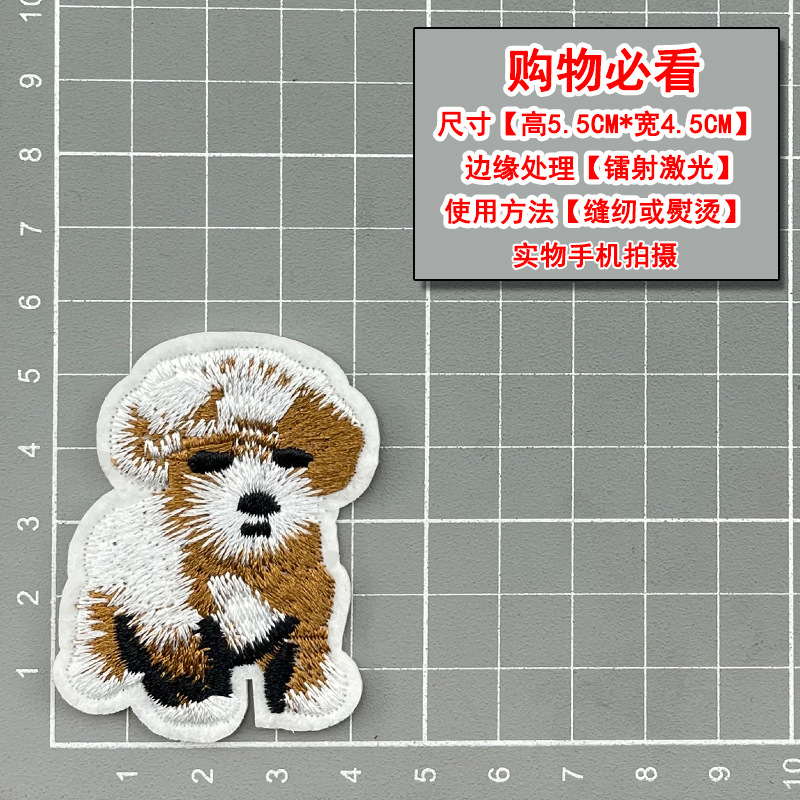 귀여운 강아지 만화 동물 자수 옷 패치 스티커 재고 있음 제조 업체 도매 컴퓨터 자수 라벨 액세서리 천 스티커스토어 가기