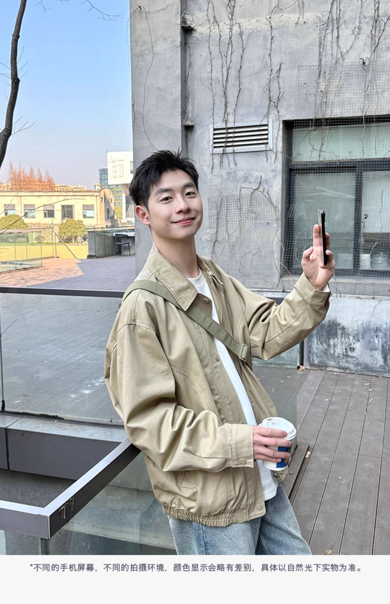 단색 옷깃 재킷 작업복 소년 2025 봄과 가을 새로운 올 매치 느슨한 간단한 캐주얼 재킷 탑스토어 가기
