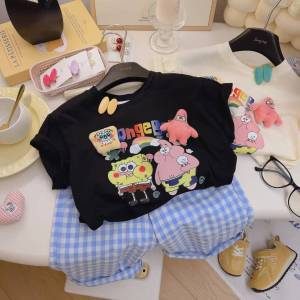 어린이 반팔 여름 캐주얼 만화 스폰지 밥 3 차원 장식 남성과 여성의 서양식 유행 싱글 탑스토어 가기