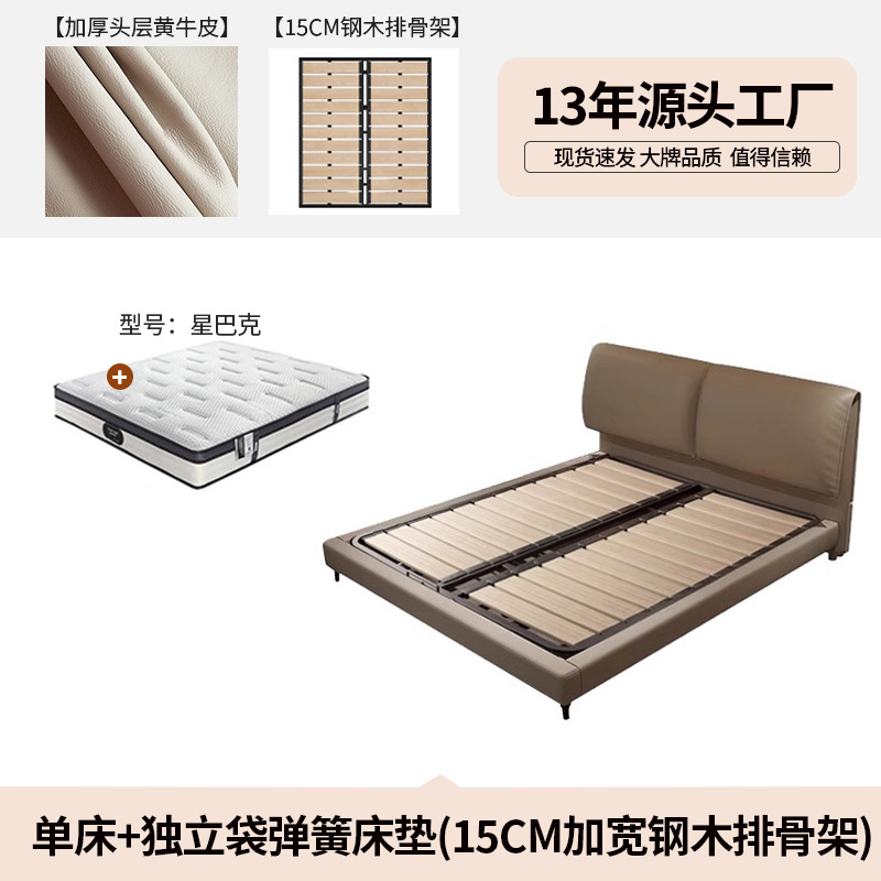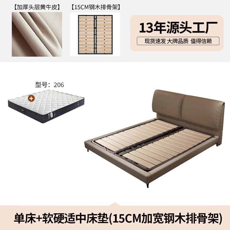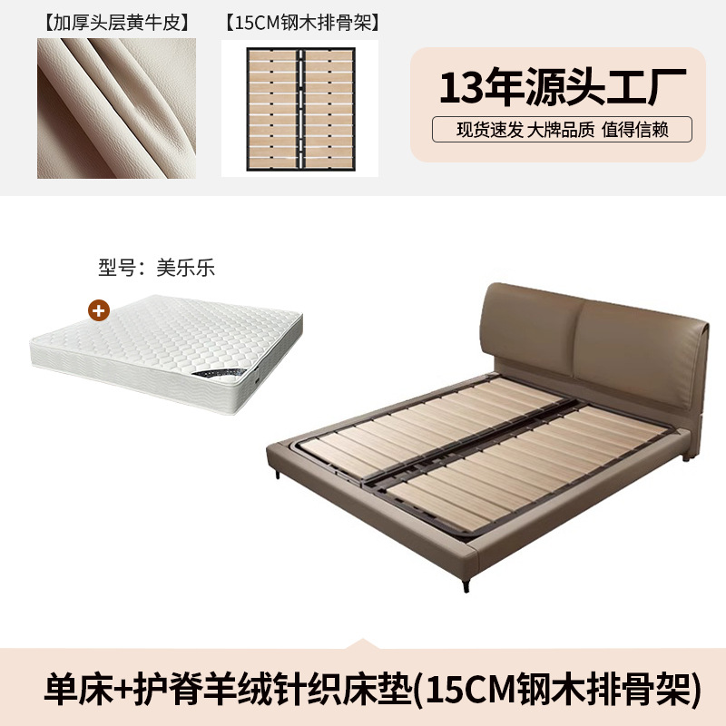 • 싱글 침대 [노란색 소가죽의 첫 번째 레이어, 가짜 제품을 얻으면 10 + 15cm + 느슨한 나무 프레임을 얻게 됩니다]