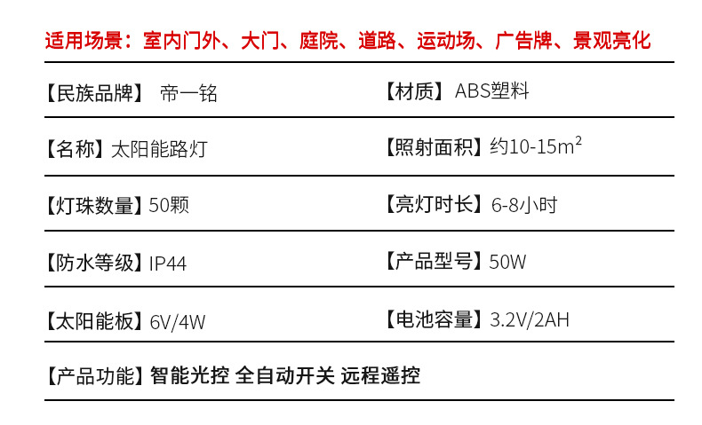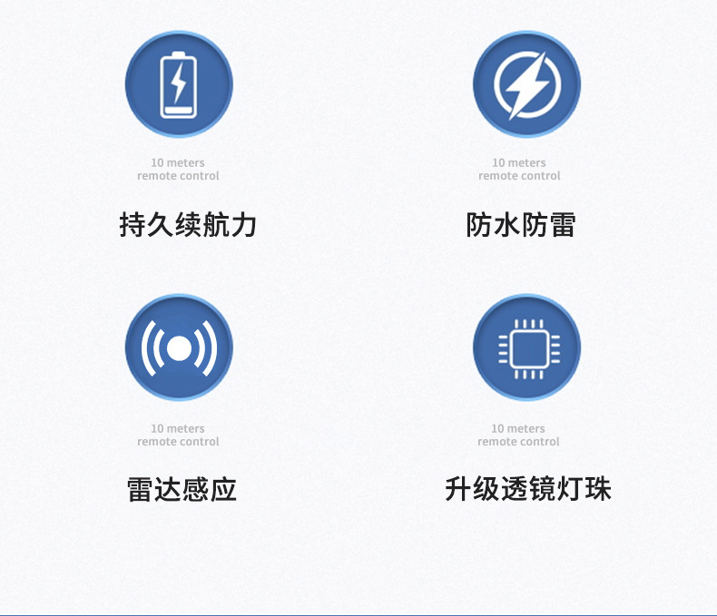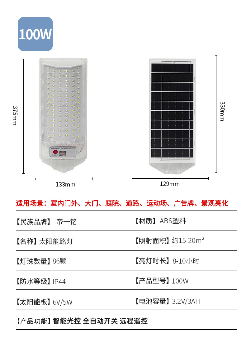 • 3면 18000W [1000평방미터] 20m개의 인체 센서 + 어둠 속에서 조명 + 밤새 배터리 수명