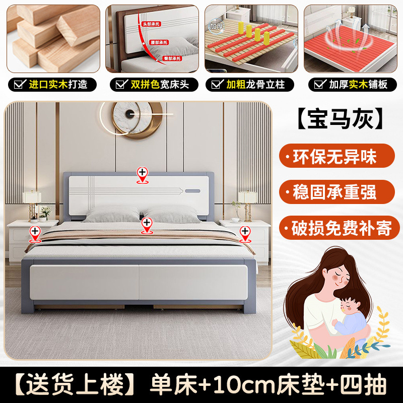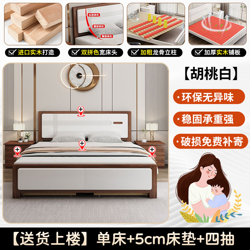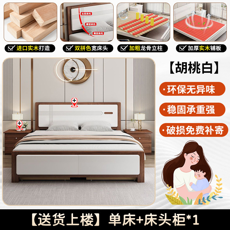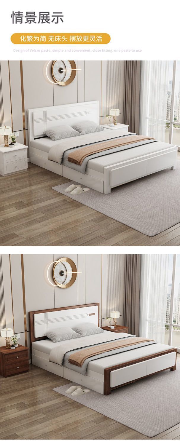 간단한 전체 단단한 나무 침대 가벼운 고급 접시 침대 임대 방 단단한 나무 큰 침대 북유럽 스타일 홈스테이 더블 침대 프레임스토어 가기