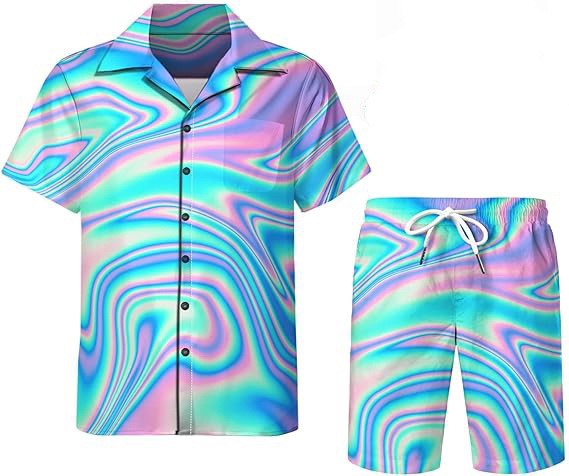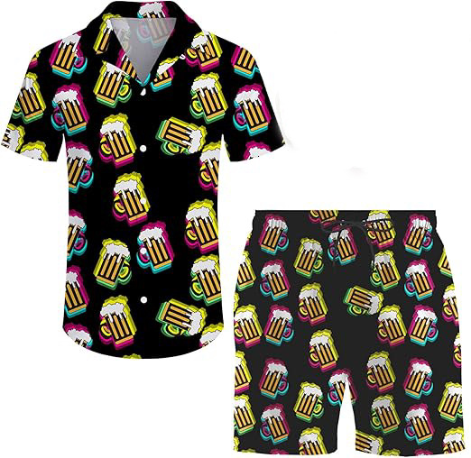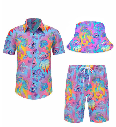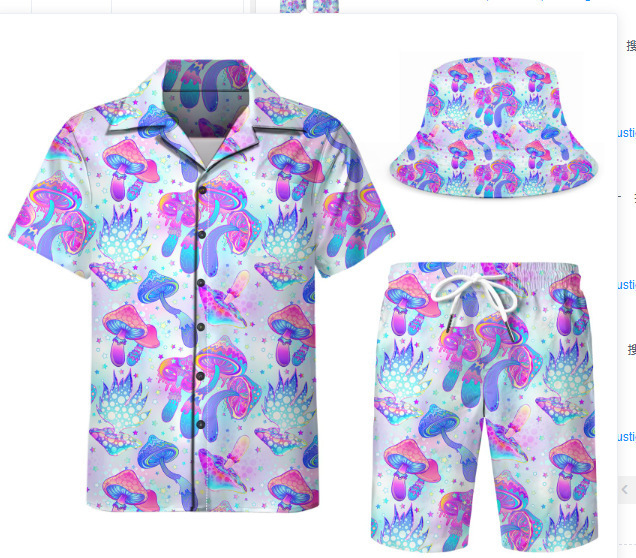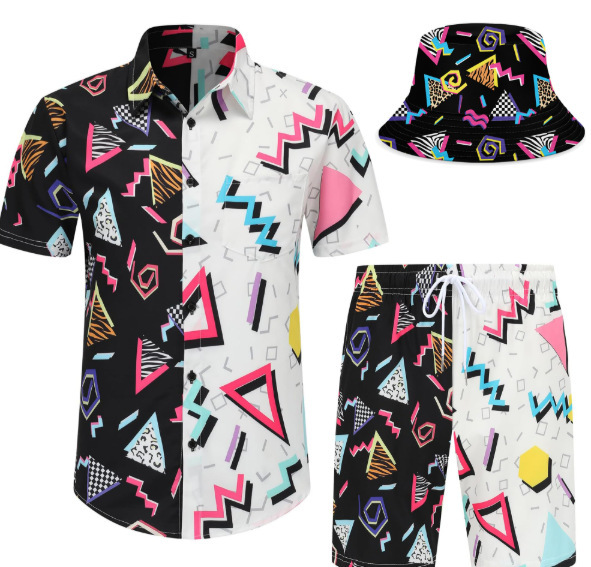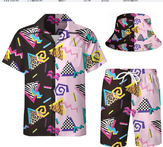 유럽과 미국의 새로운 셔츠 아마존 3D 인쇄 미니멀리스트 인쇄 남성 셔츠 티셔츠 반팔 반바지 비치 슈트