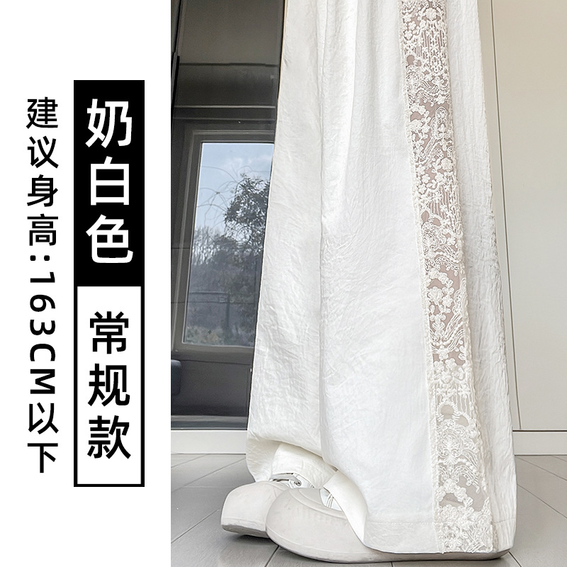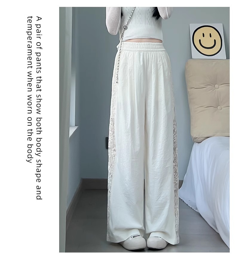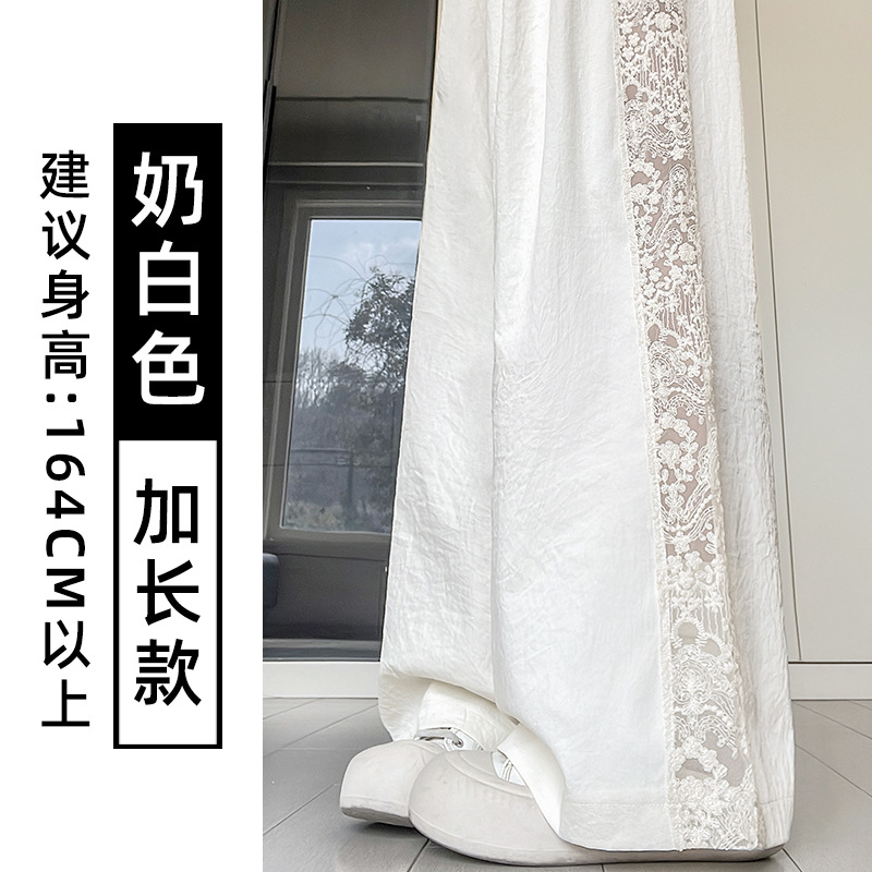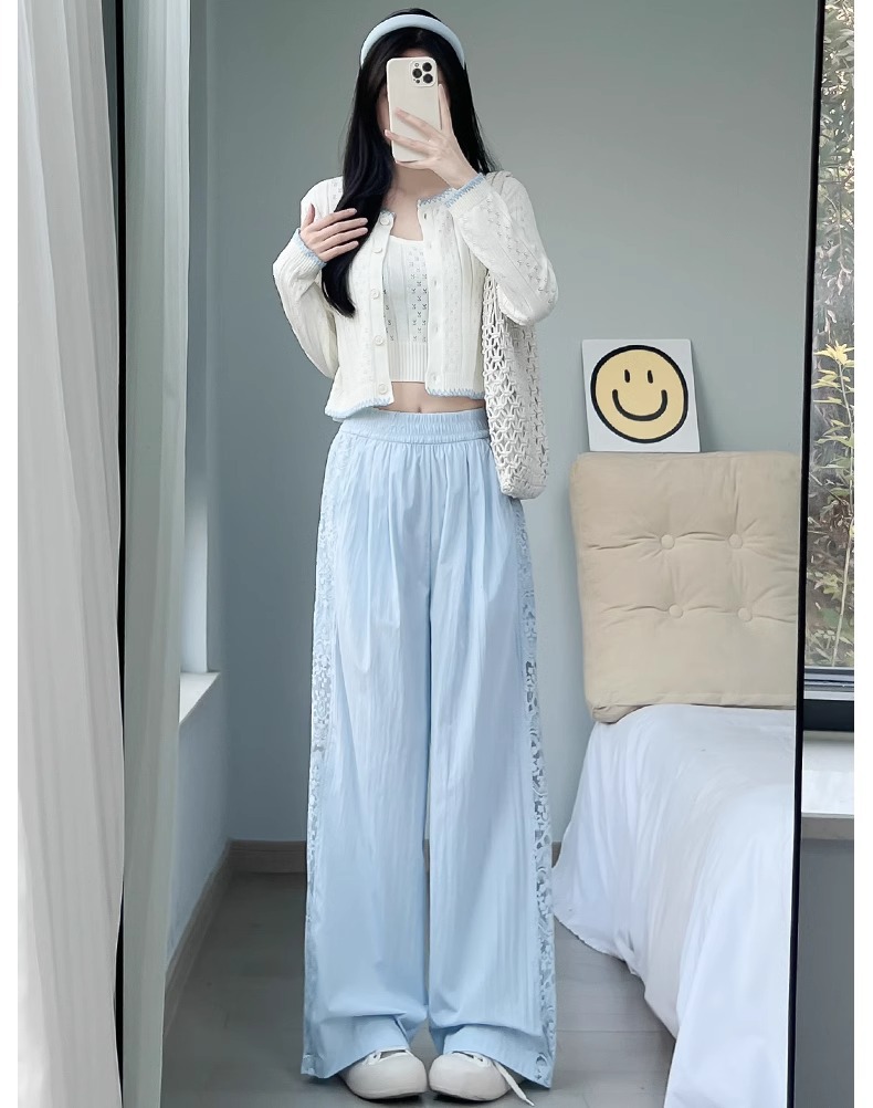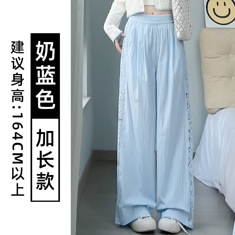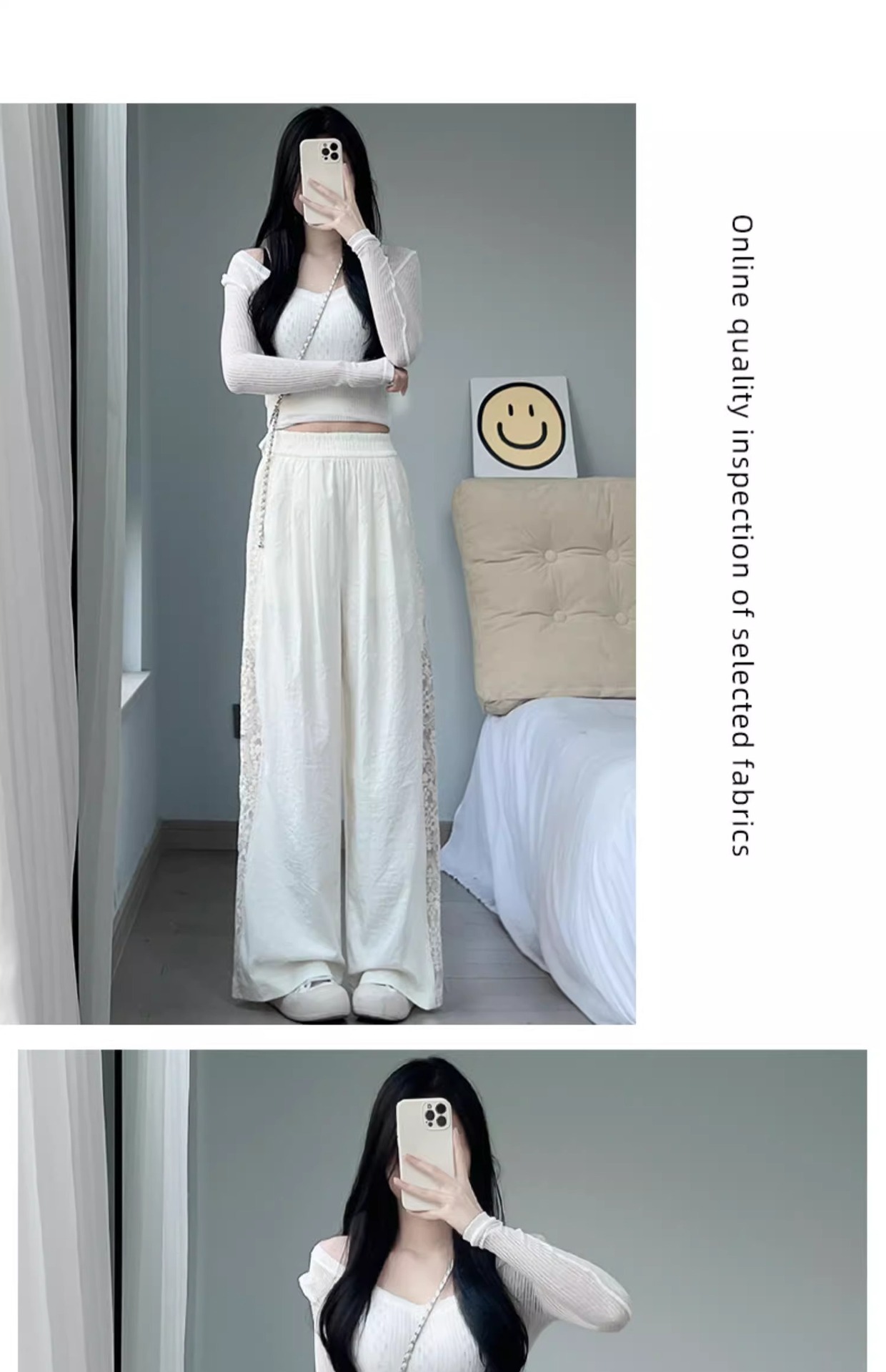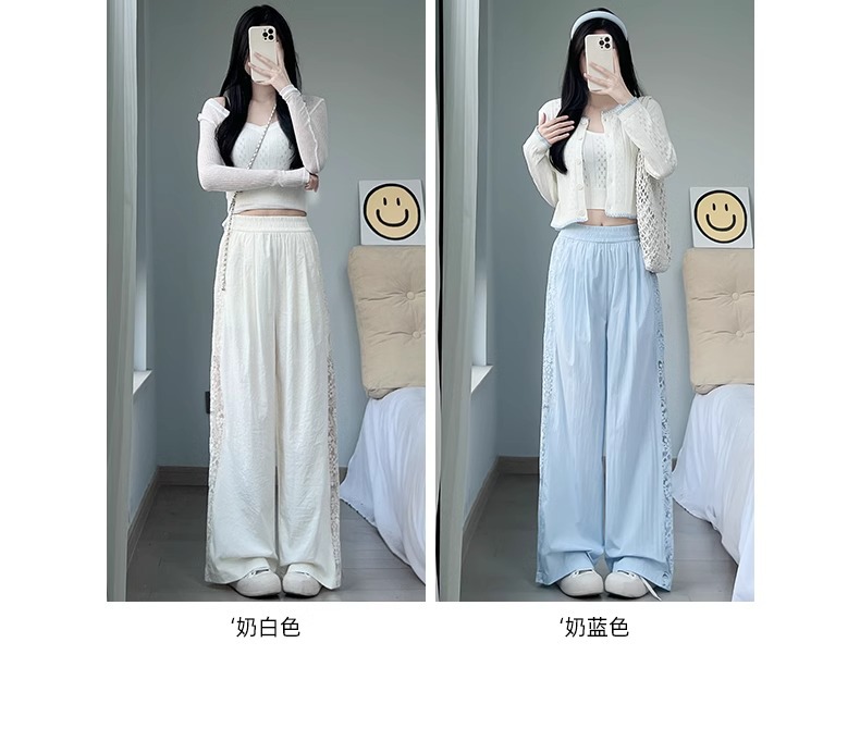 레이스 와이드 레그 바지 여성용 여름 얇은 2025 새로운 하이 웨이스트 캐주얼 새로운 중국 스타일 국가 스타일 할로우 아이스 실크 쿨 바지스토어 가기