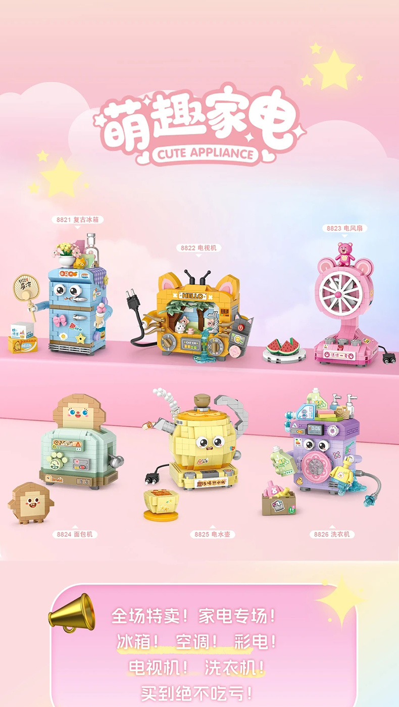 LOZ 귀여운 가전 제품 작은 입자 교육 빌딩 블록 조립 어린이 레저 장난감 소녀 선물 미니 장식품스토어 가기