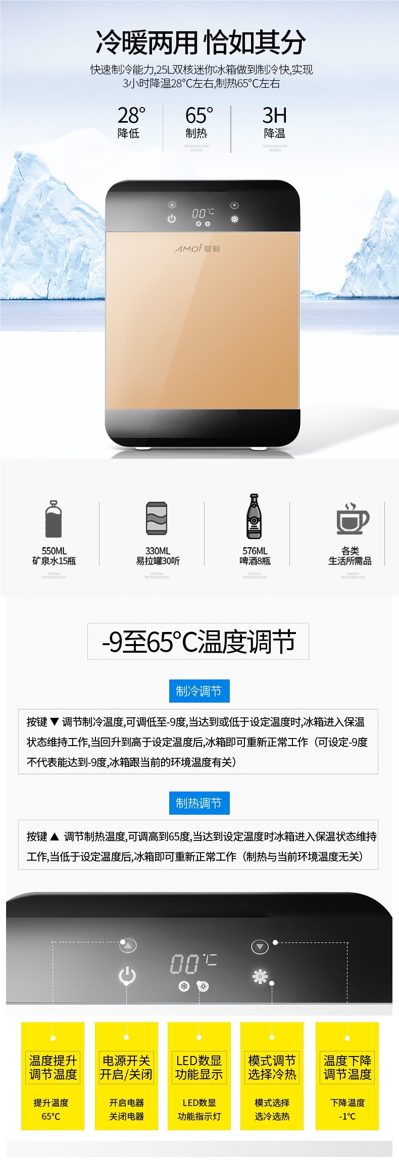 • 듀얼 코어 25L 블랙 골드 유리 모델(자동차 및 가정용 겸용)