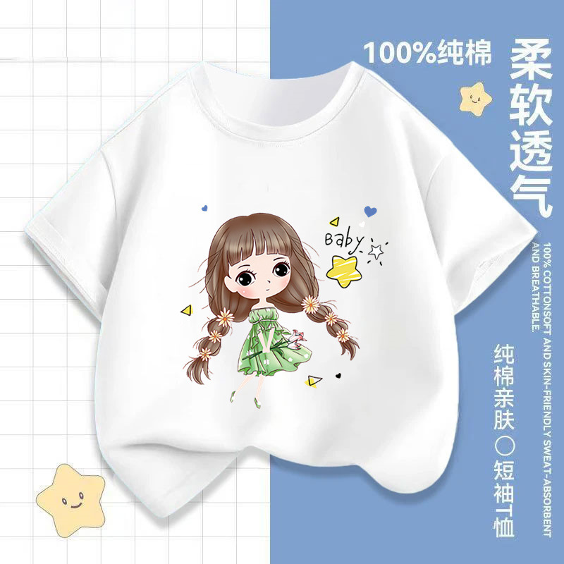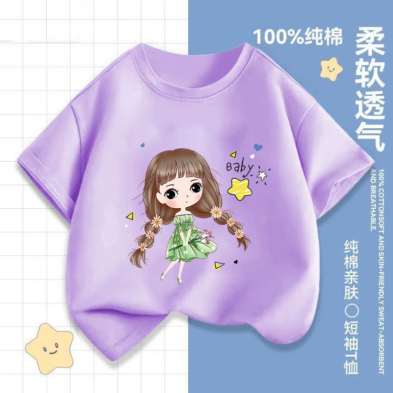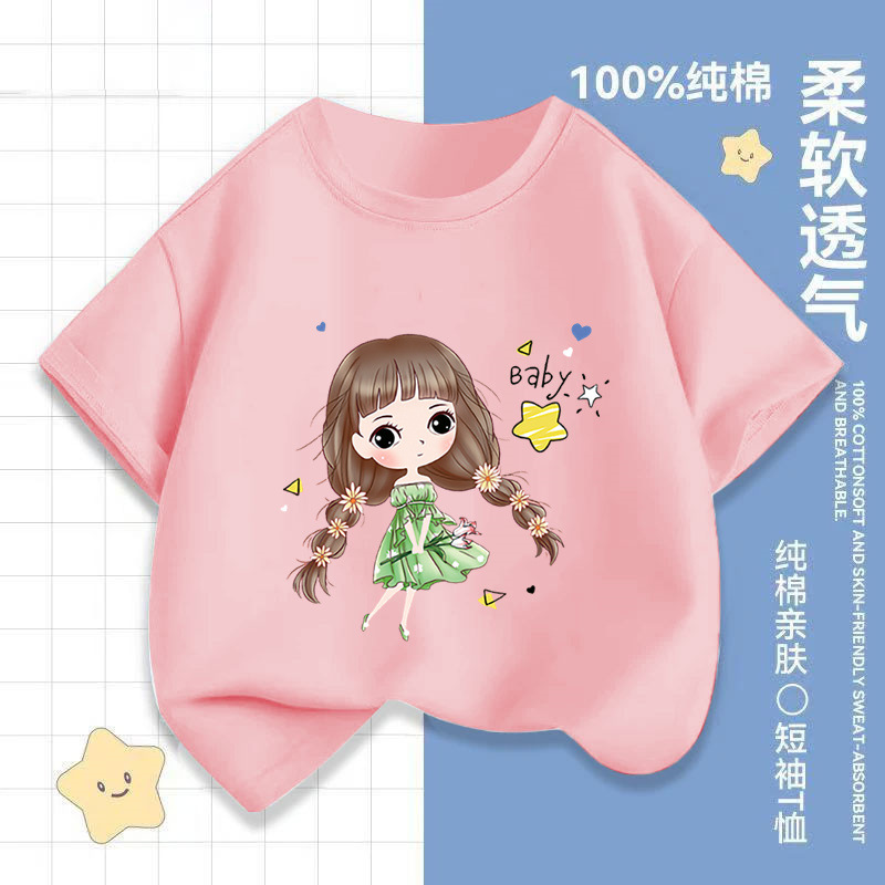 2187 # cuhk 여자 짧은 소매면 티셔츠 여름 새로운 아동복 서양식 유행 반소매 핑크 코트