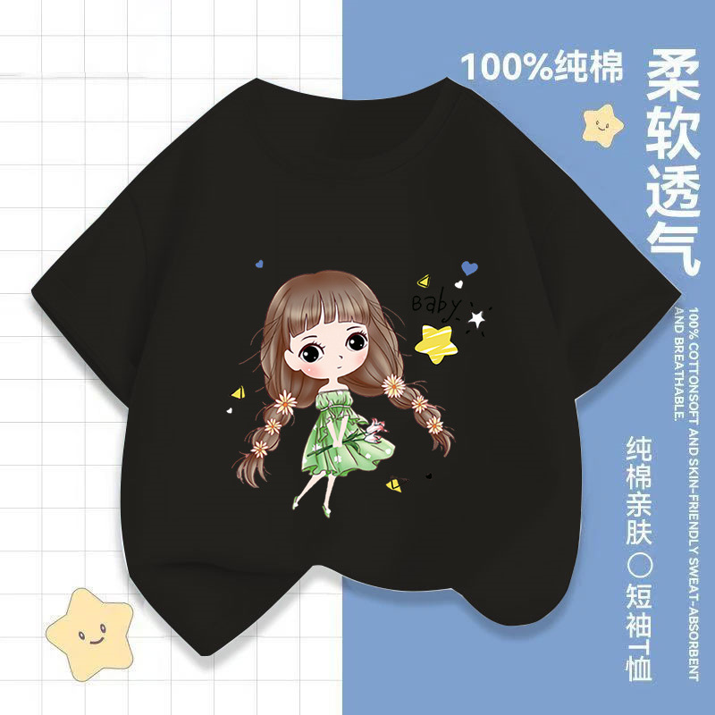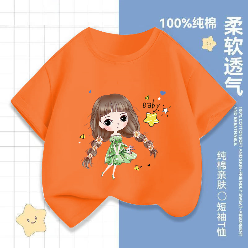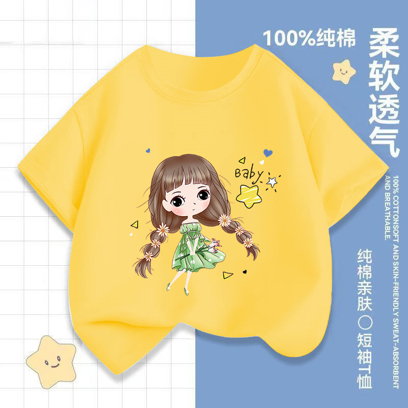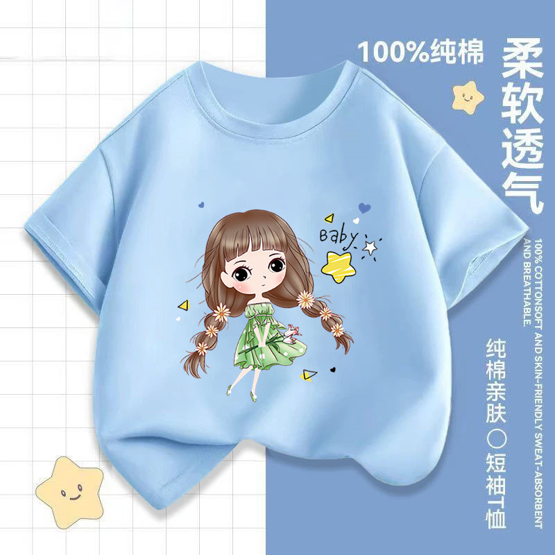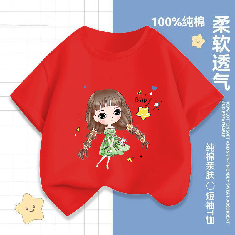 2187 # cuhk 여자 짧은 소매면 티셔츠 여름 새로운 아동복 서양식 유행 반소매 핑크 코트스토어 가기