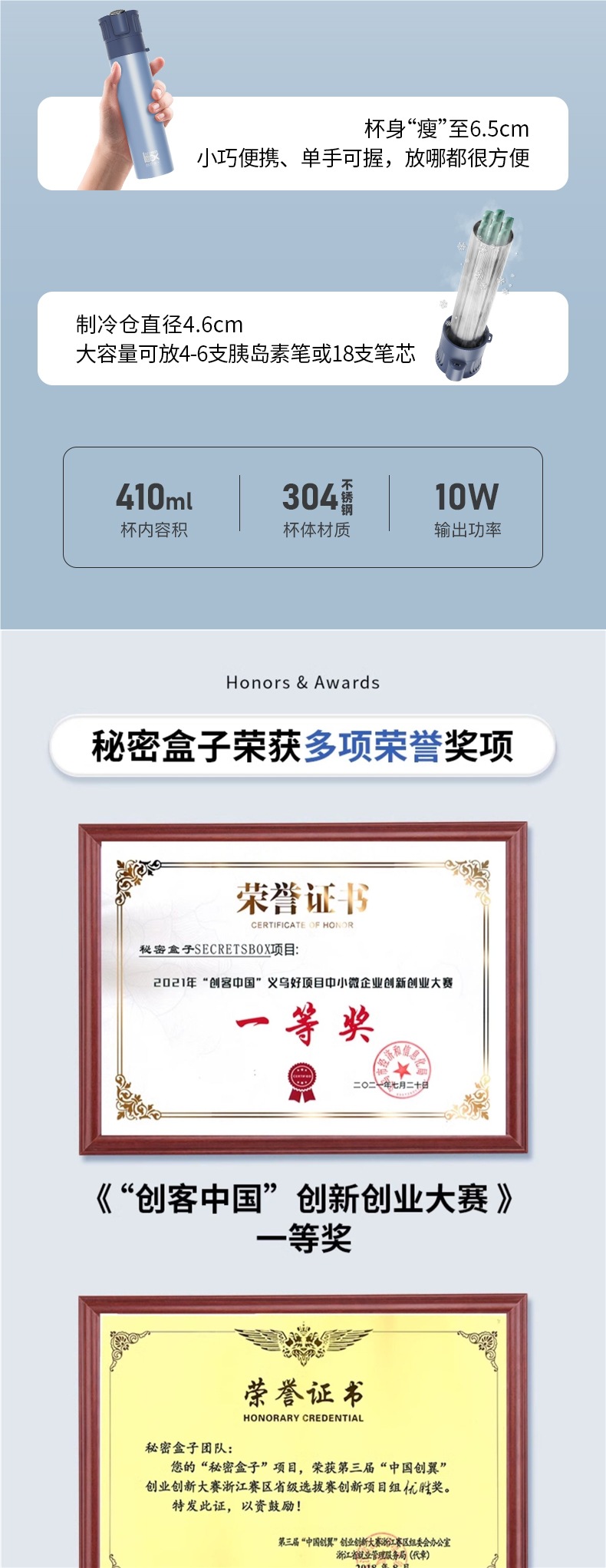 • 주파수 변환 디지털 디스플레이 냉동 버전 + 컵 커버 + 보조베터리