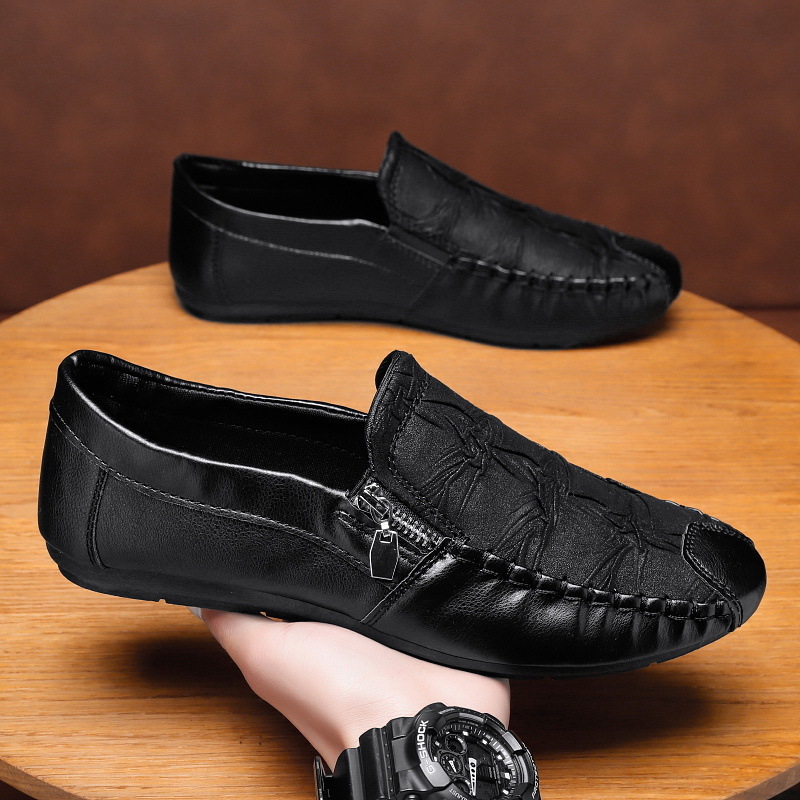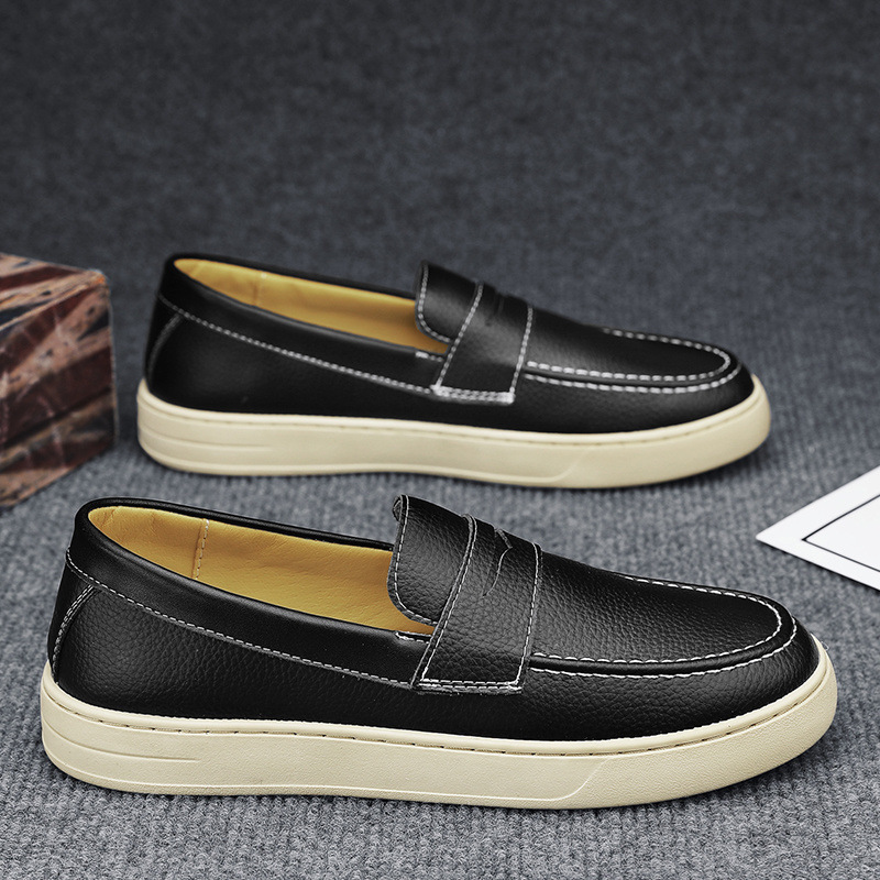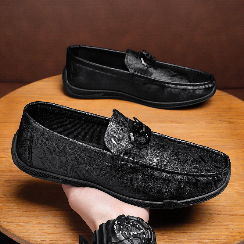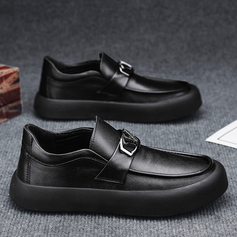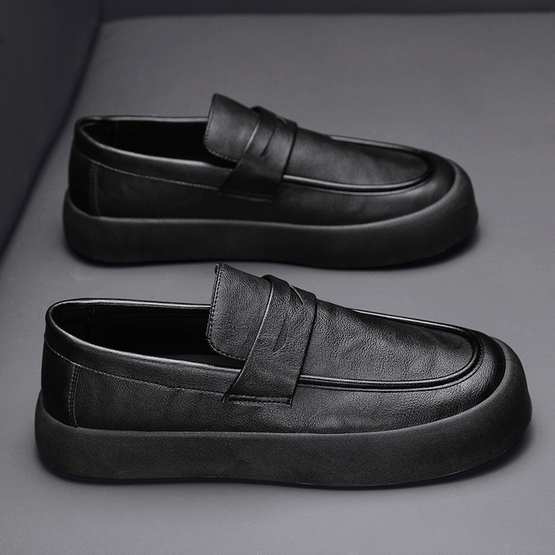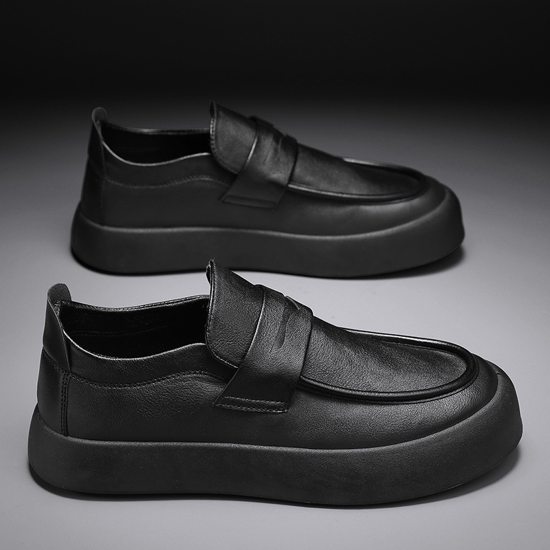 남성용 신발 봄 소프트 가죽 슬립 온 캐주얼 가죽 신발 남성 빅 헤드 영국 스타일 2023 새로운 비즈니스 작업 블랙