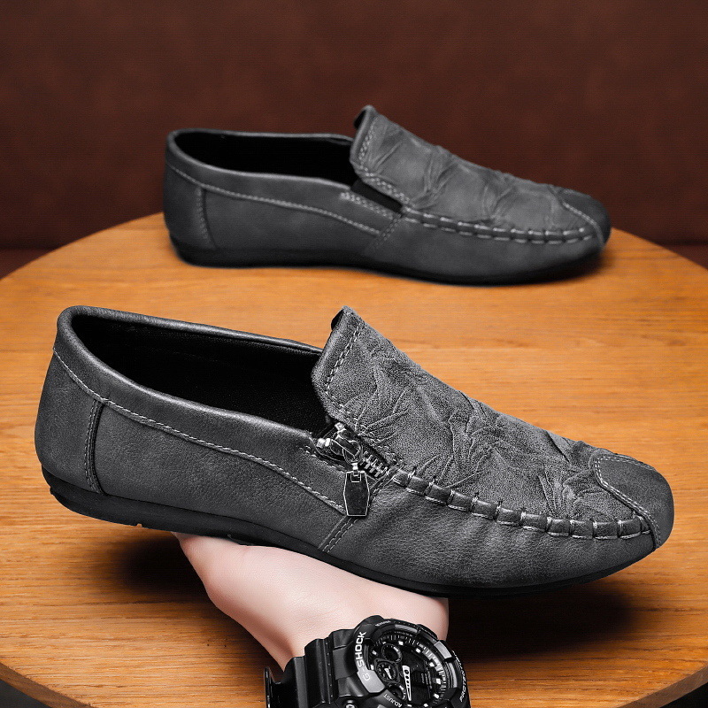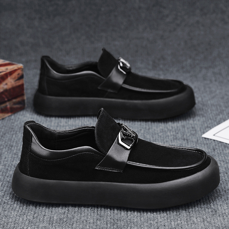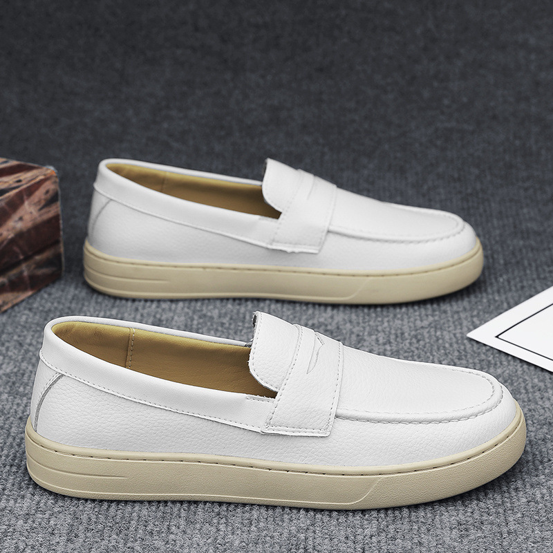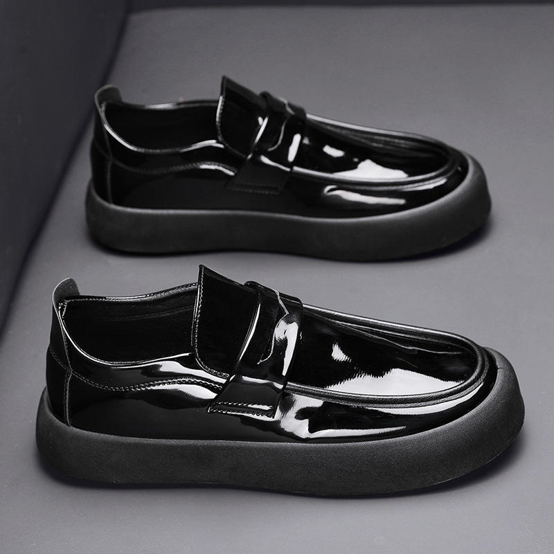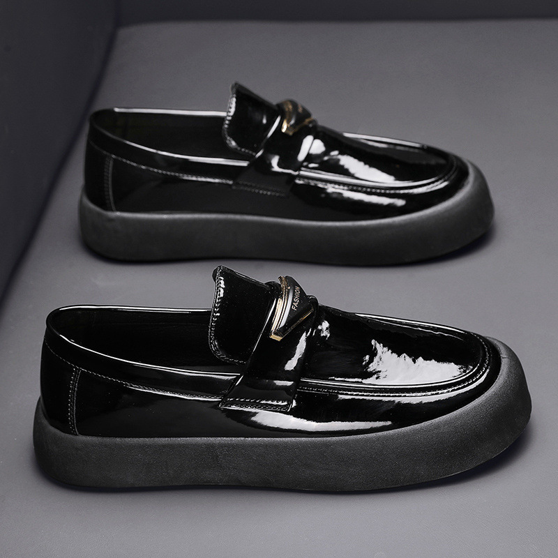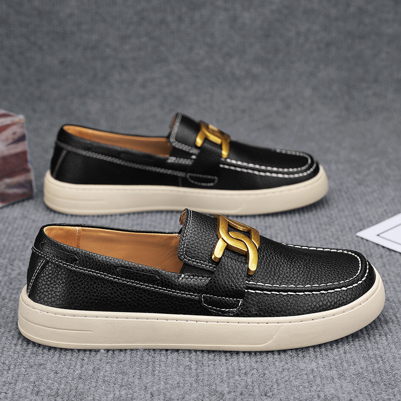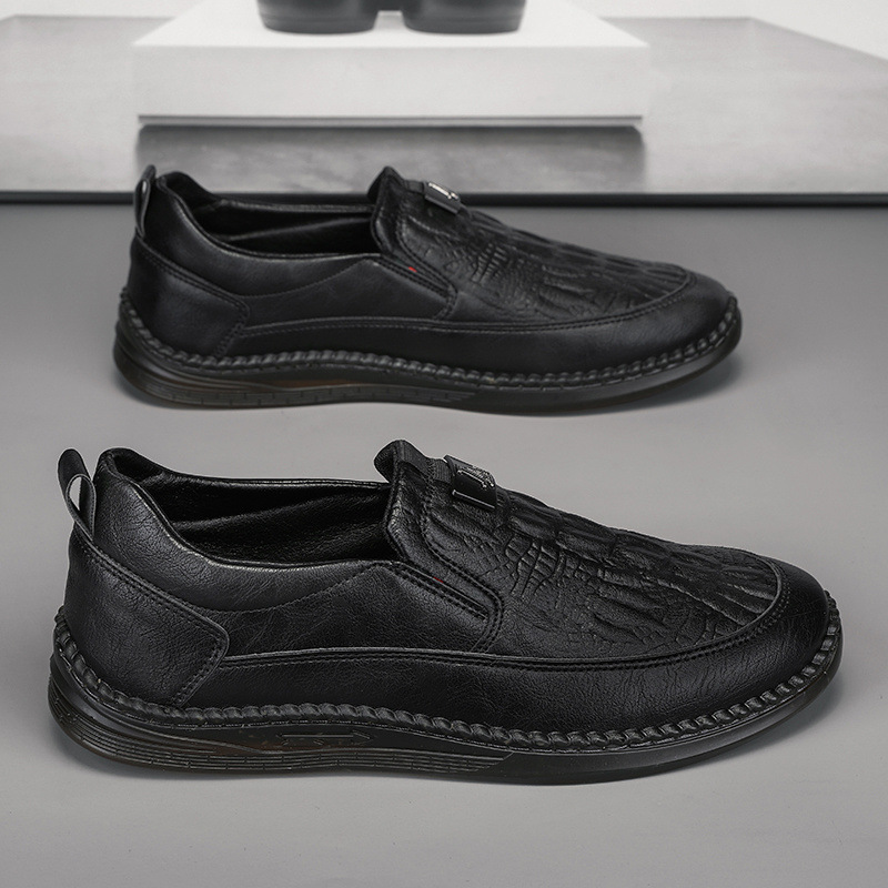 남성용 신발 봄 소프트 가죽 슬립 온 캐주얼 가죽 신발 남성 빅 헤드 영국 스타일 2023 새로운 비즈니스 작업 블랙