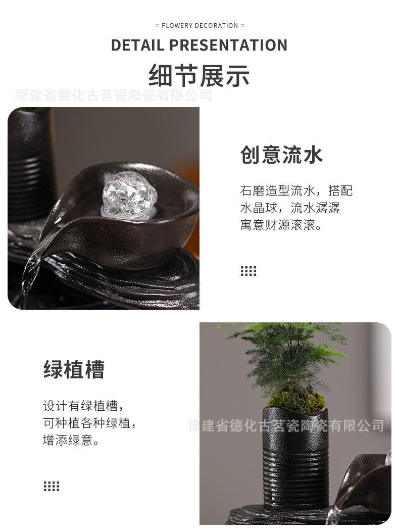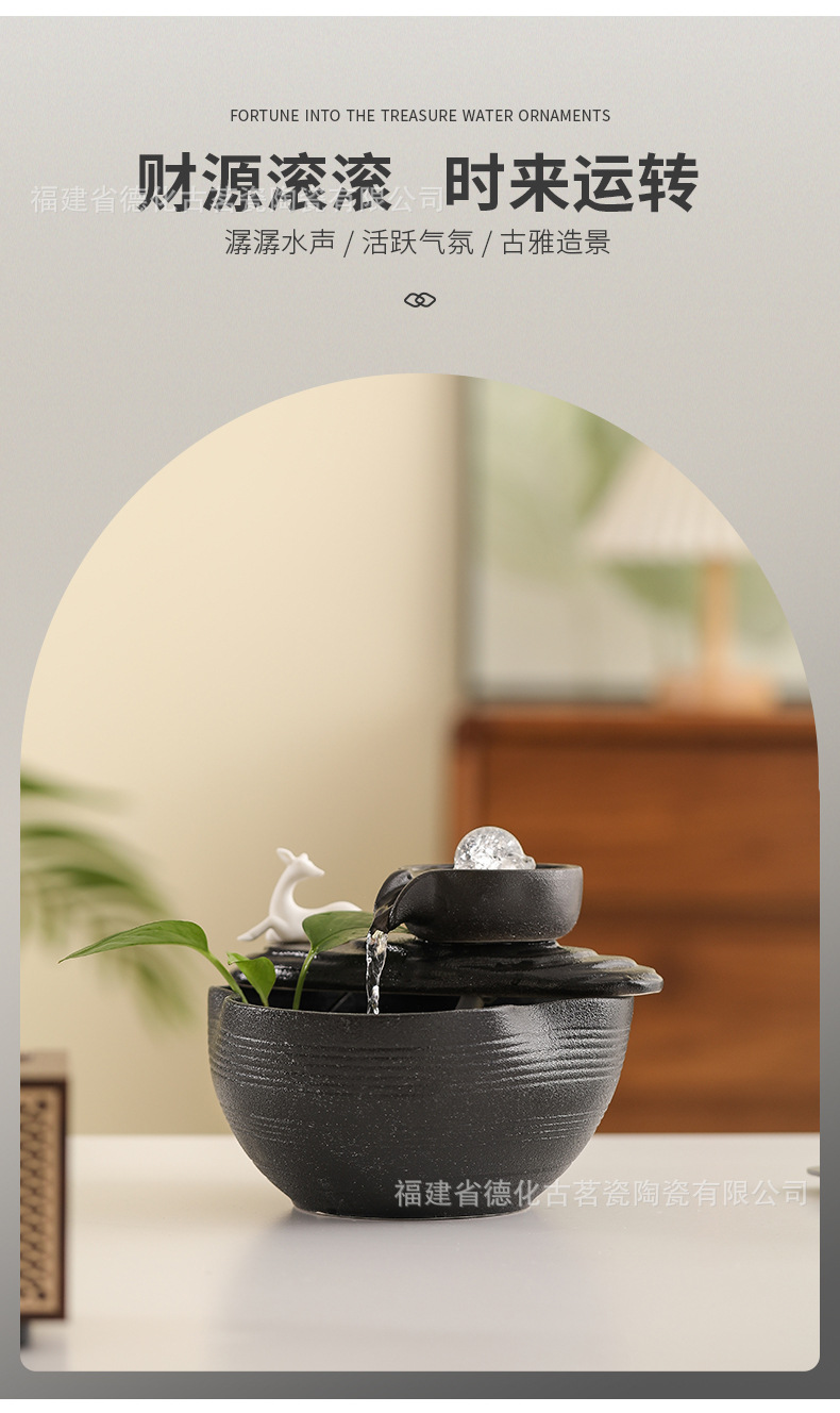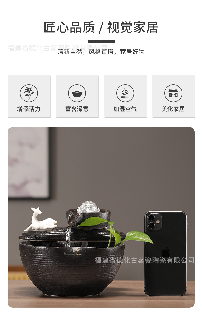 탁상용 소형 물놀이 장식품 순환수경 풍수 휠 크리스탈 볼 분수 세라믹 가습기 작은 어항 물방울