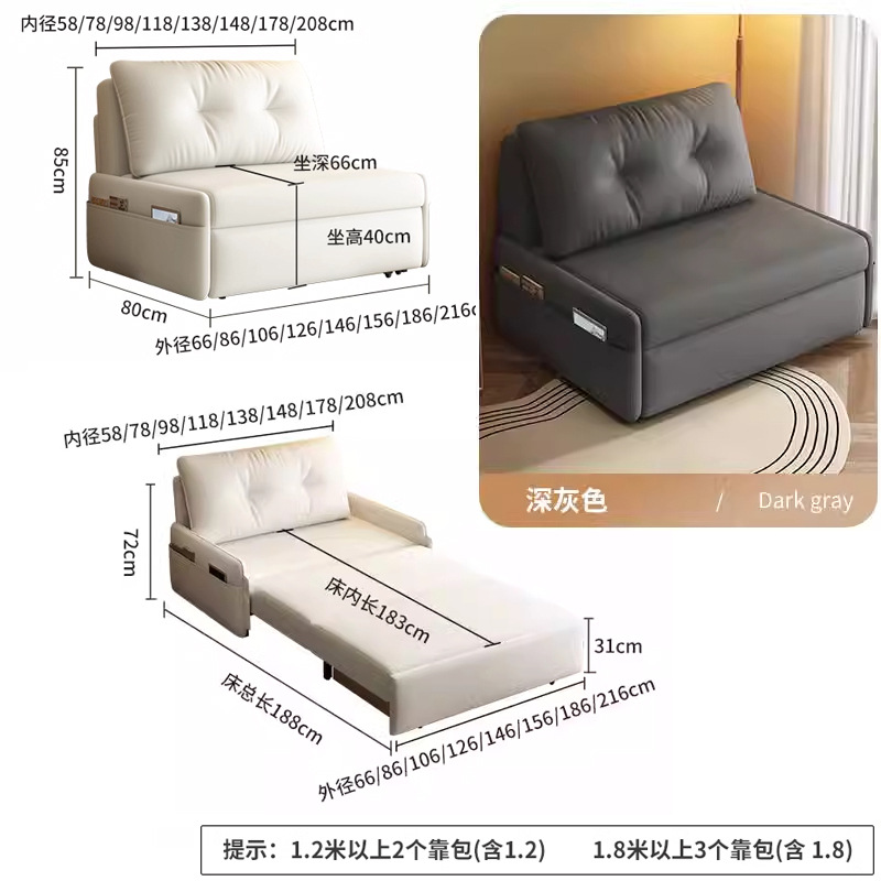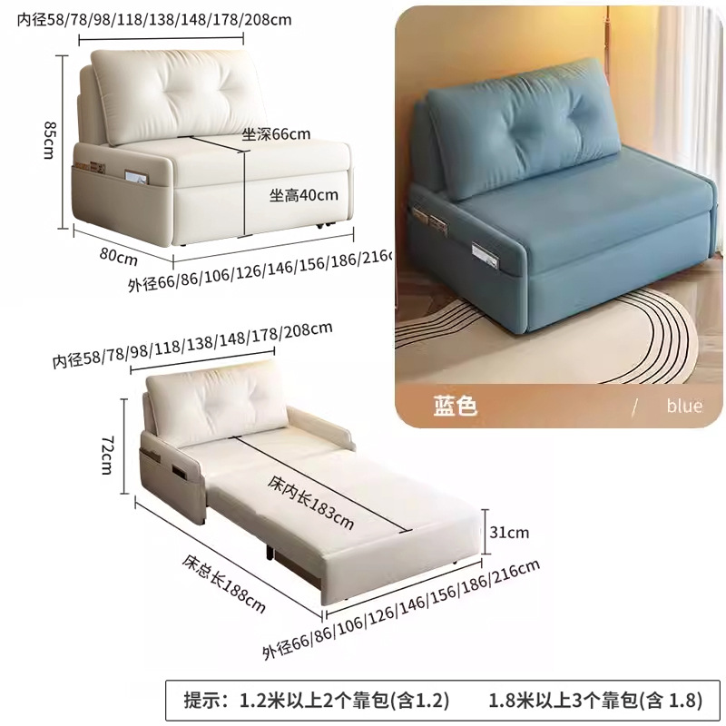 게으른 소파 침대 가정용 작은 아파트 거실 발코니 모바일 소파 다기능 망원경 접이식 통합 낮잠 침대