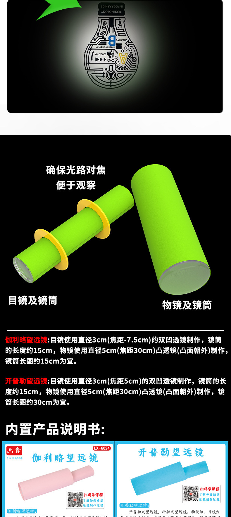 수제 망원경 오목 및 볼록 렌즈 망원경 모델 초등학교 과학 실험 갈릴레오 케플러 망원경스토어 가기