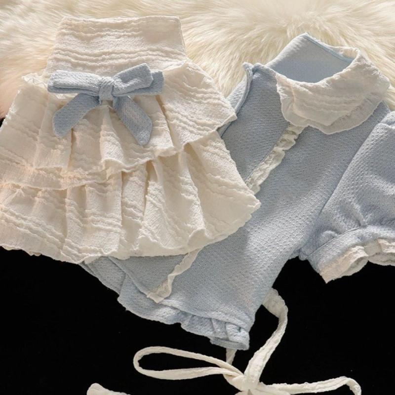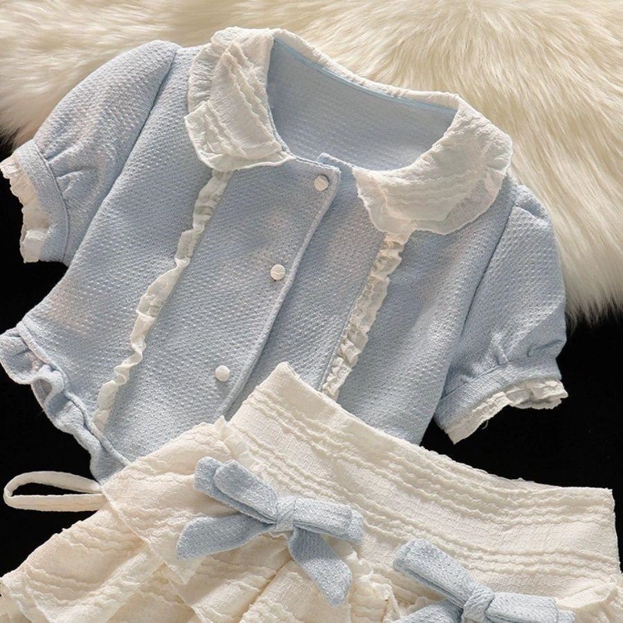 한국 여자 공주 로리타 세트 패션 세련된 한국 스타일 달콤한 인형 칼라 짧은 소매 케이크 스커트
