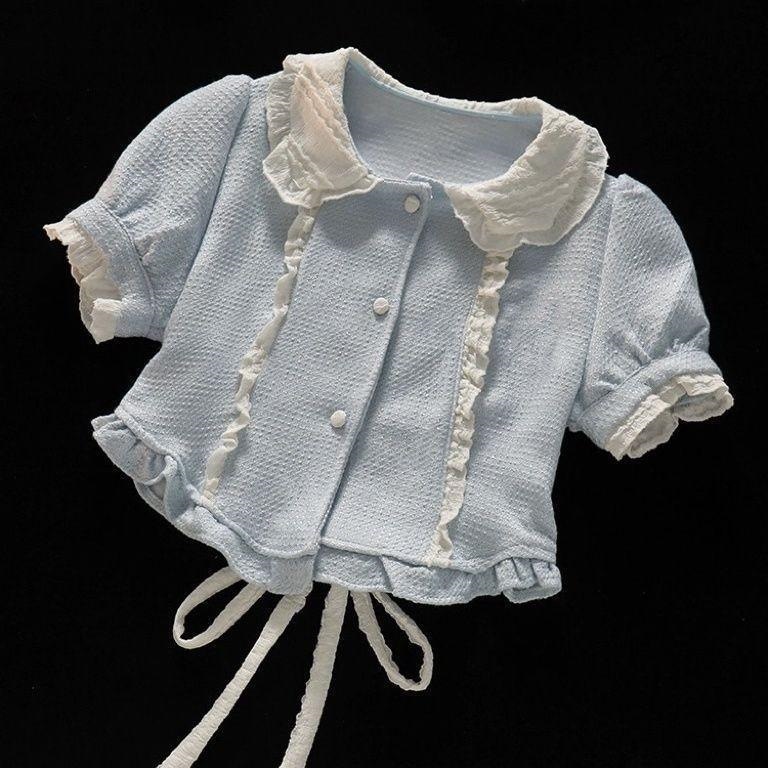 한국 여자 공주 로리타 세트 패션 세련된 한국 스타일 달콤한 인형 칼라 짧은 소매 케이크 스커트스토어 가기