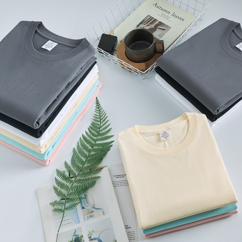도매 220g 백면 티셔츠 남성용 흰색 광고 티셔츠 크루 넥 바지 제조 업체 반팔 여성 여름스토어 가기