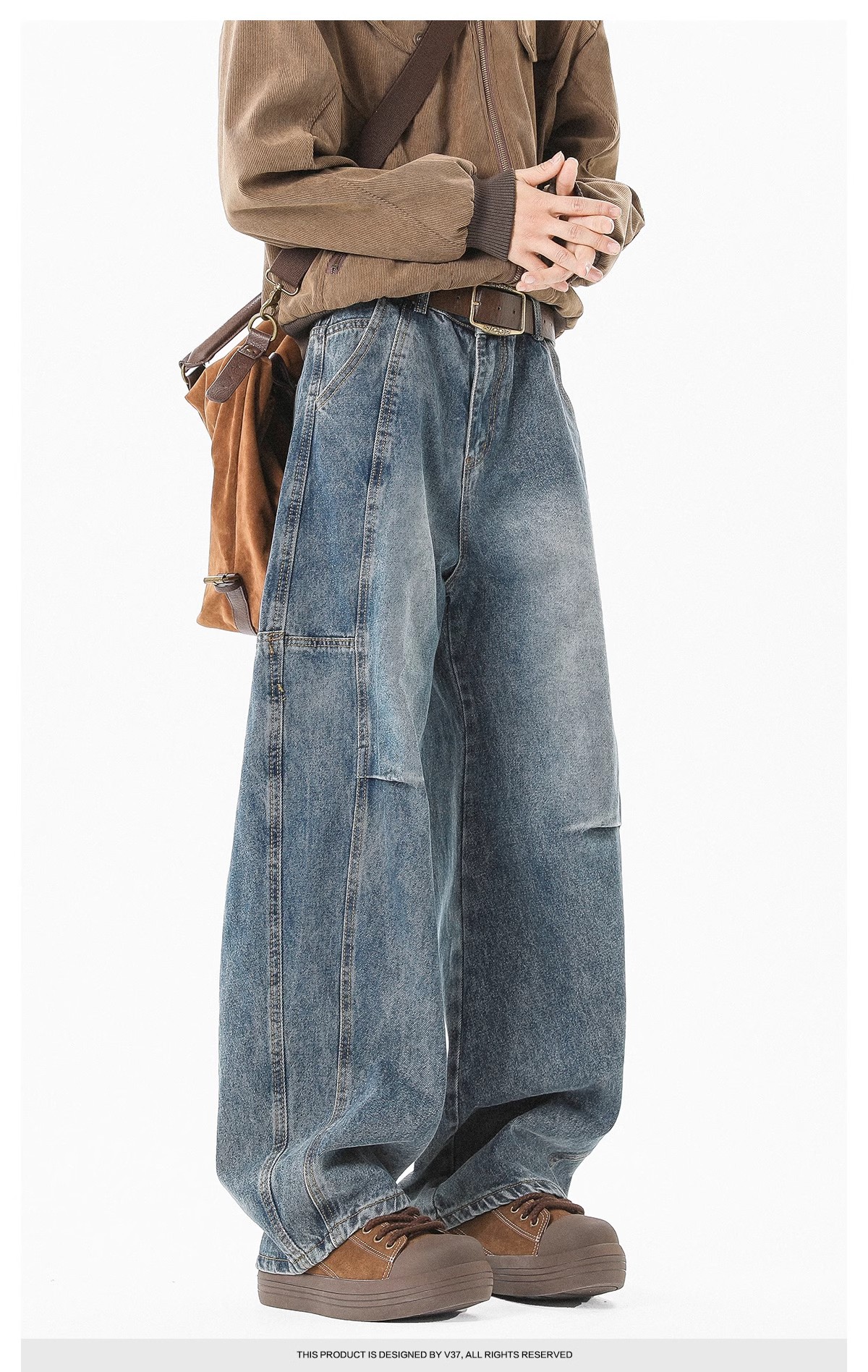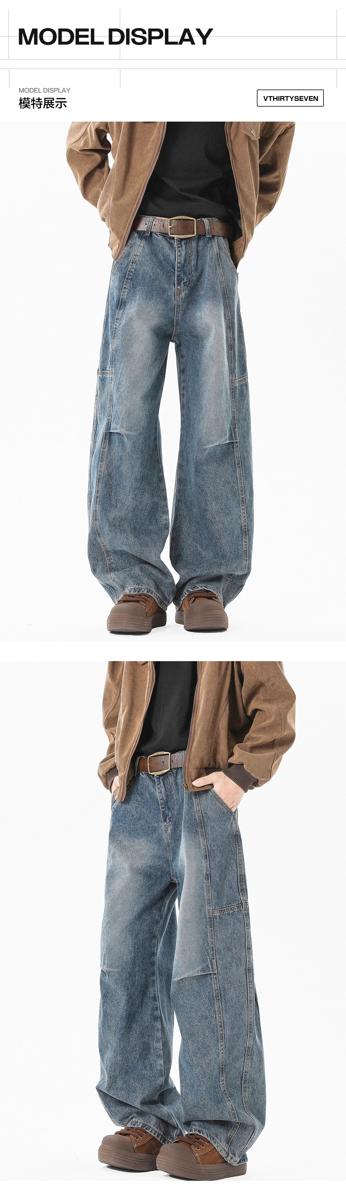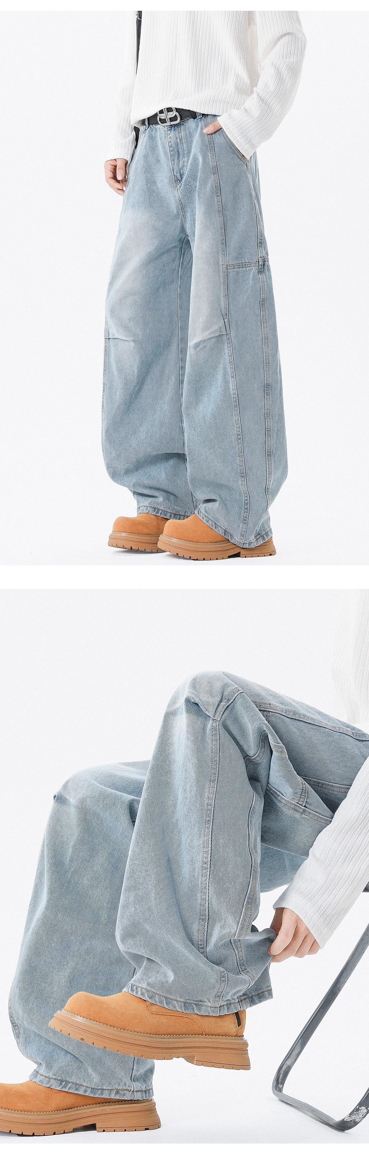 미국 세탁 청바지 남자 봄과 가을 새로운 그라디언트 올드 올 매치 청소년들이 스트레이트 바지를 느슨하게스토어 가기