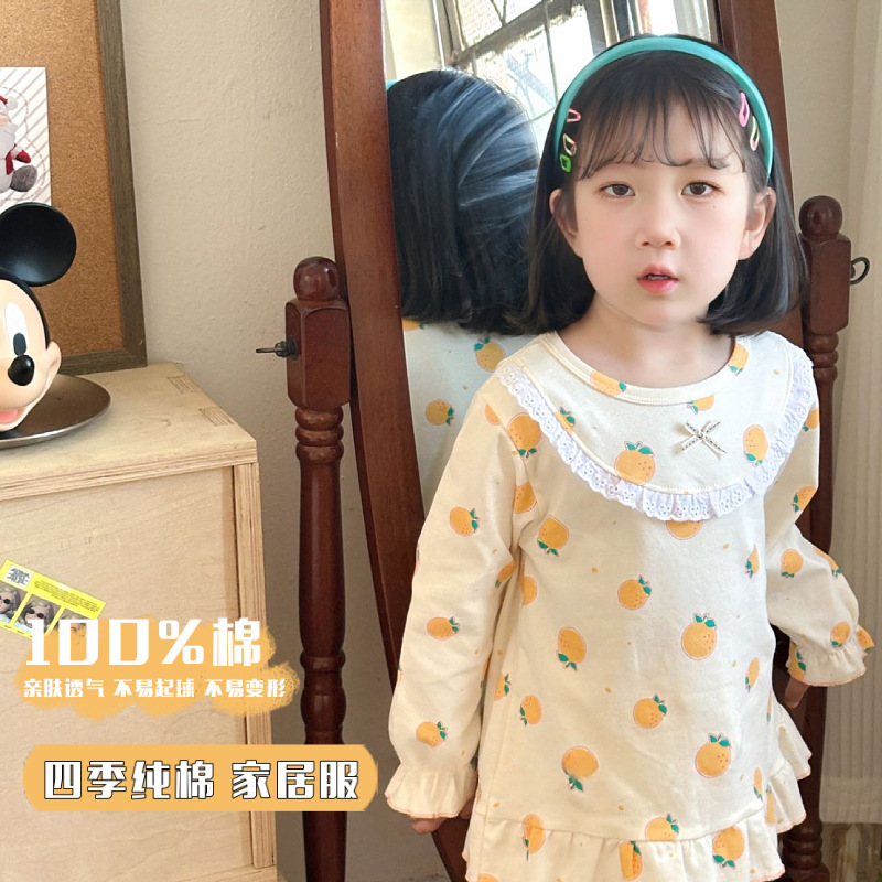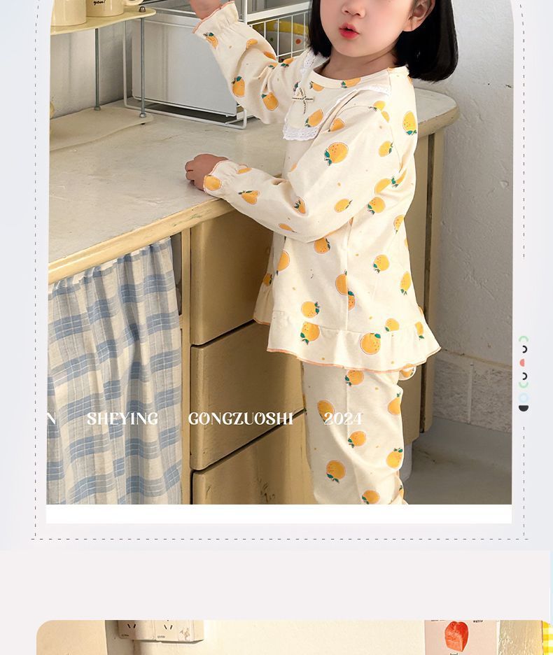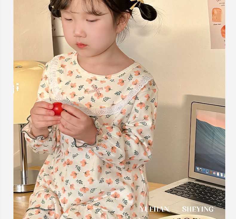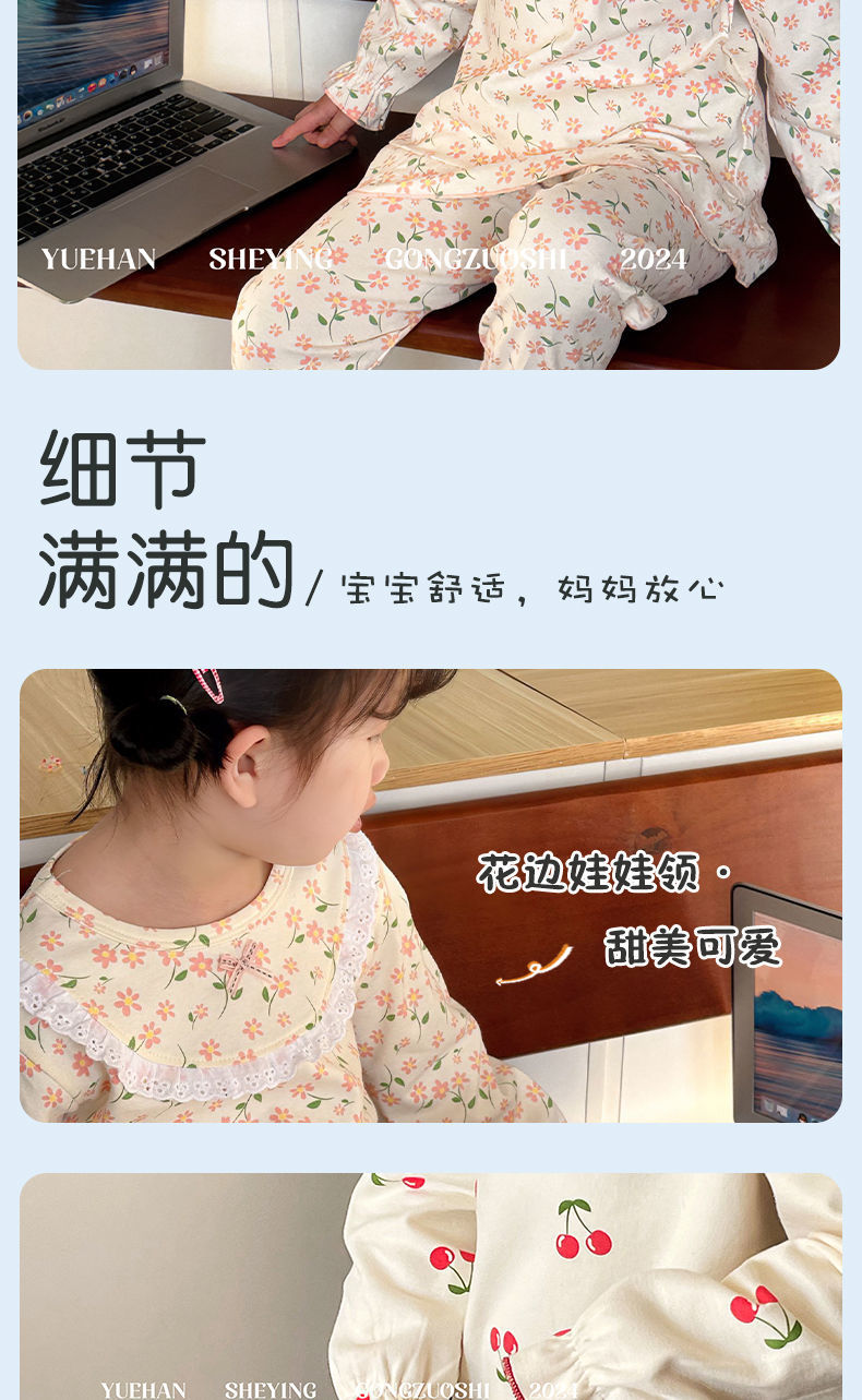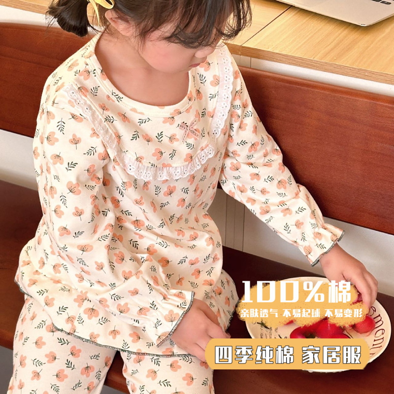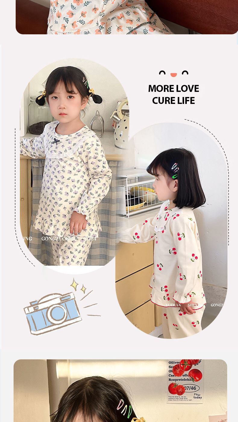 봄가을용 중대형 아동용 순면 긴팔 속옷 세트 어린이 잠옷 여아용 100% 순면 홈웨어스토어 가기
