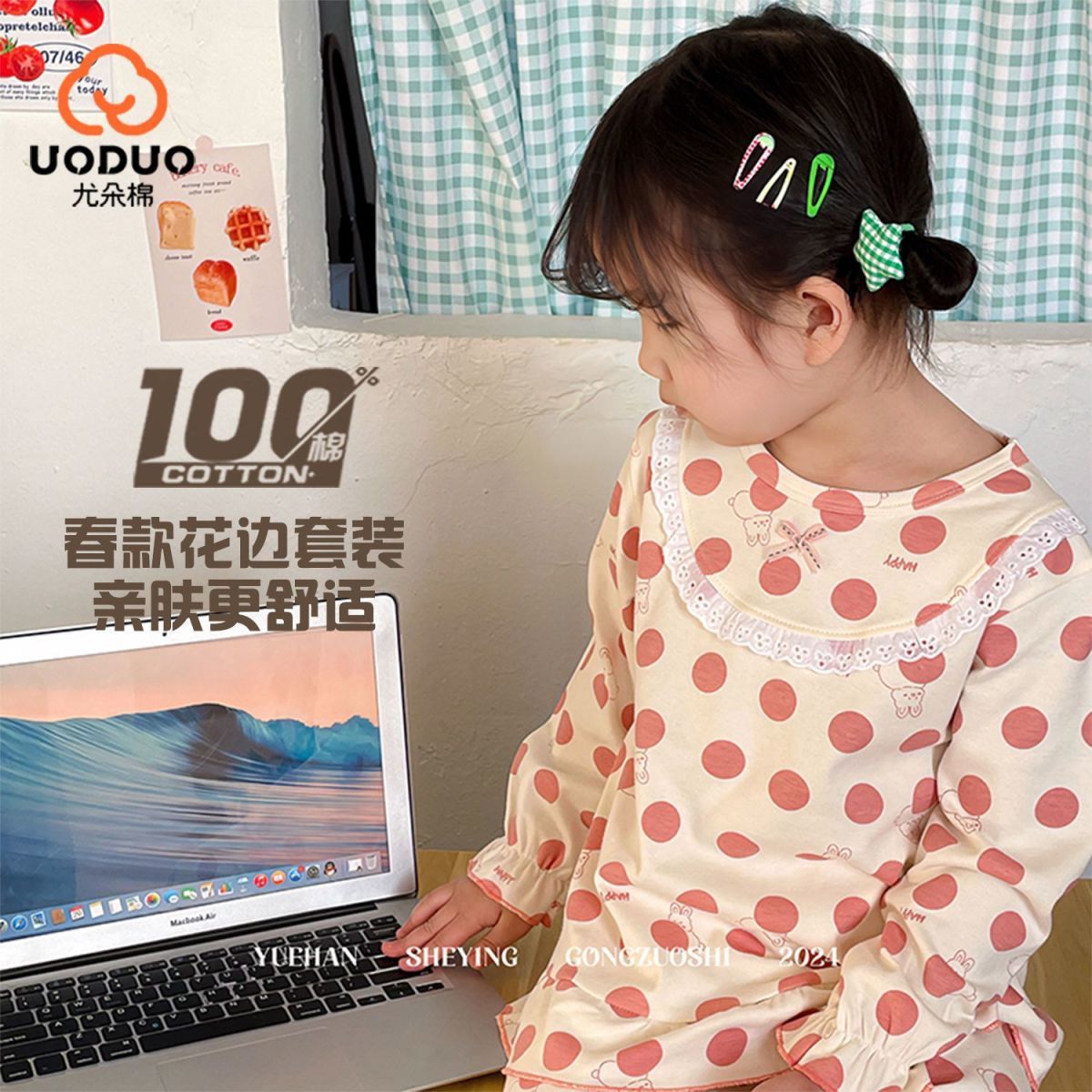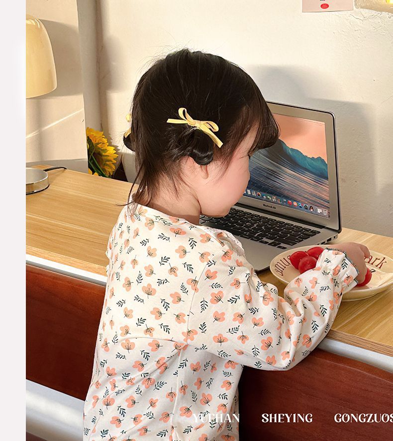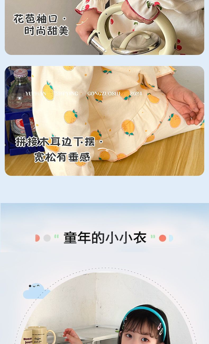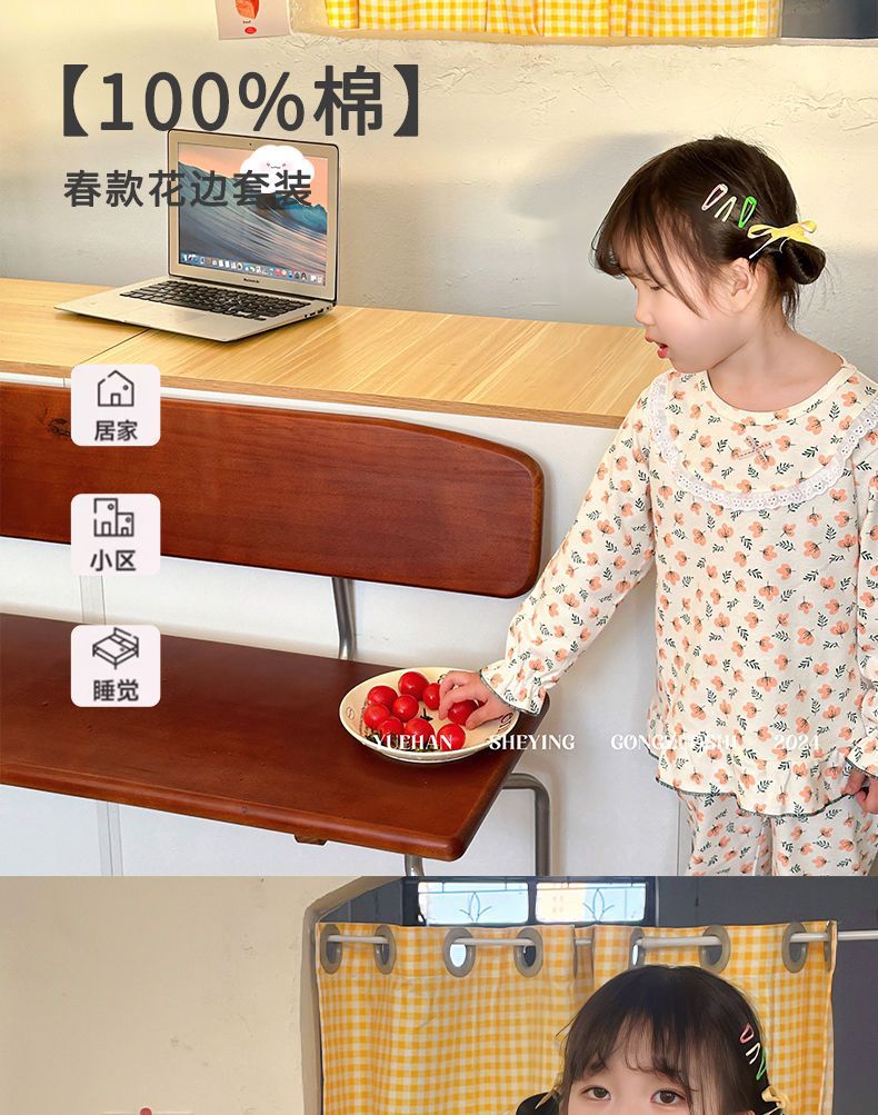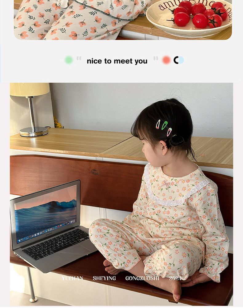 봄가을용 중대형 아동용 순면 긴팔 속옷 세트 어린이 잠옷 여아용 100% 순면 홈웨어스토어 가기