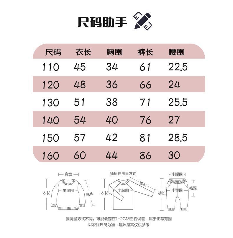 봄가을용 중대형 아동용 순면 긴팔 속옷 세트 어린이 잠옷 여아용 100% 순면 홈웨어