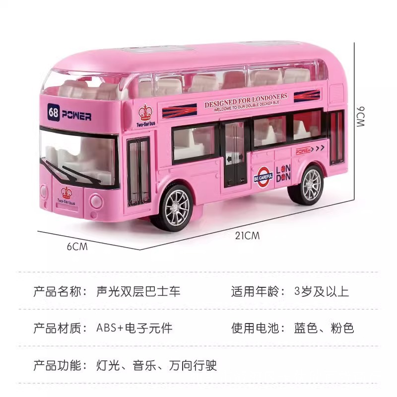 이층버스 장난감, 회전바퀴, 여자아이 스쿨버스, 남자아이 관성 자동차, 조명 및 음향 효과 전기차