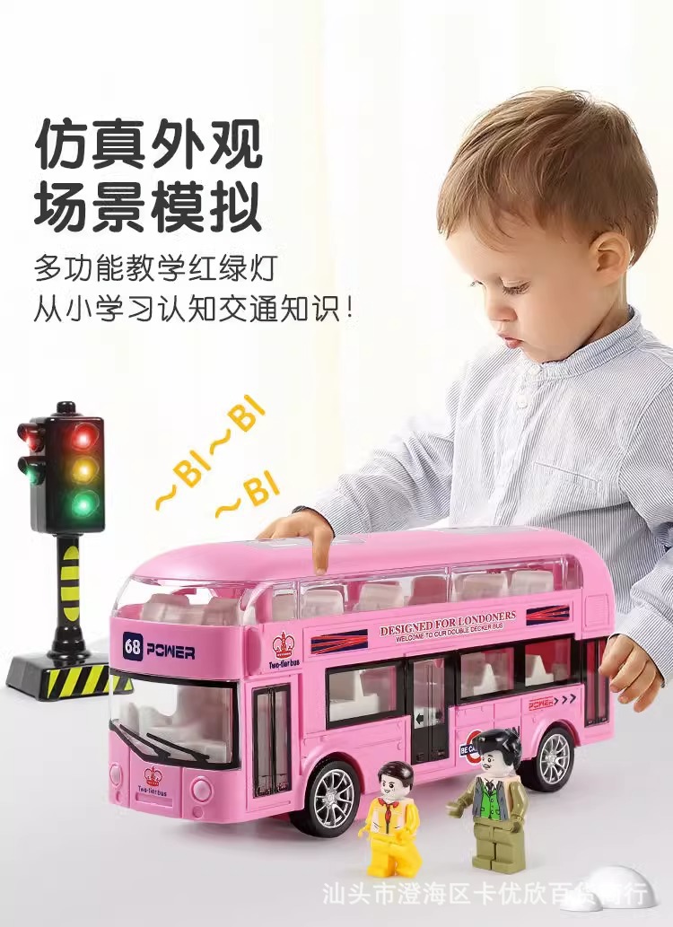 이층버스 장난감, 회전바퀴, 여자아이 스쿨버스, 남자아이 관성 자동차, 조명 및 음향 효과 전기차스토어 가기