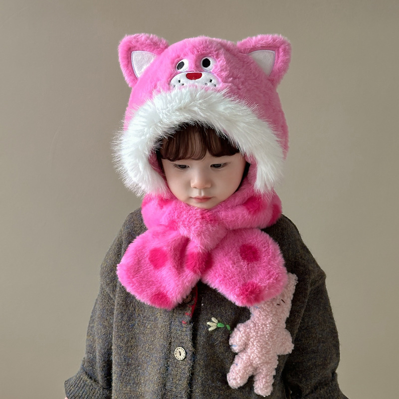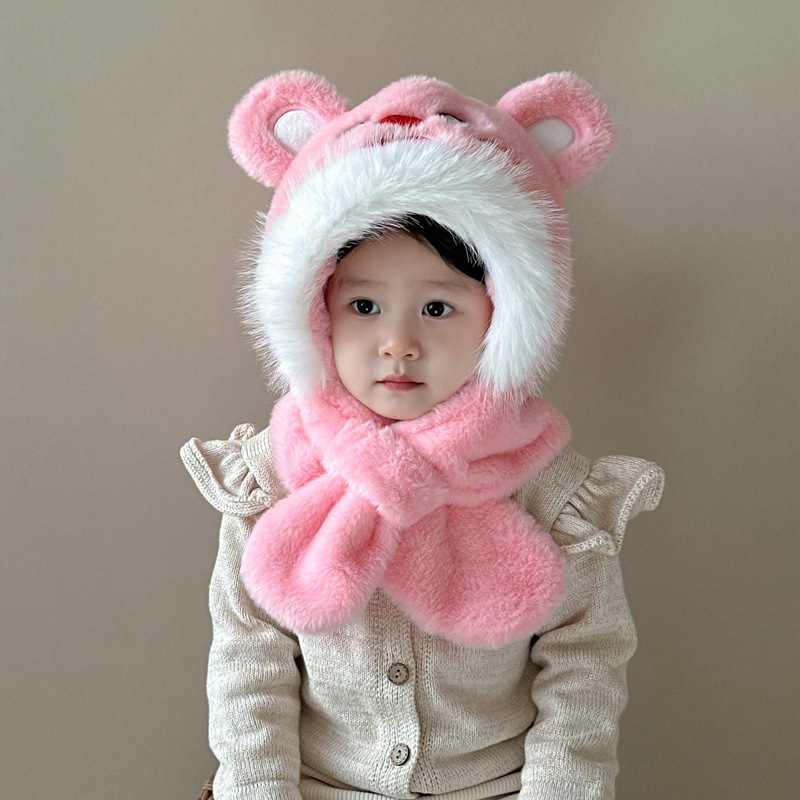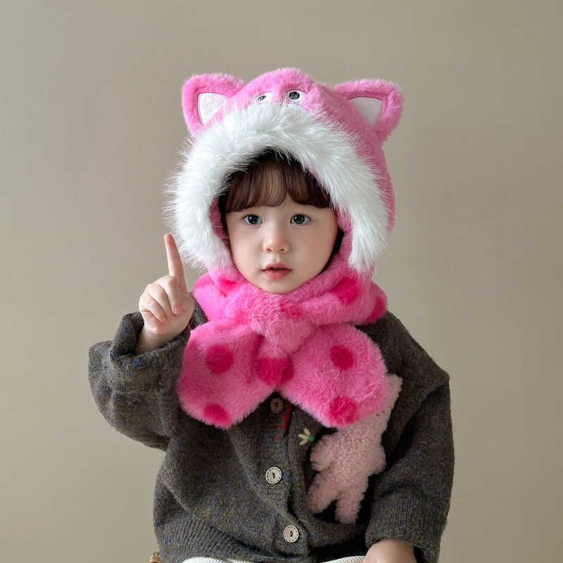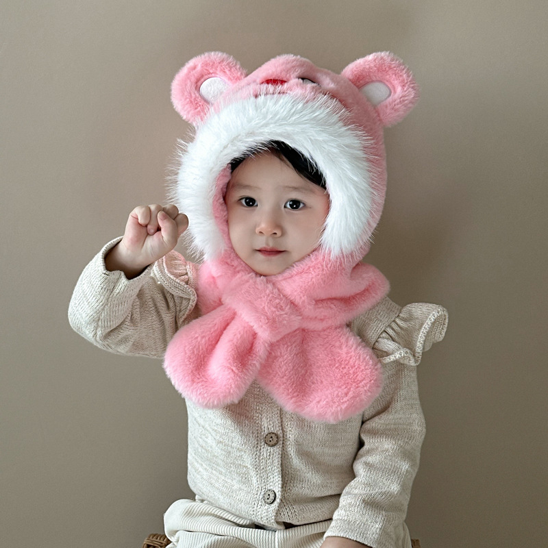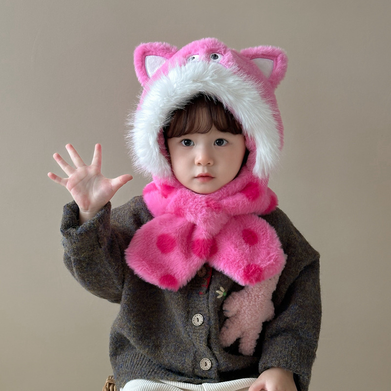 새로운 어린이 모자 스카프 올인원 모자 겨울 아기 귀여운 두꺼운 따뜻한 스카프 플러시 크로스 풀오버 모자스토어 가기