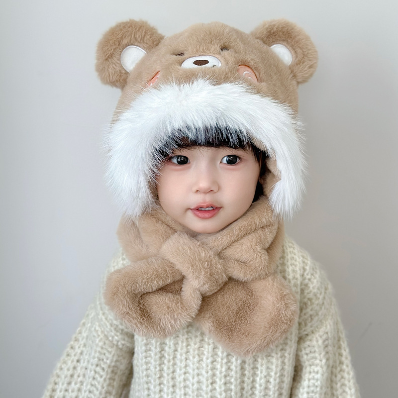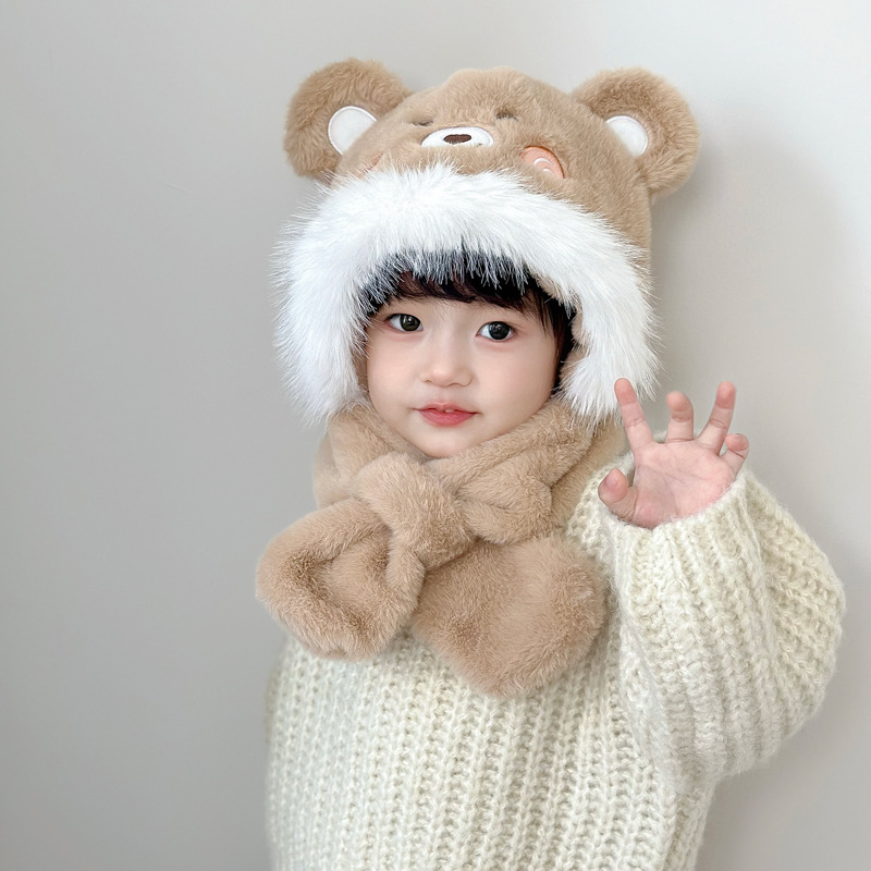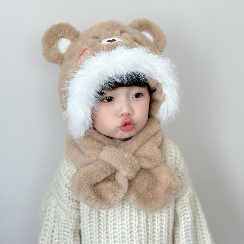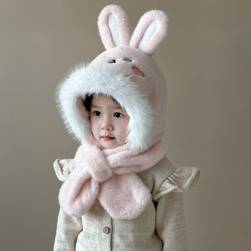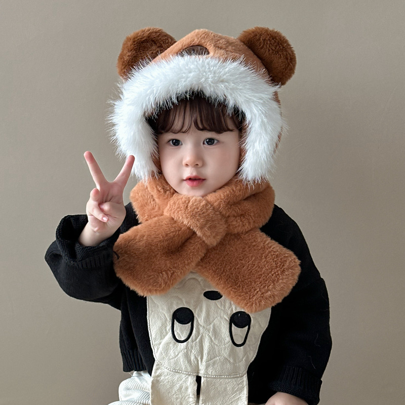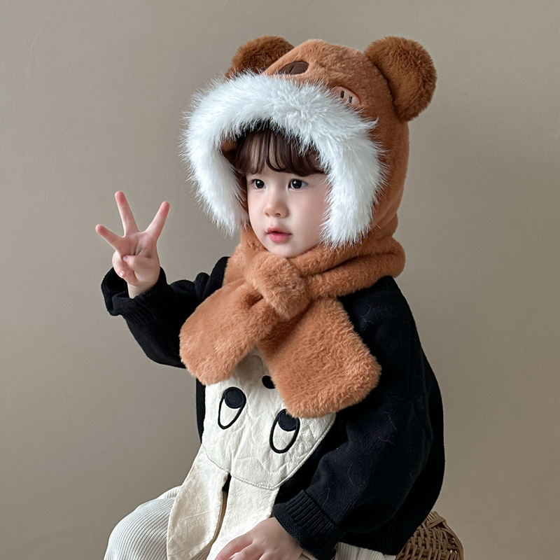 새로운 어린이 모자 스카프 올인원 모자 겨울 아기 귀여운 두꺼운 따뜻한 스카프 플러시 크로스 풀오버 모자스토어 가기