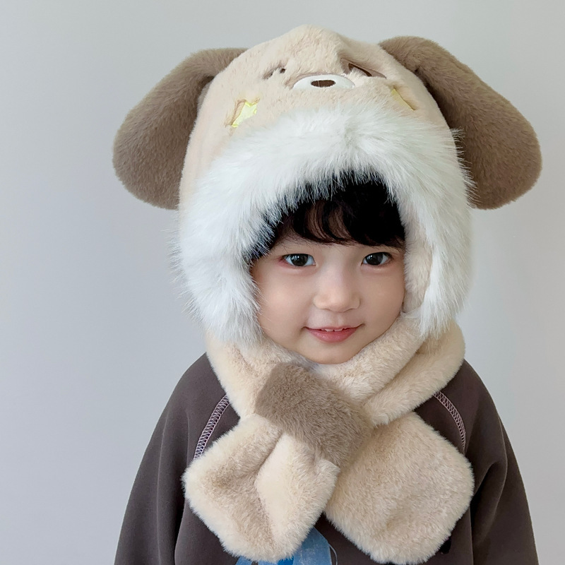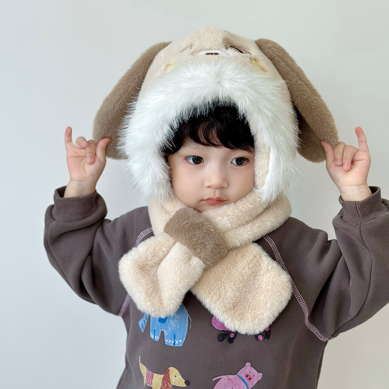 새로운 어린이 모자 스카프 올인원 모자 겨울 아기 귀여운 두꺼운 따뜻한 스카프 플러시 크로스 풀오버 모자