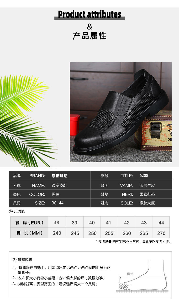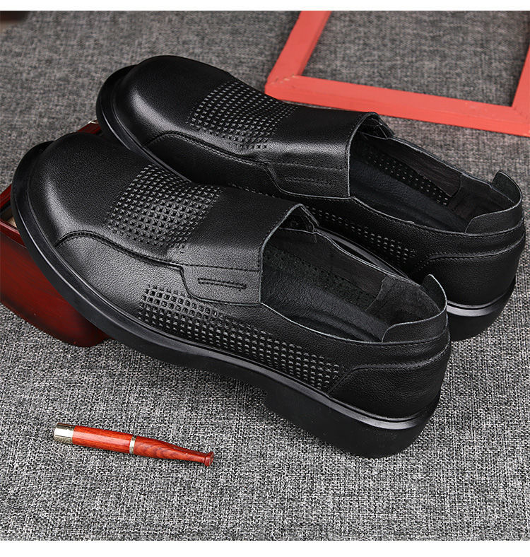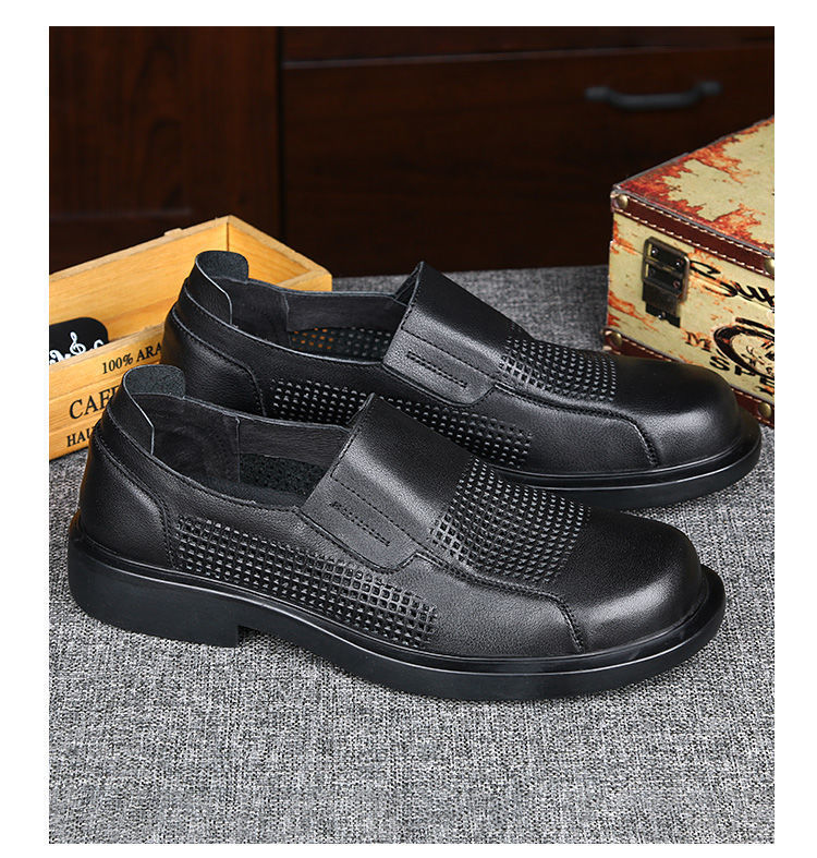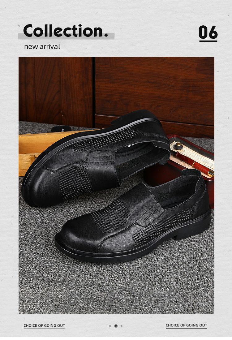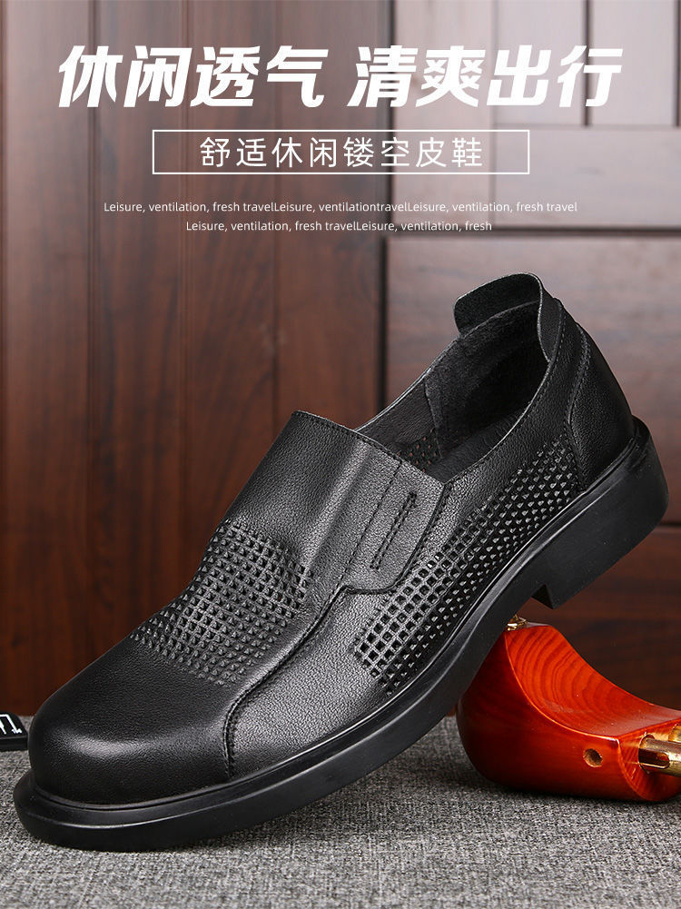 중공 가죽 신발 남성 여름 통기성 비즈니스 캐주얼 남성 가죽 샌들 싱글 레이어 Cowhide 가죽 슬립 온 정품 가죽스토어 가기