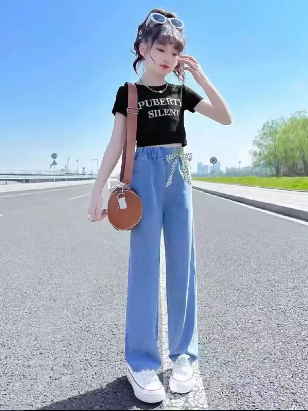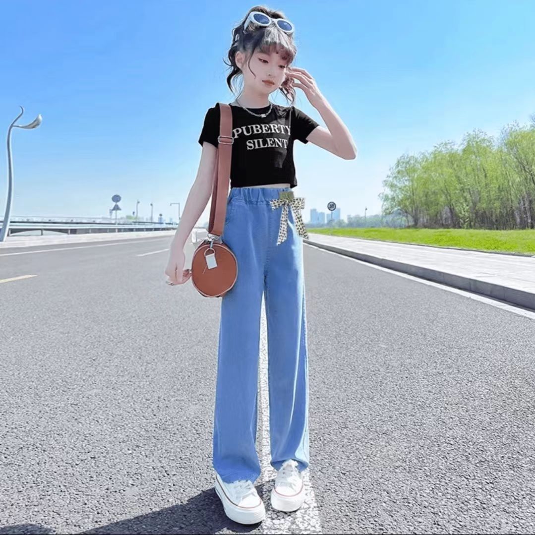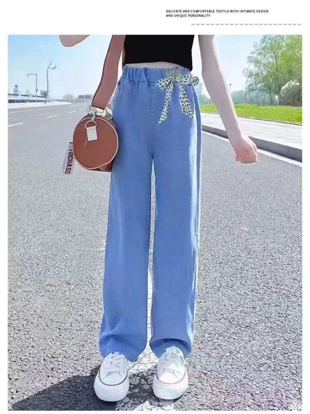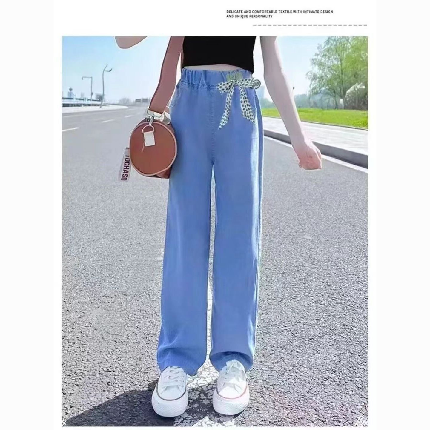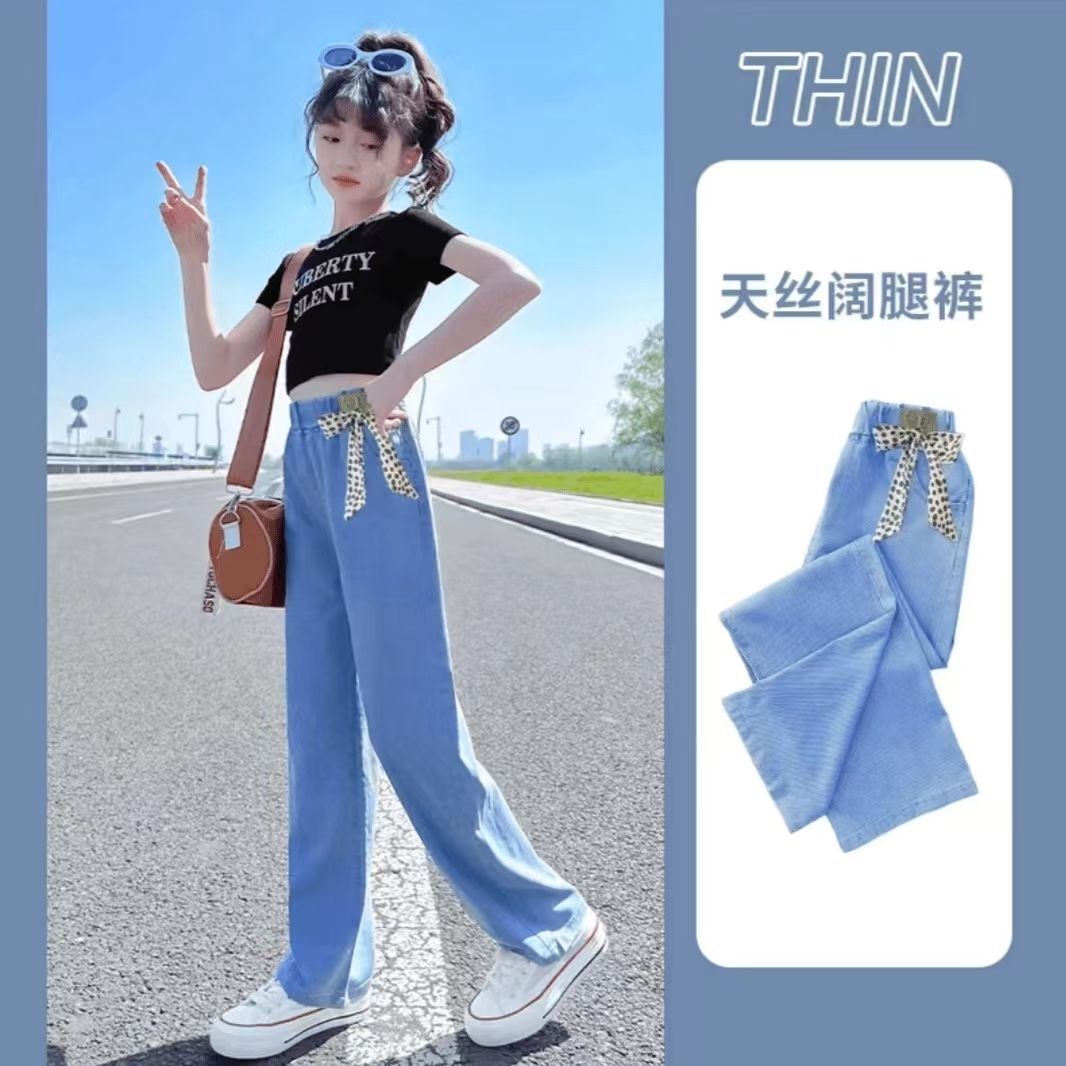 중다 여자 텐셀 청바지 여름 얇은 2025 새로운 넓은 다리 바지 서양식 슬리밍 바지스토어 가기