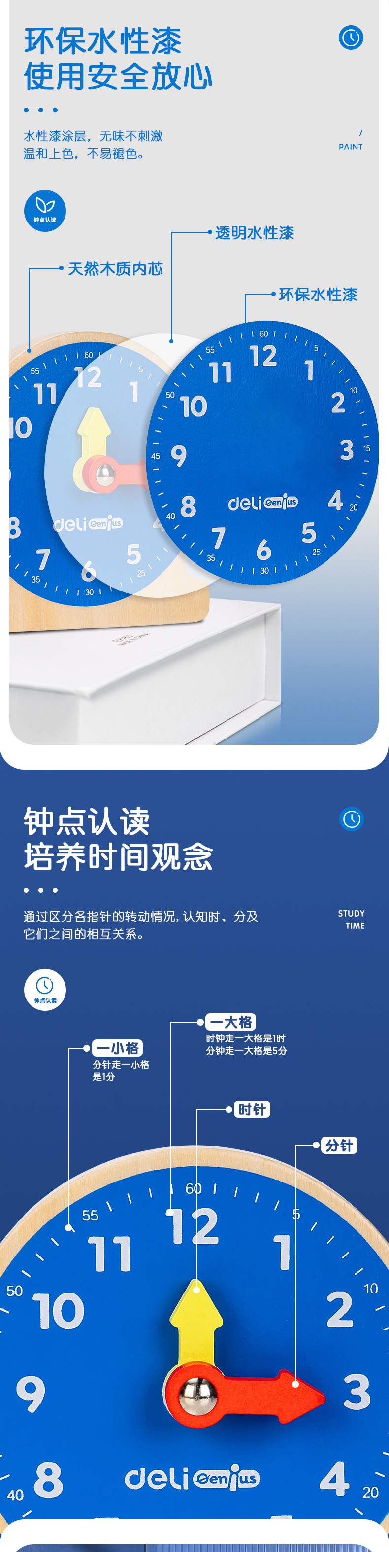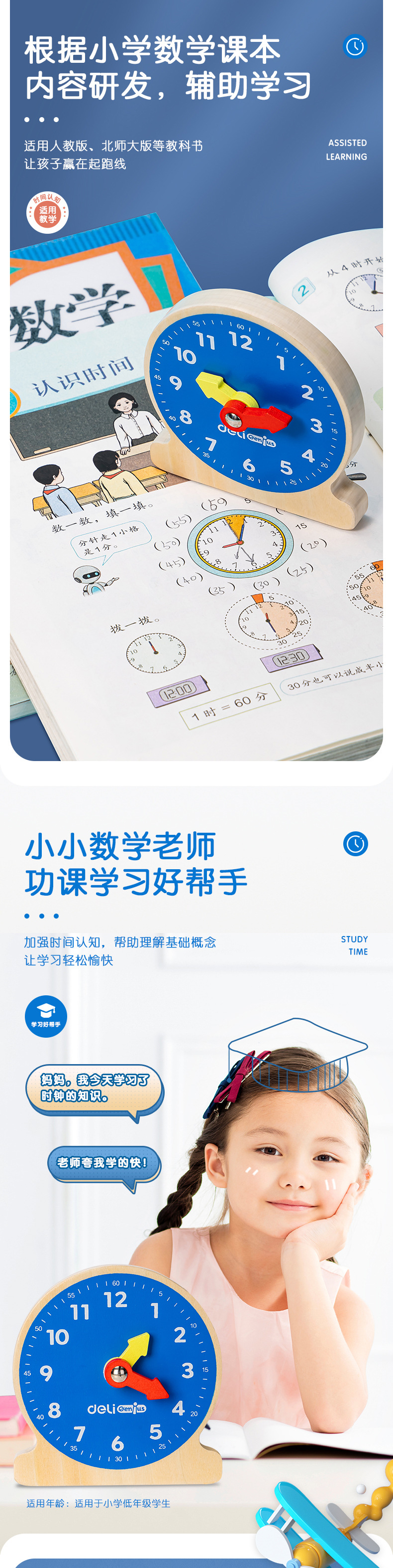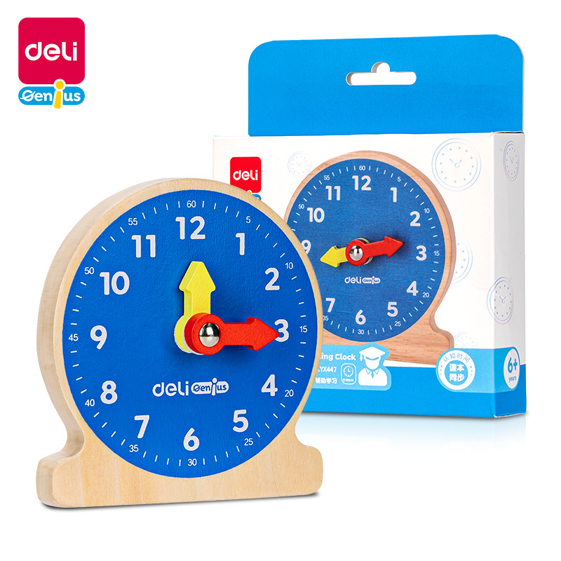 델리 YX447 초등학생을위한 나무 시계 학습기 1 학년 및 2 학년 시계 교육 보조 어린이 시계 모델스토어 가기