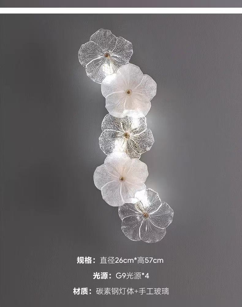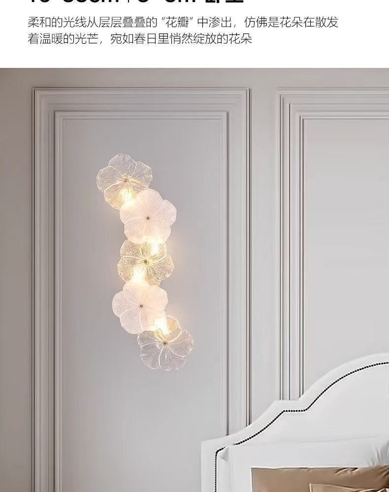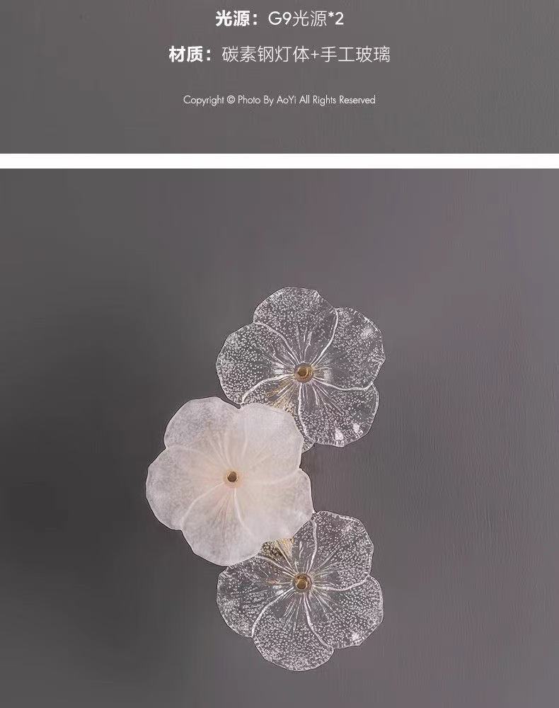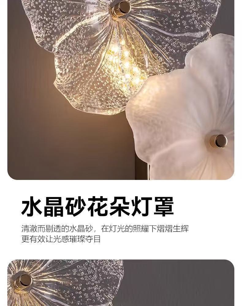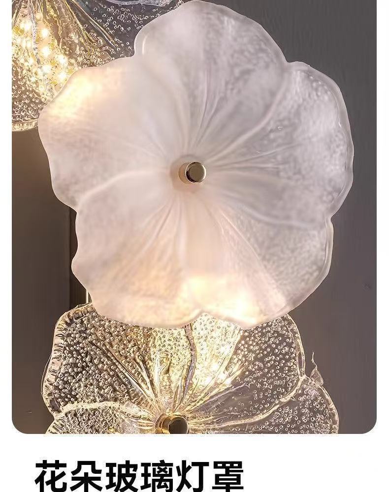 프랑스 스타일 가벼운 고급 벽 램프 거실 배경 벽 장식 램프 현대 간단한 유리 꽃 입구 벽 장착 램프 새로운 스타일스토어 가기