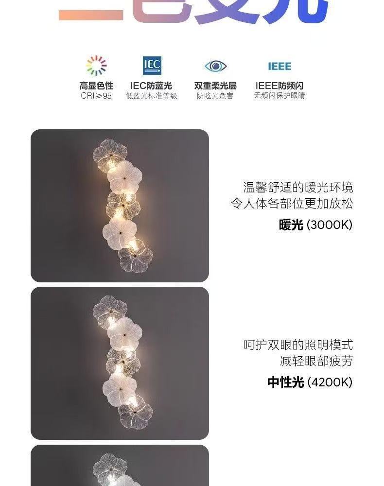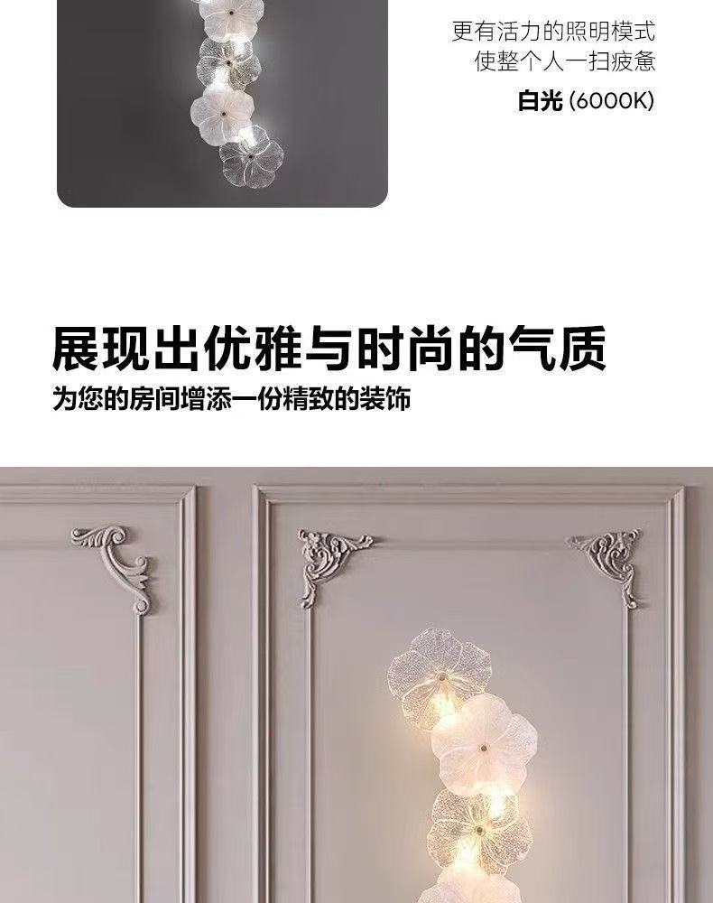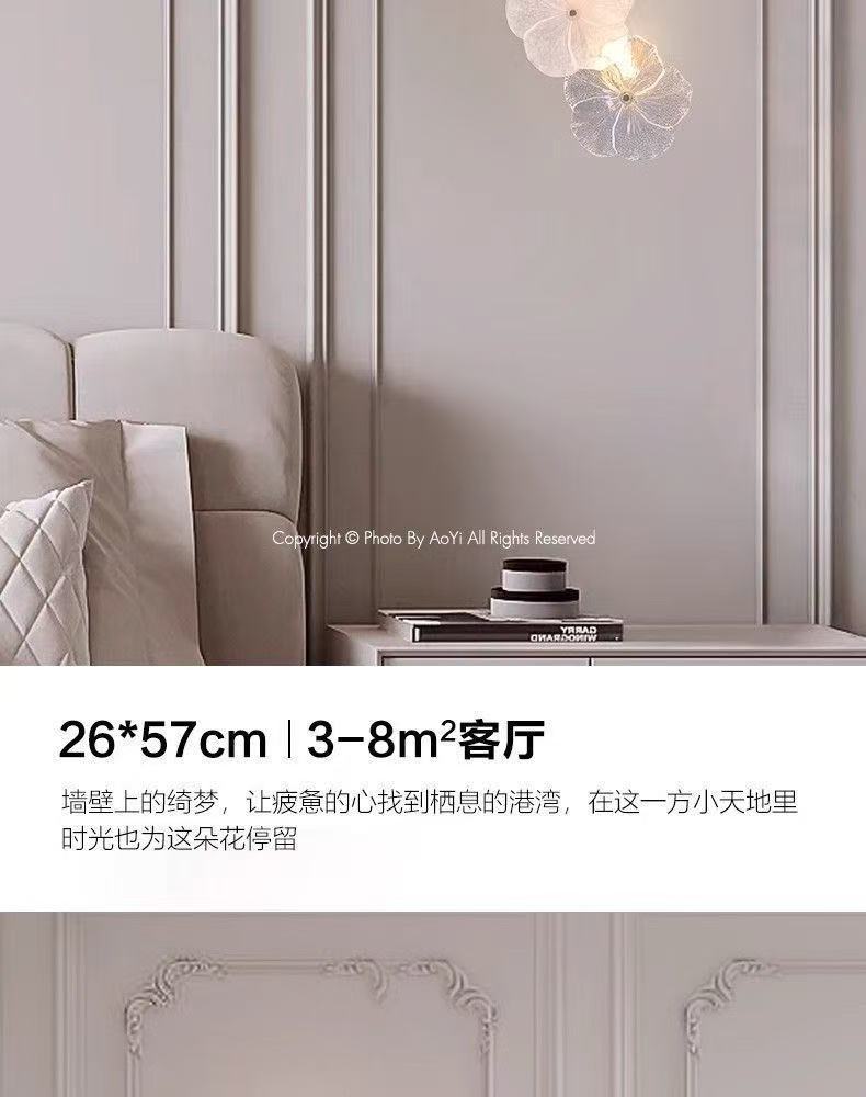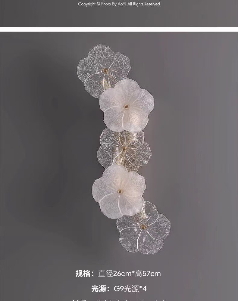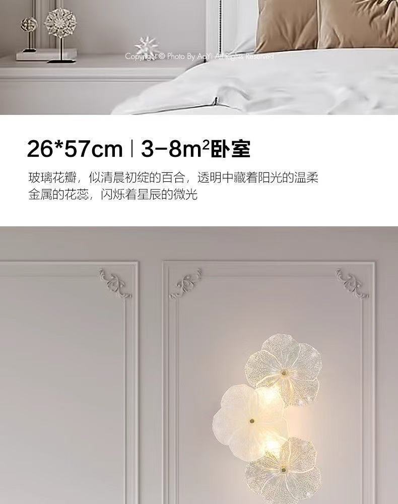프랑스 스타일 가벼운 고급 벽 램프 거실 배경 벽 장식 램프 현대 간단한 유리 꽃 입구 벽 장착 램프 새로운 스타일스토어 가기