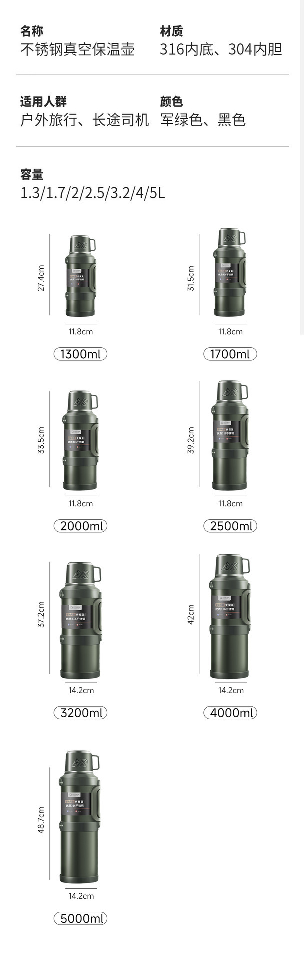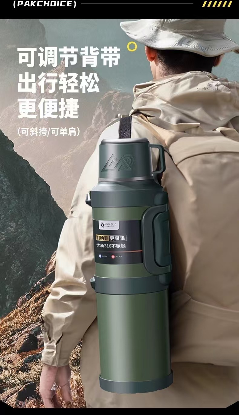 316 대용량 야외 보온병 휴대용 등산 주전자 스테인레스 스틸 보온병 컵 가정용 물 컵