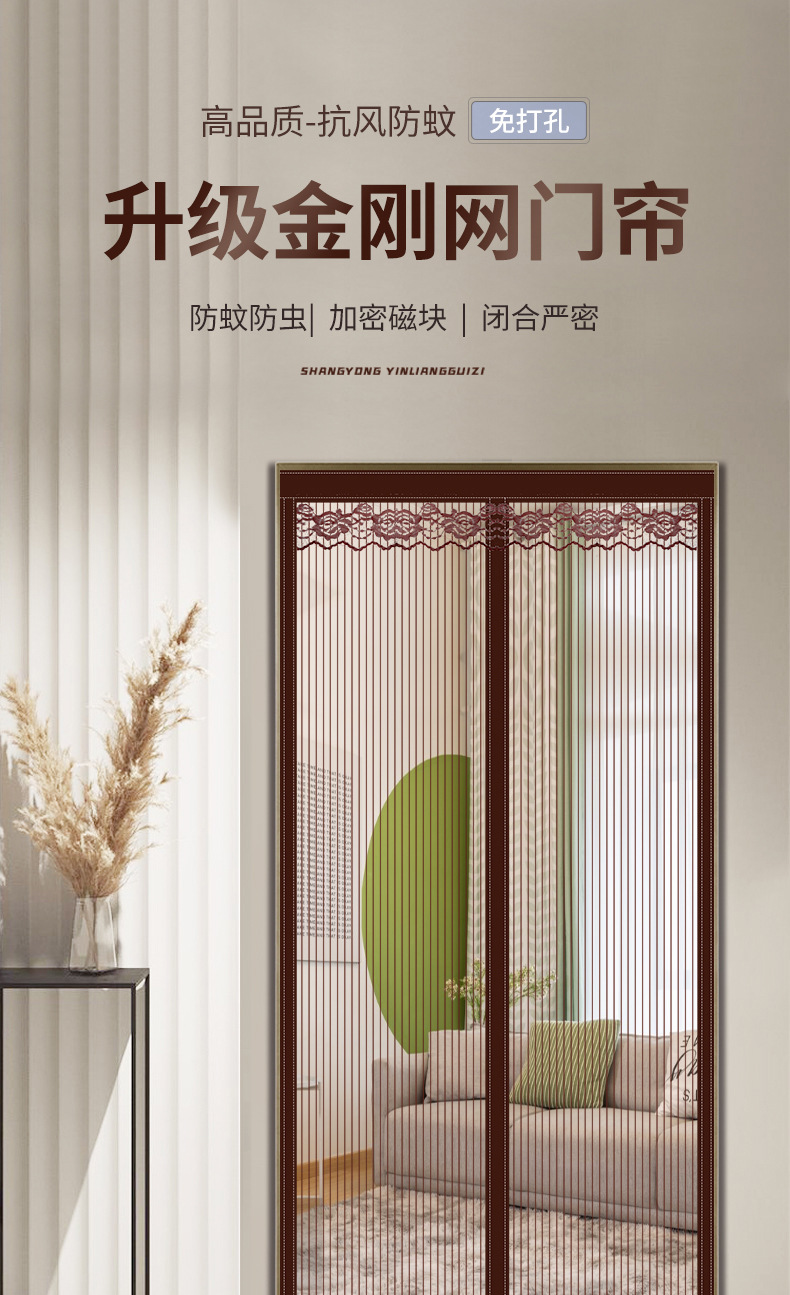 여름 가정용 도매 다이아몬드 거즈 모기 방지 도어 커튼, 고양이 긁힘 방지, 자기 흡입, 펀치 프리, 무음 다이아몬드 메쉬 도어 커튼스토어 가기