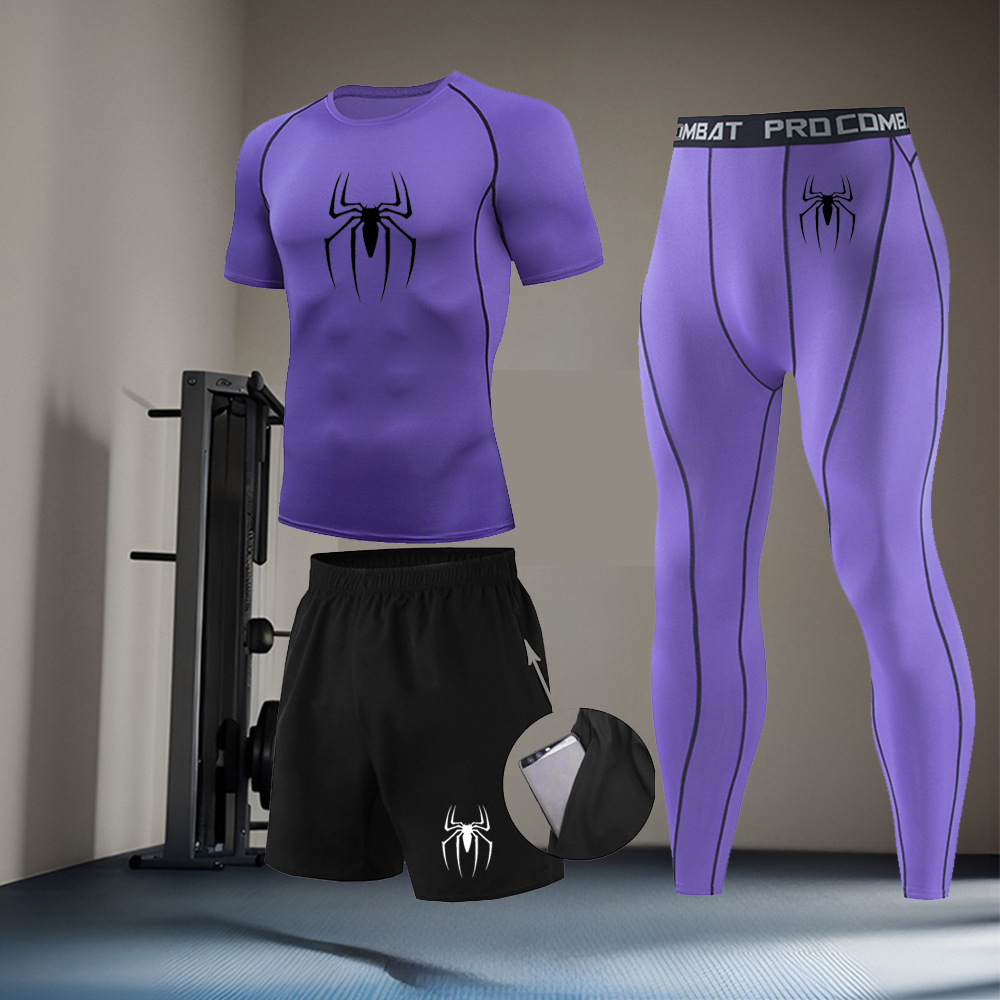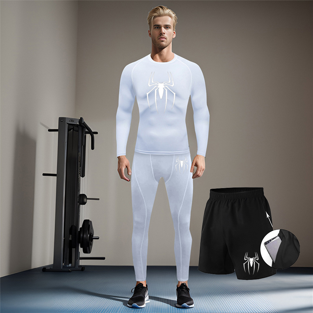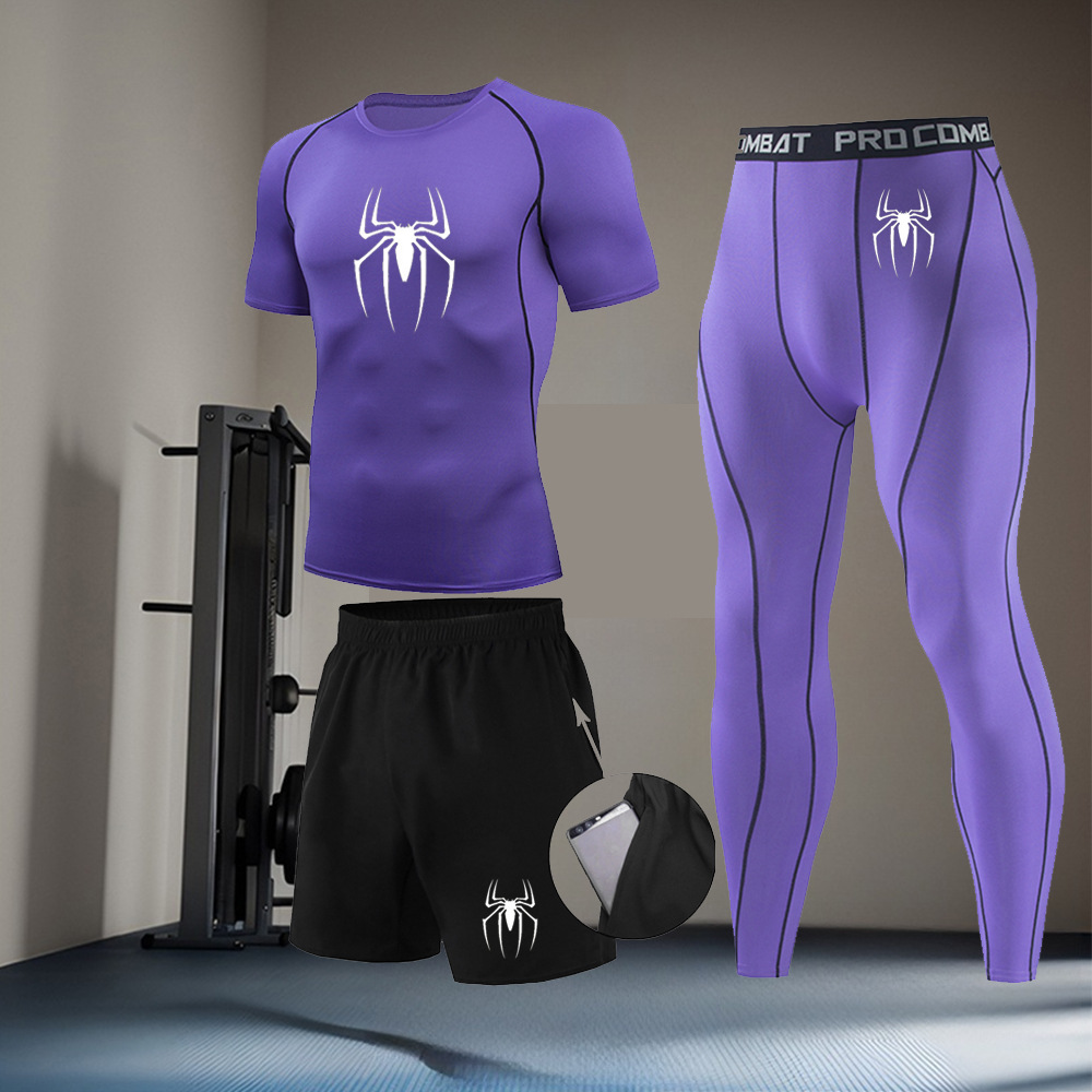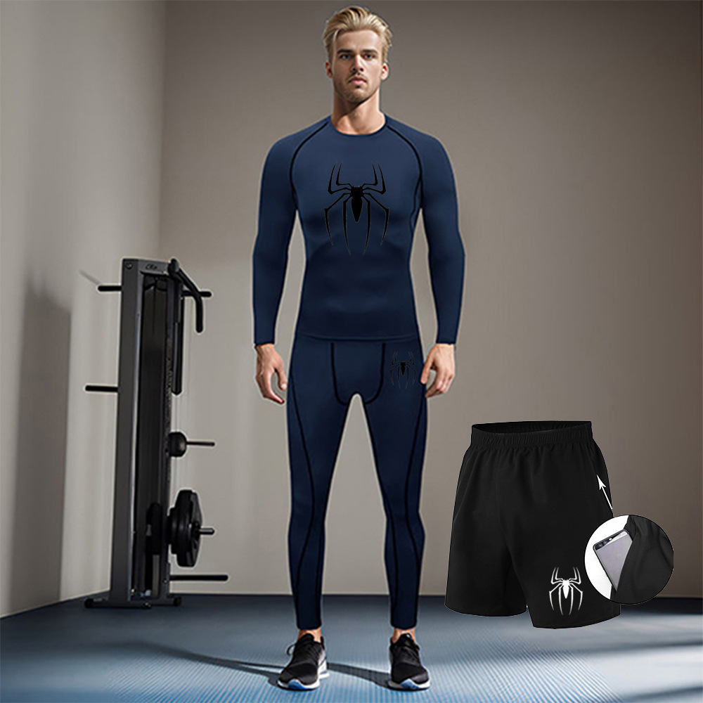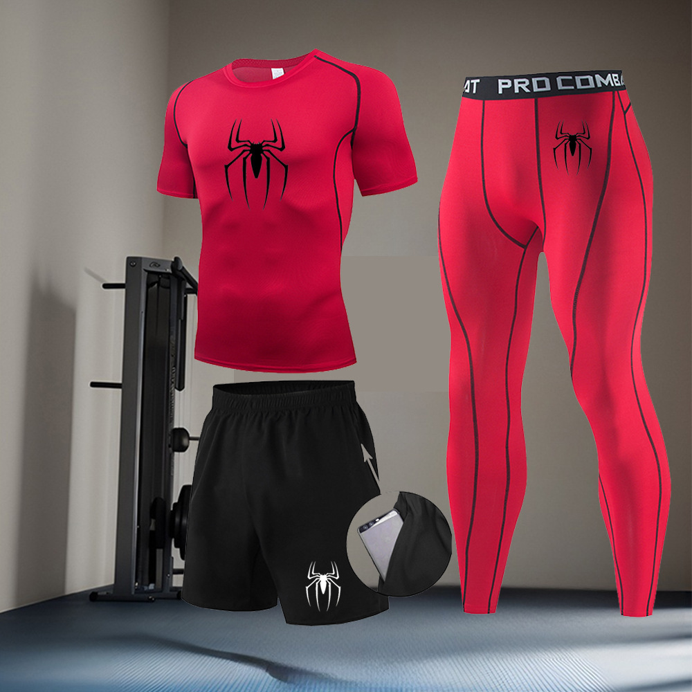 패션 남자 압축 스파이더 맨 3 피스 세트 빠른 건조 긴 소매 스타킹 러닝 스포츠 정장 농구 훈련 양복