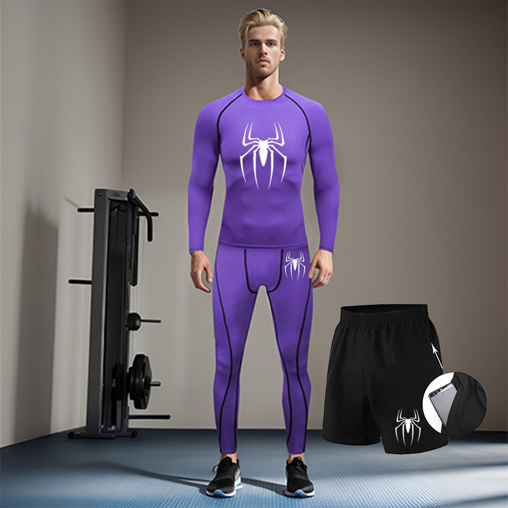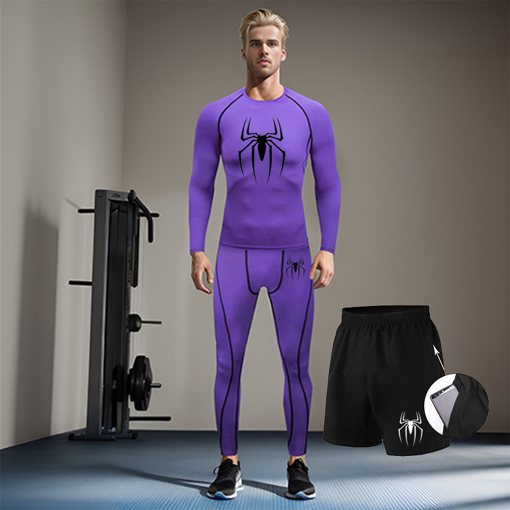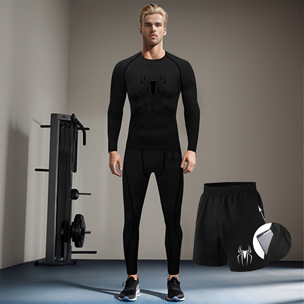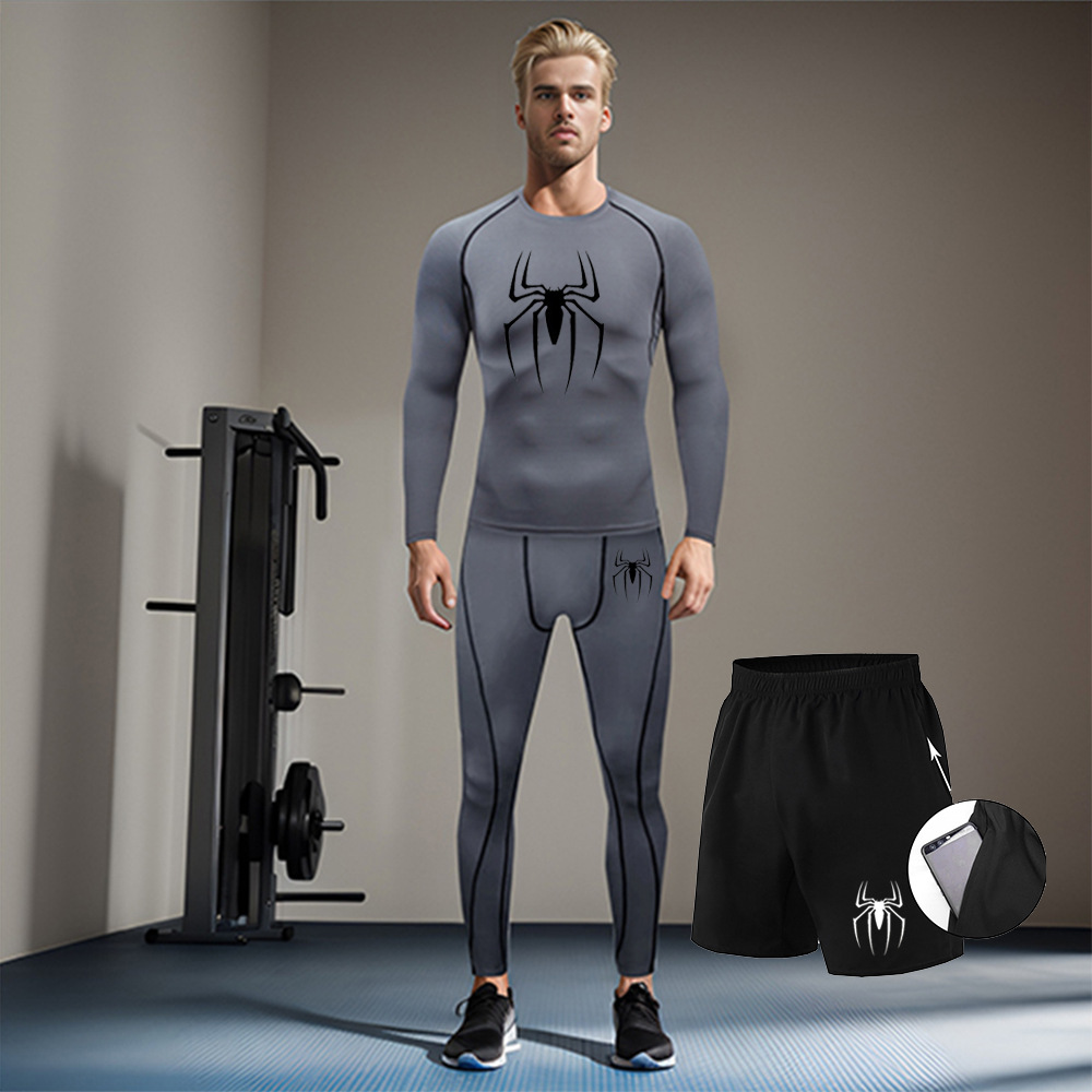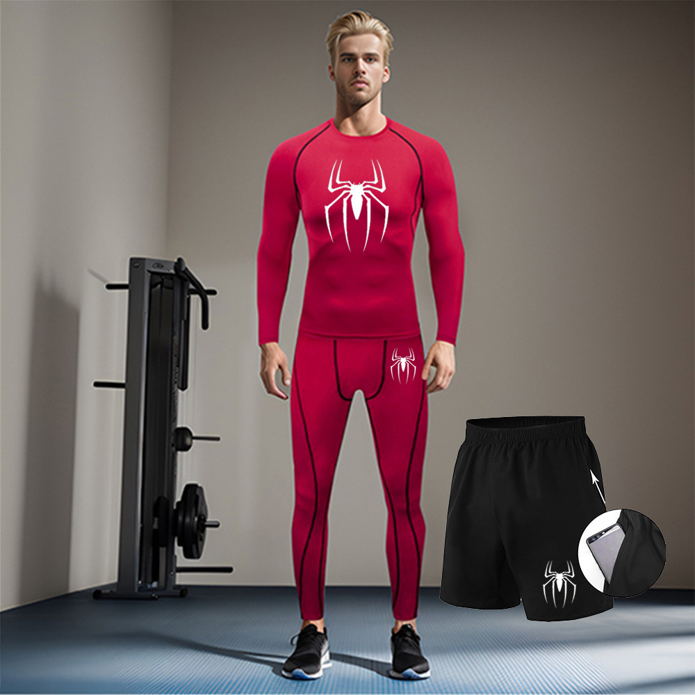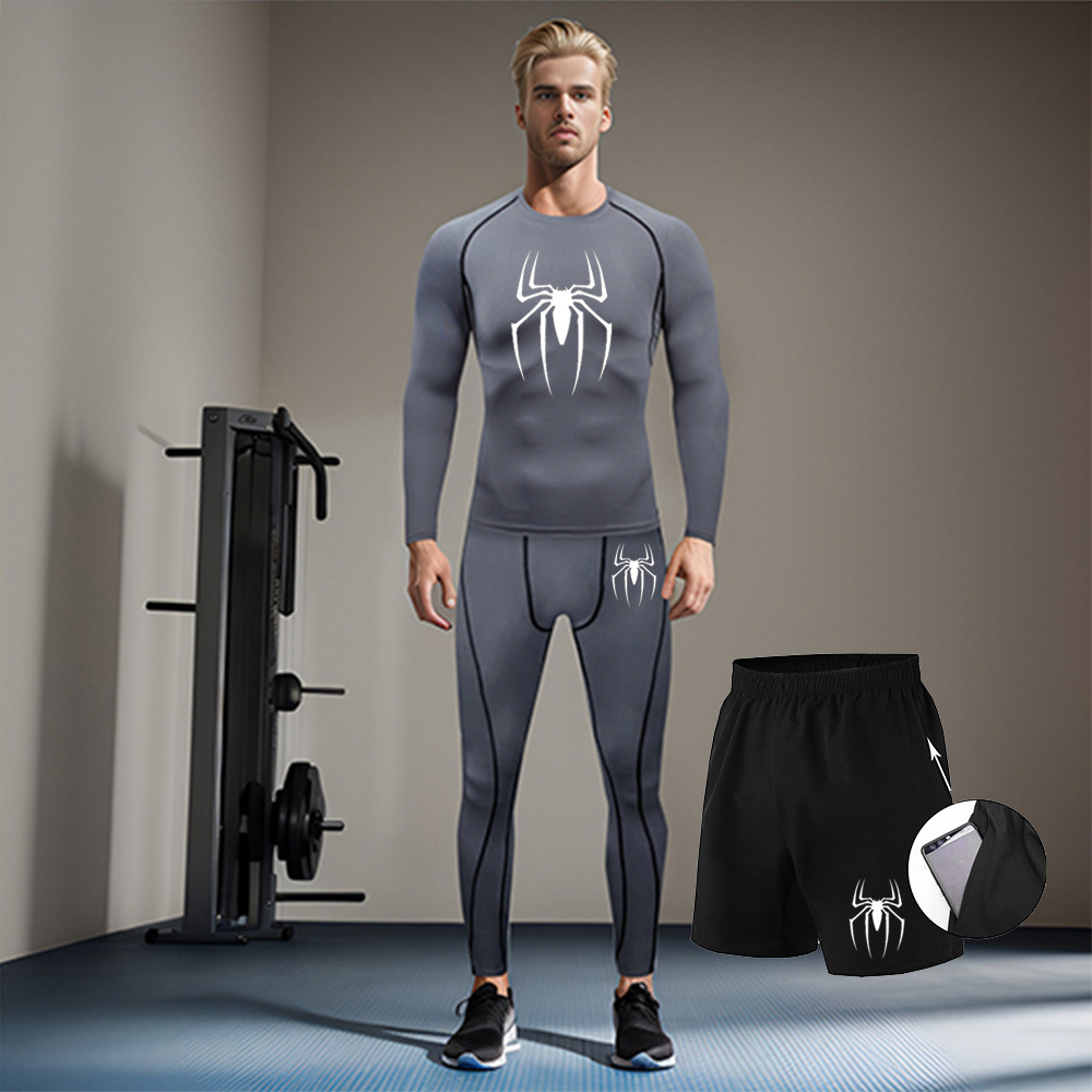 패션 남자 압축 스파이더 맨 3 피스 세트 빠른 건조 긴 소매 스타킹 러닝 스포츠 정장 농구 훈련 양복