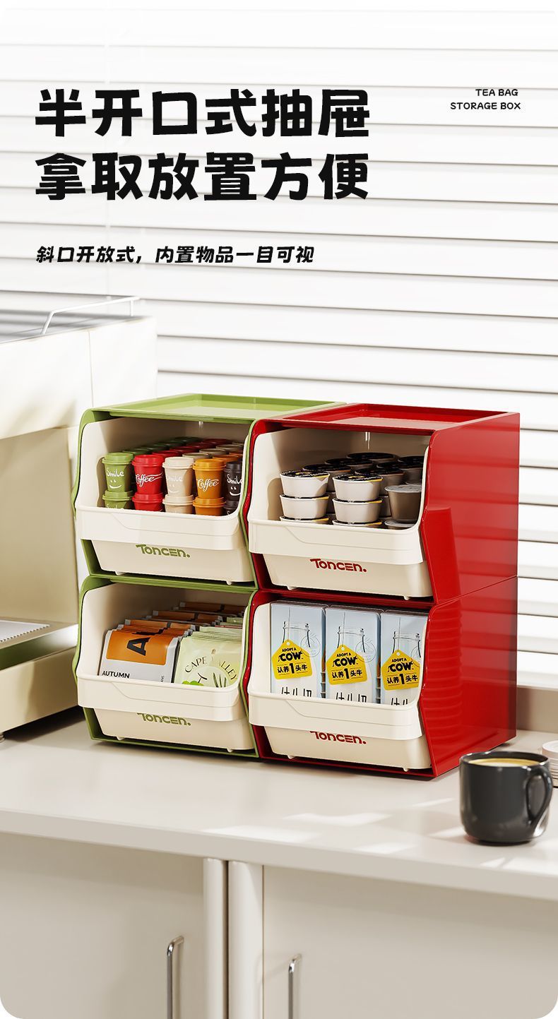 Ins 데스크탑 정리 상자 커피 밀크티 사무실 티룸 보관함 투명 선반 티백 방진 보관함스토어 가기