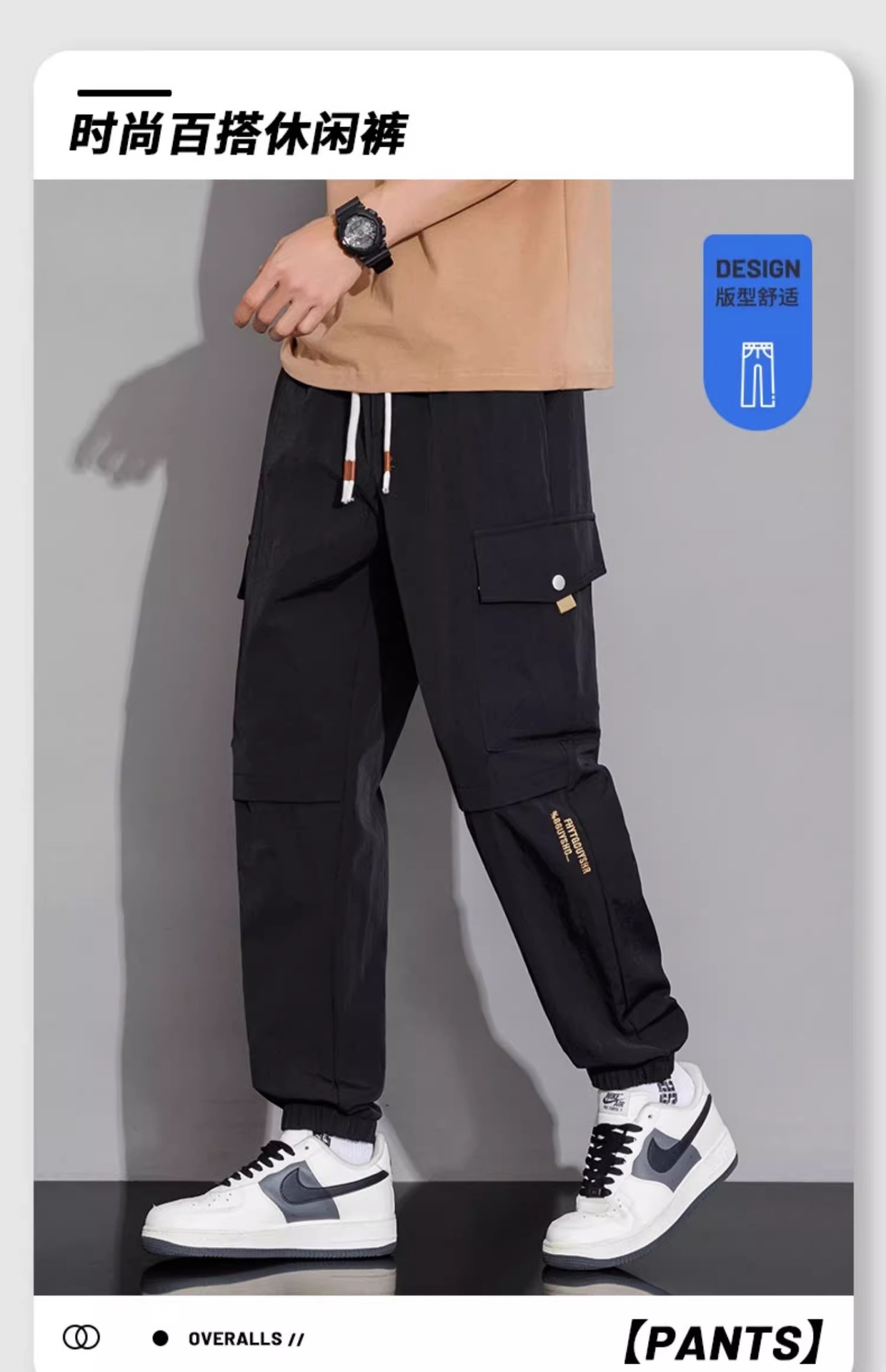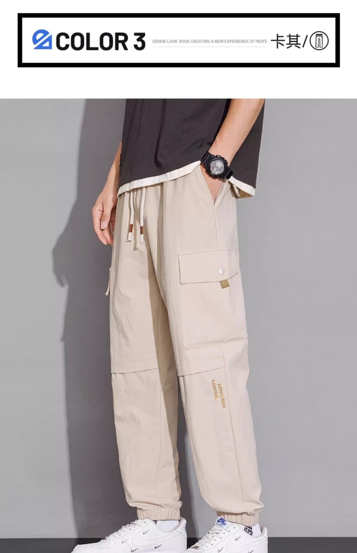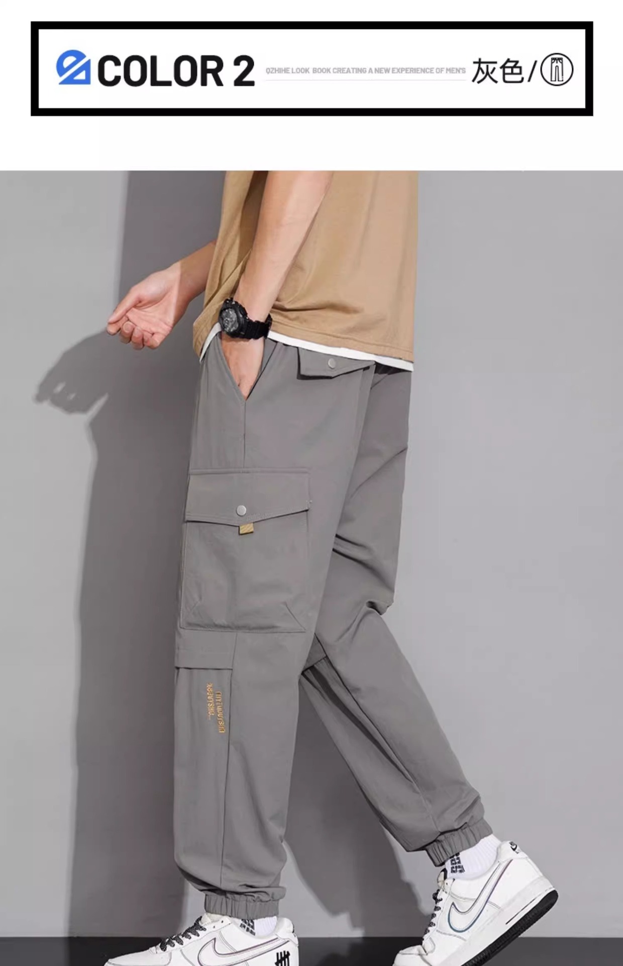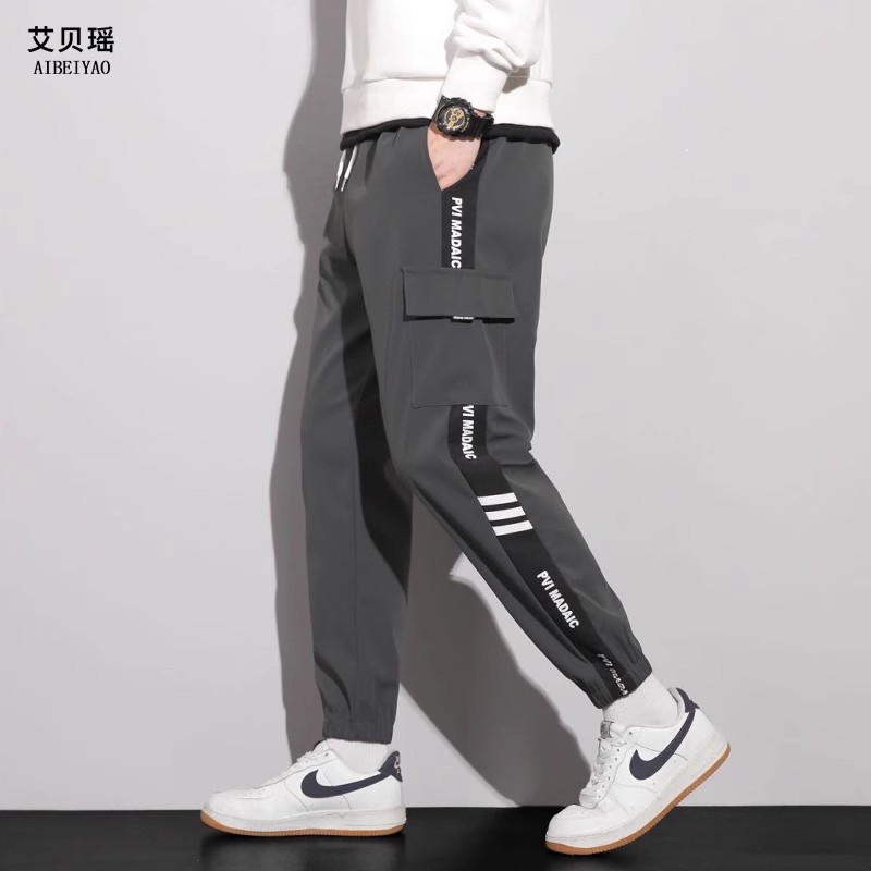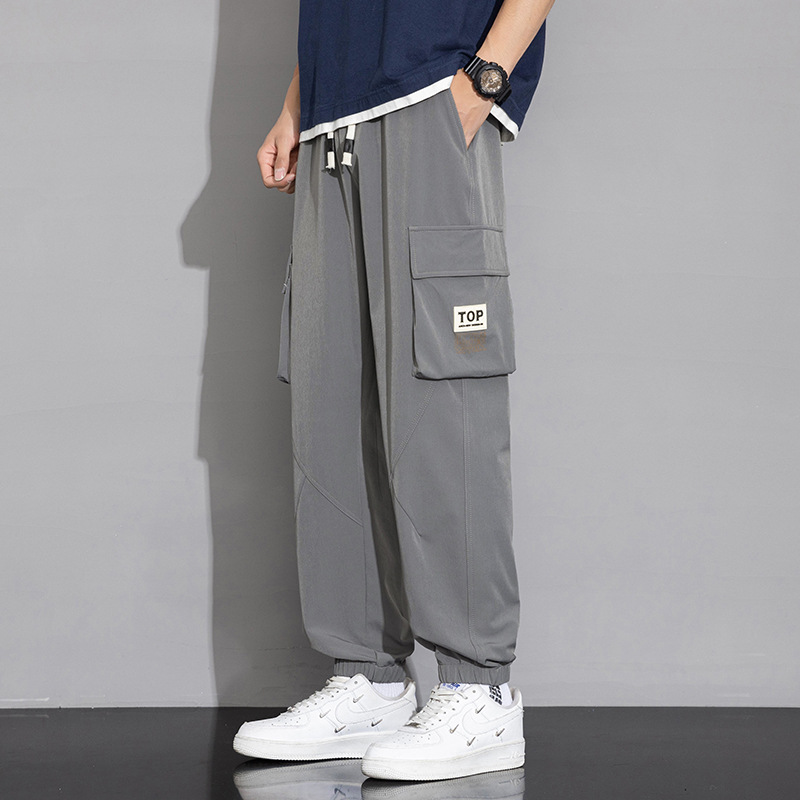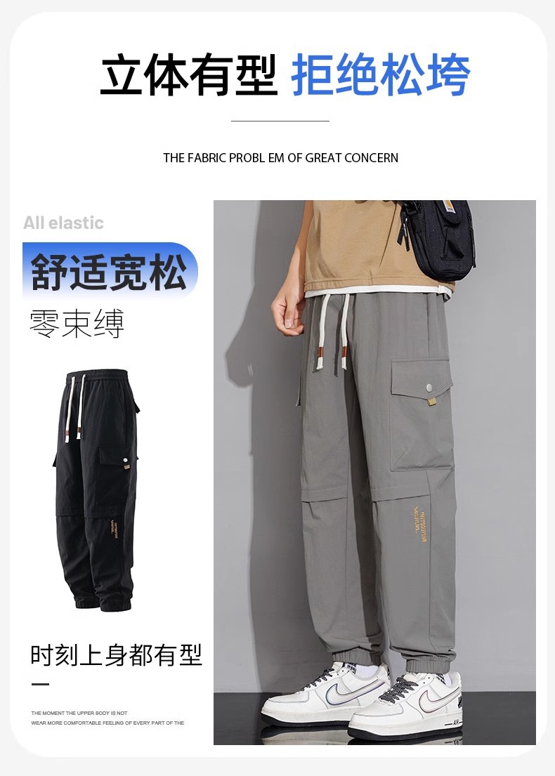 작업복 남자의 느슨한 플러스 사이즈 남자 바지 여름 얇은 2025 새로운 봄과 가을 소년 아이스 실크 편안한 캐주얼 바지