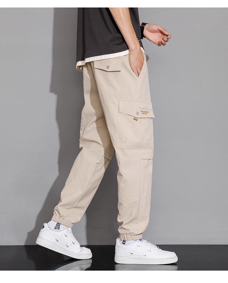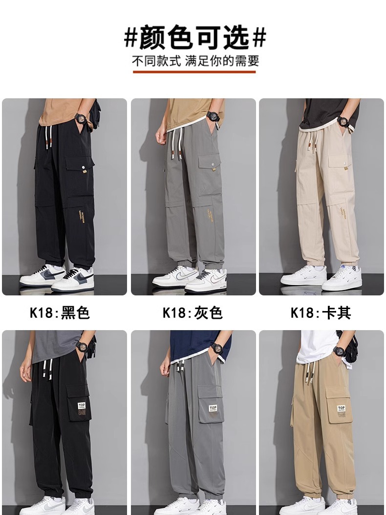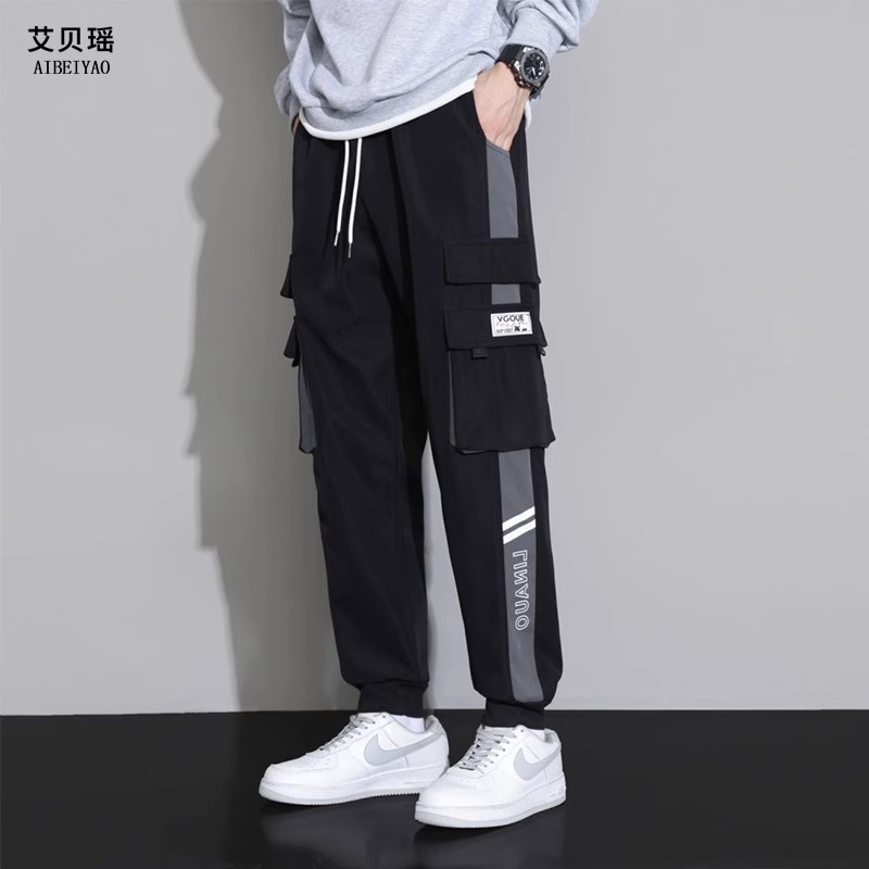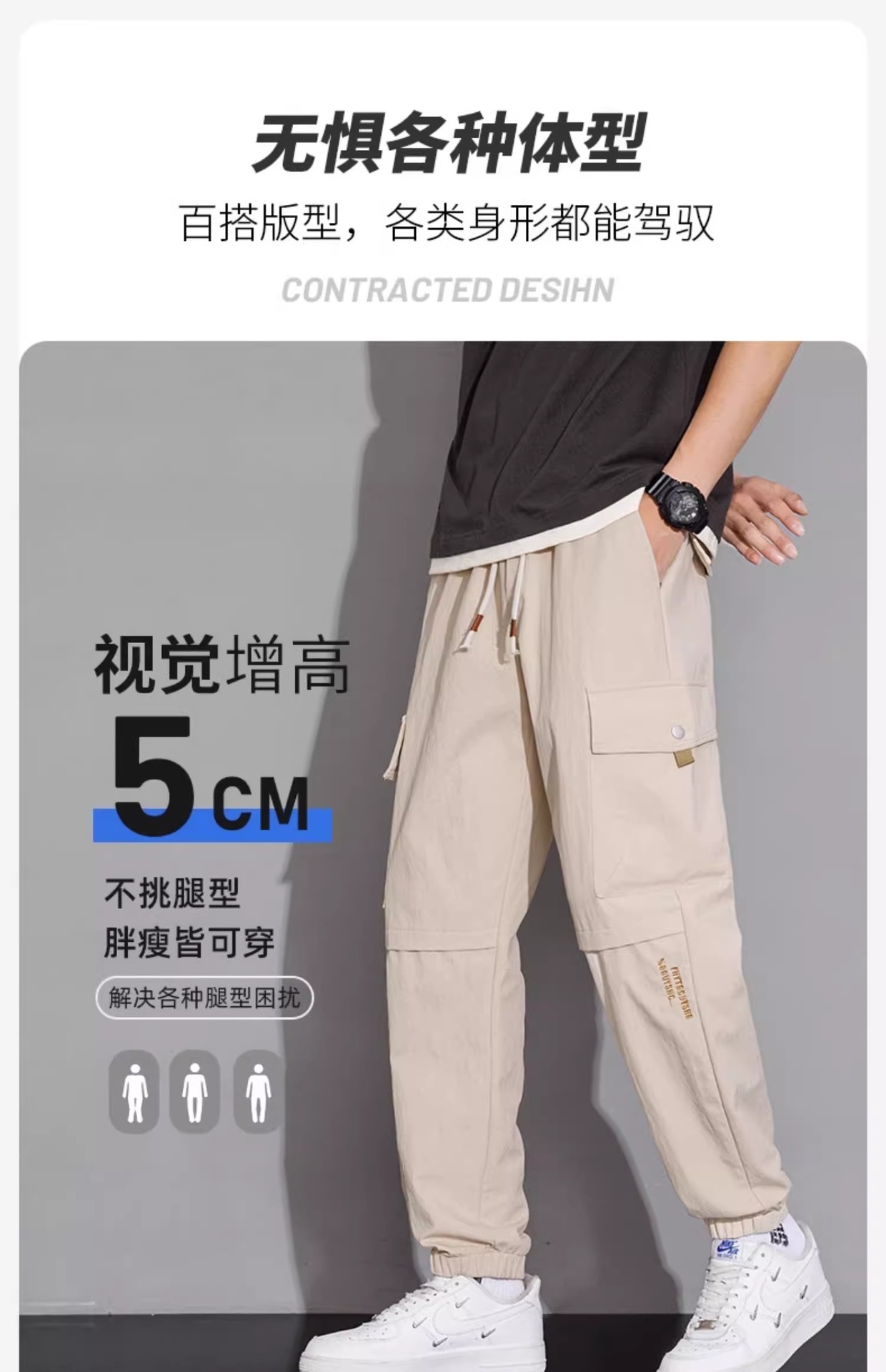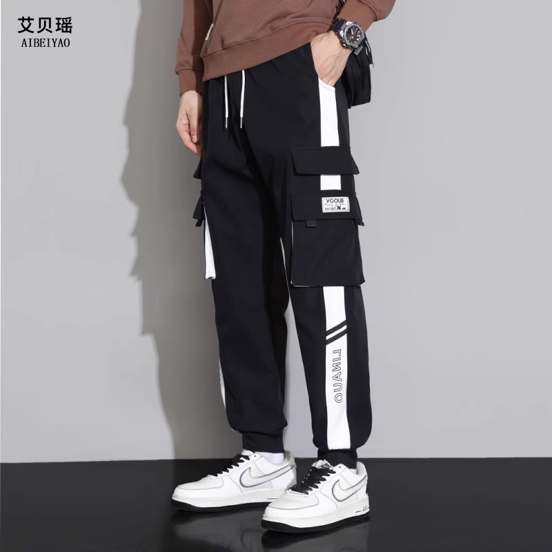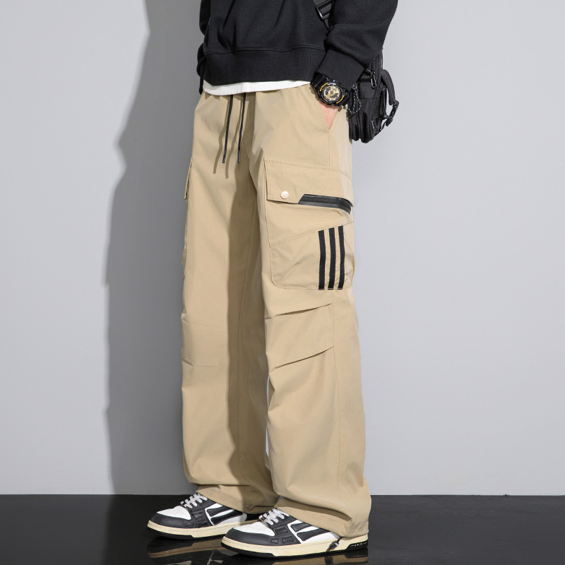 작업복 남자의 느슨한 플러스 사이즈 남자 바지 여름 얇은 2025 새로운 봄과 가을 소년 아이스 실크 편안한 캐주얼 바지