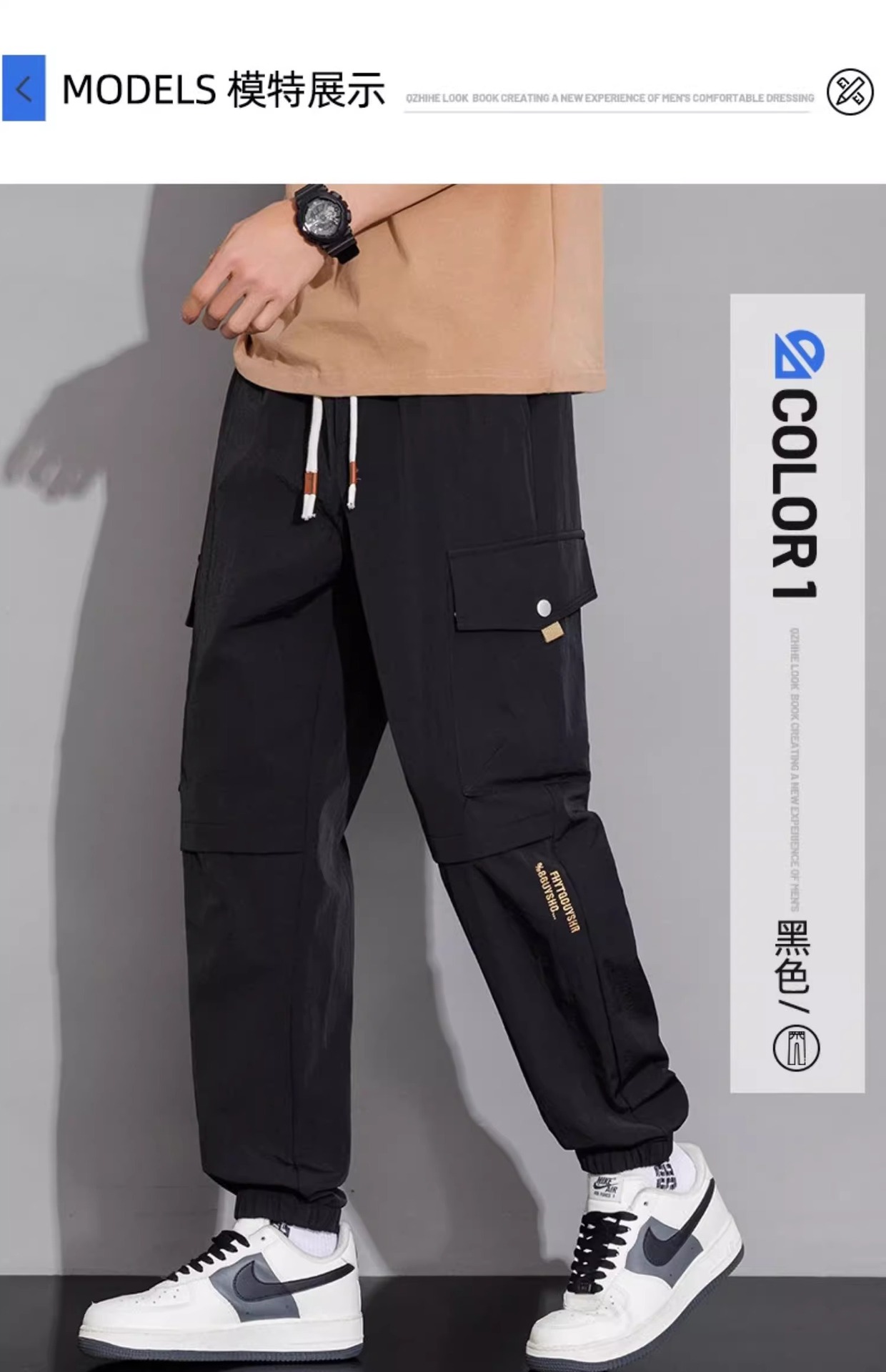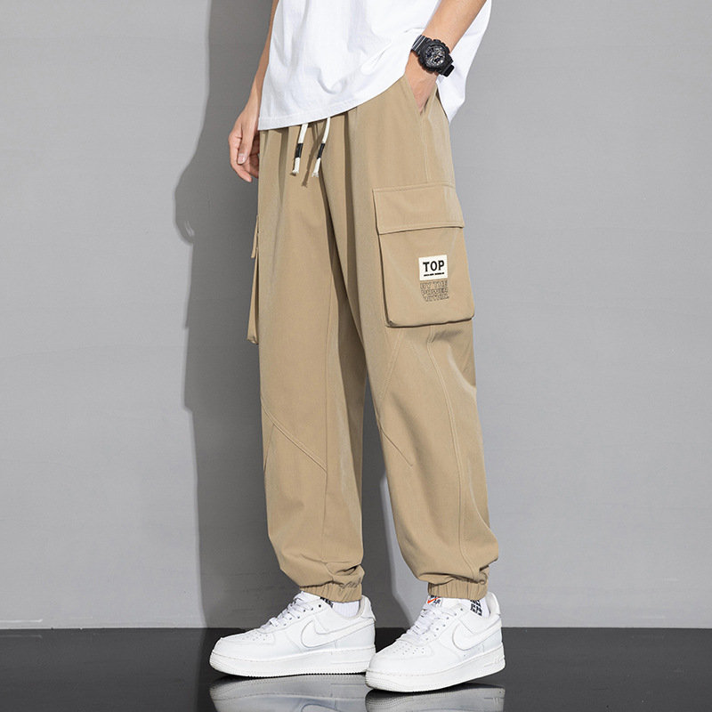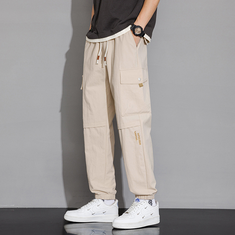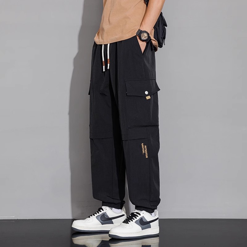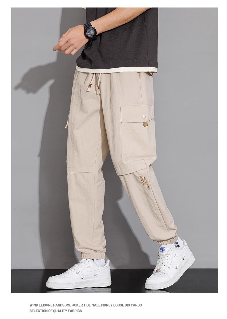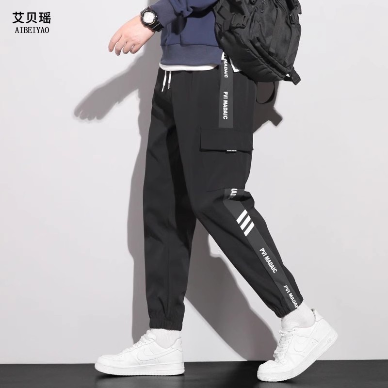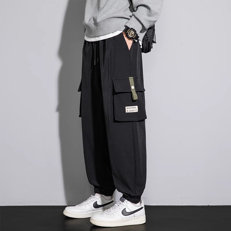 작업복 남자의 느슨한 플러스 사이즈 남자 바지 여름 얇은 2025 새로운 봄과 가을 소년 아이스 실크 편안한 캐주얼 바지