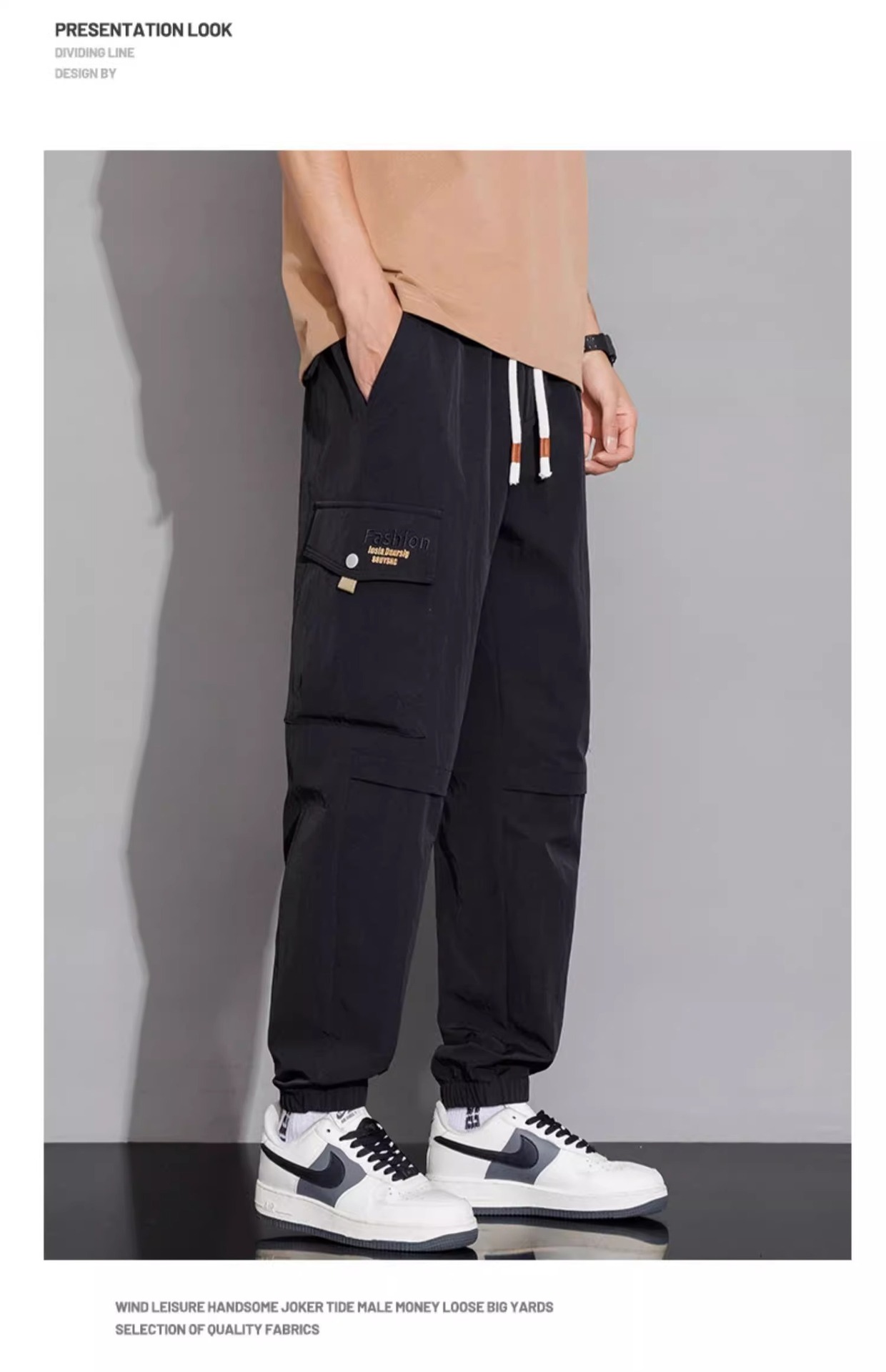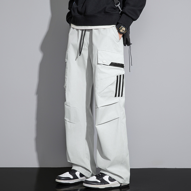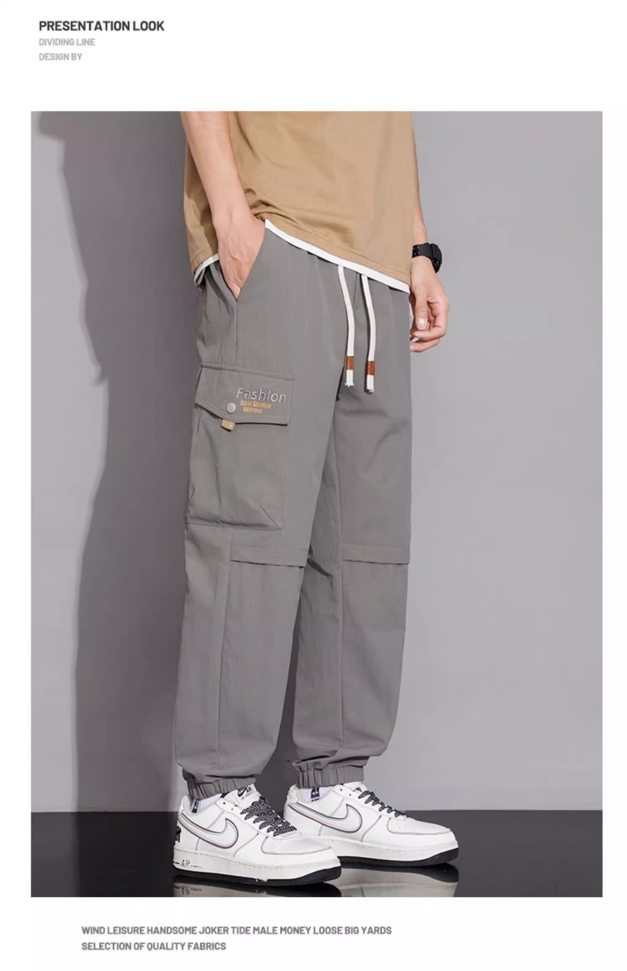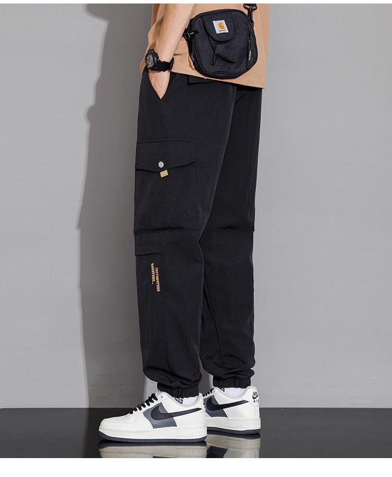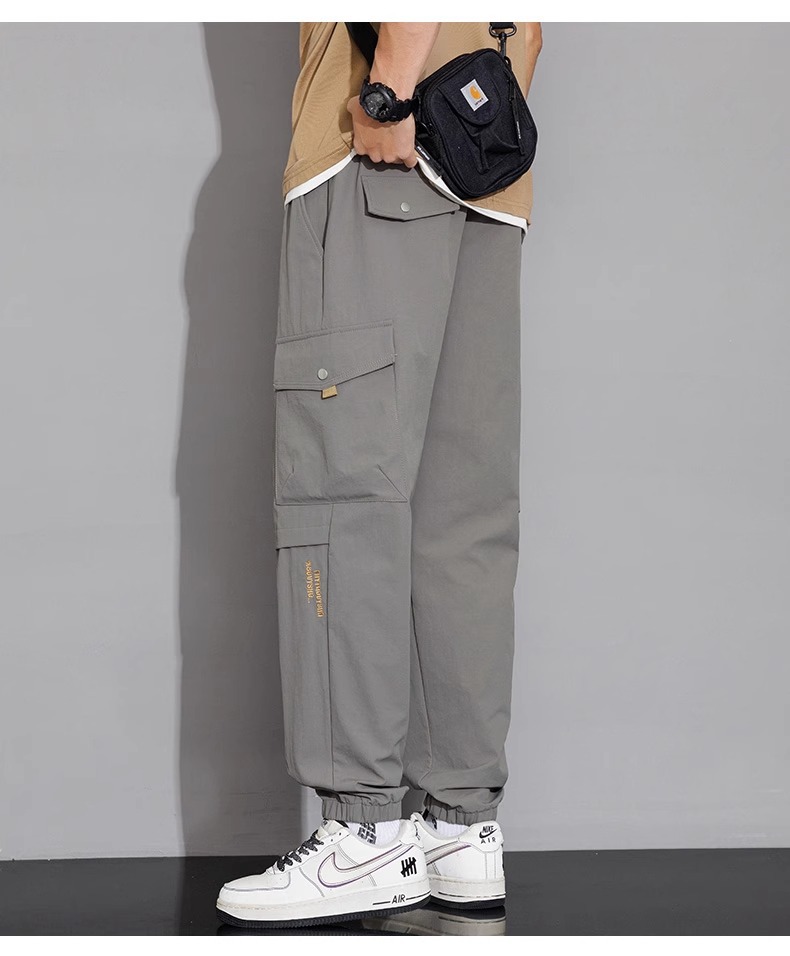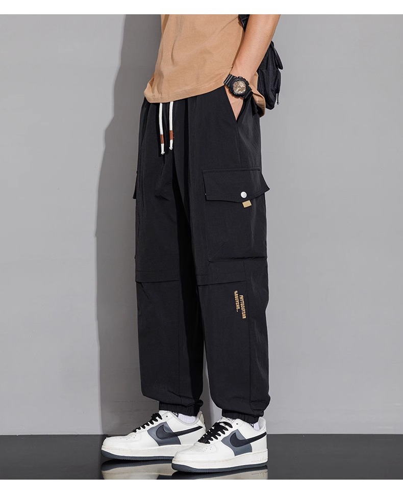 작업복 남자의 느슨한 플러스 사이즈 남자 바지 여름 얇은 2025 새로운 봄과 가을 소년 아이스 실크 편안한 캐주얼 바지