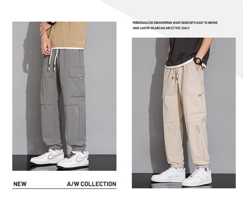 작업복 남자의 느슨한 플러스 사이즈 남자 바지 여름 얇은 2025 새로운 봄과 가을 소년 아이스 실크 편안한 캐주얼 바지스토어 가기