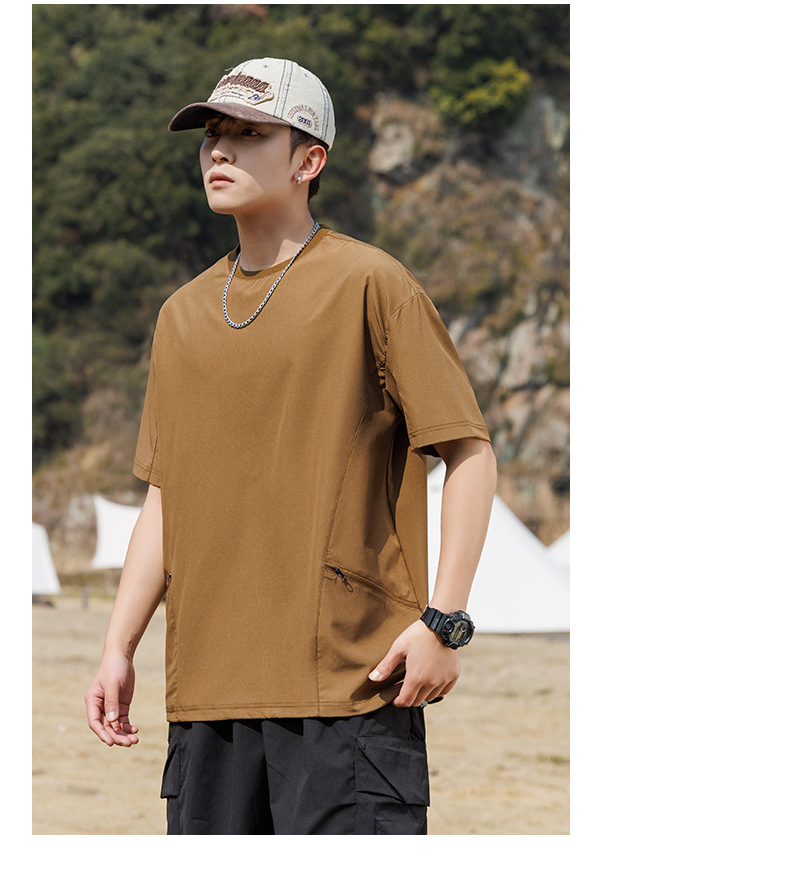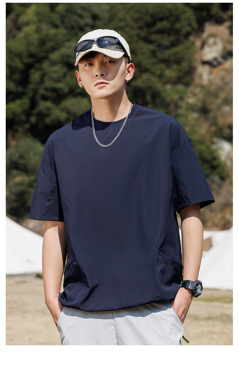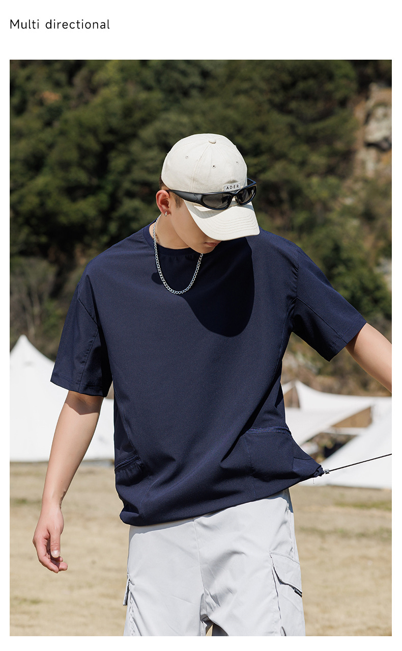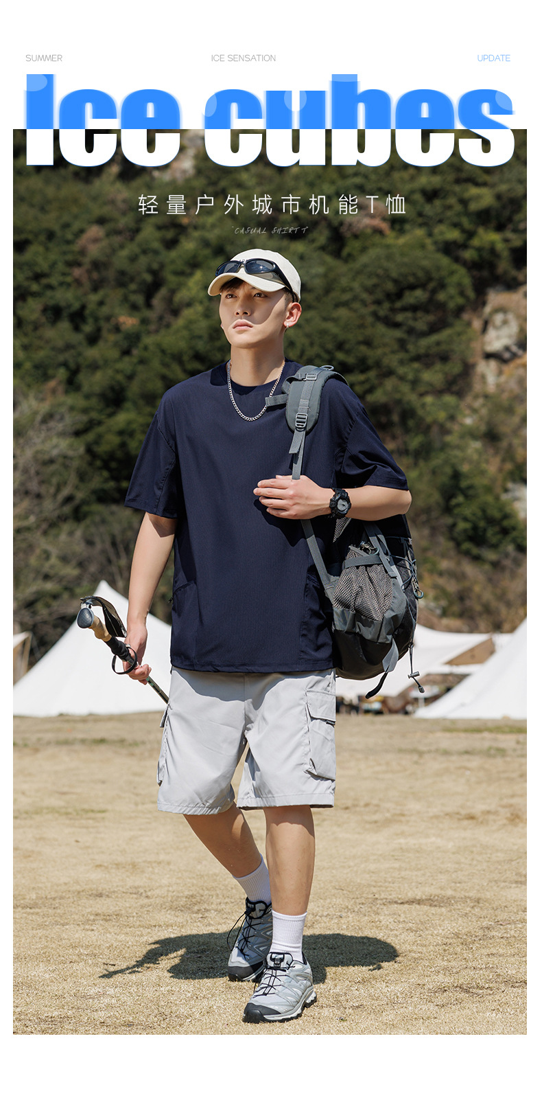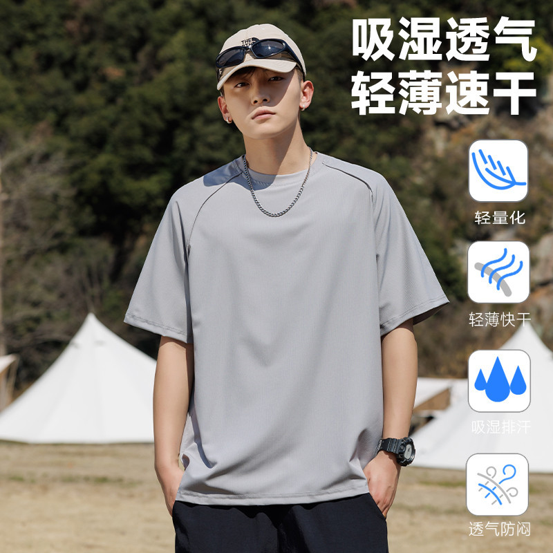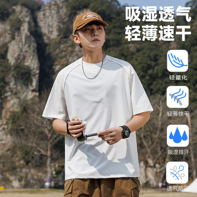 빠른 건조 남성 티셔츠 여름 트렌디 브랜드 남성복 다용도 캐주얼 재킷 자외선 차단 루즈핏 상의 시원한 반팔 남성용