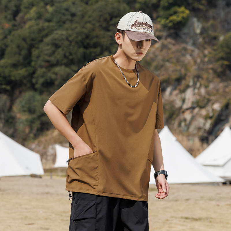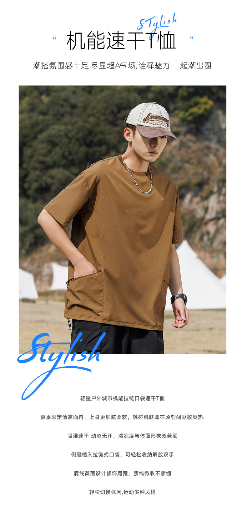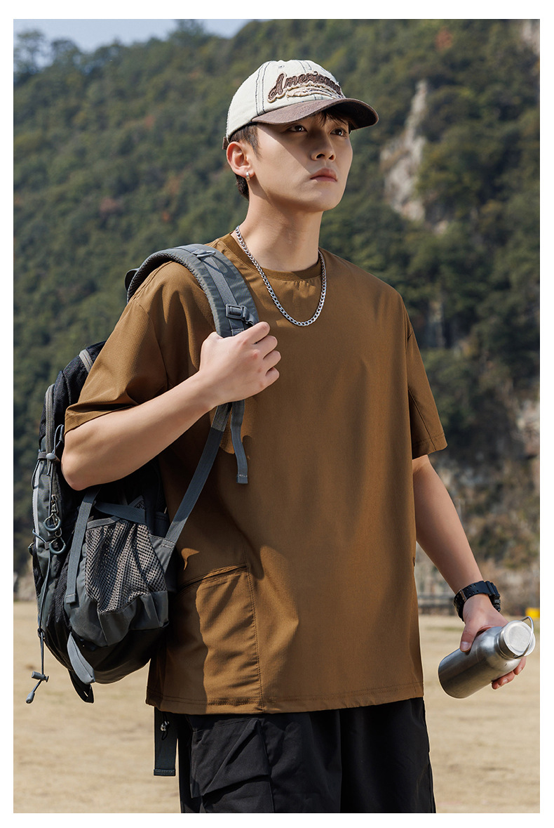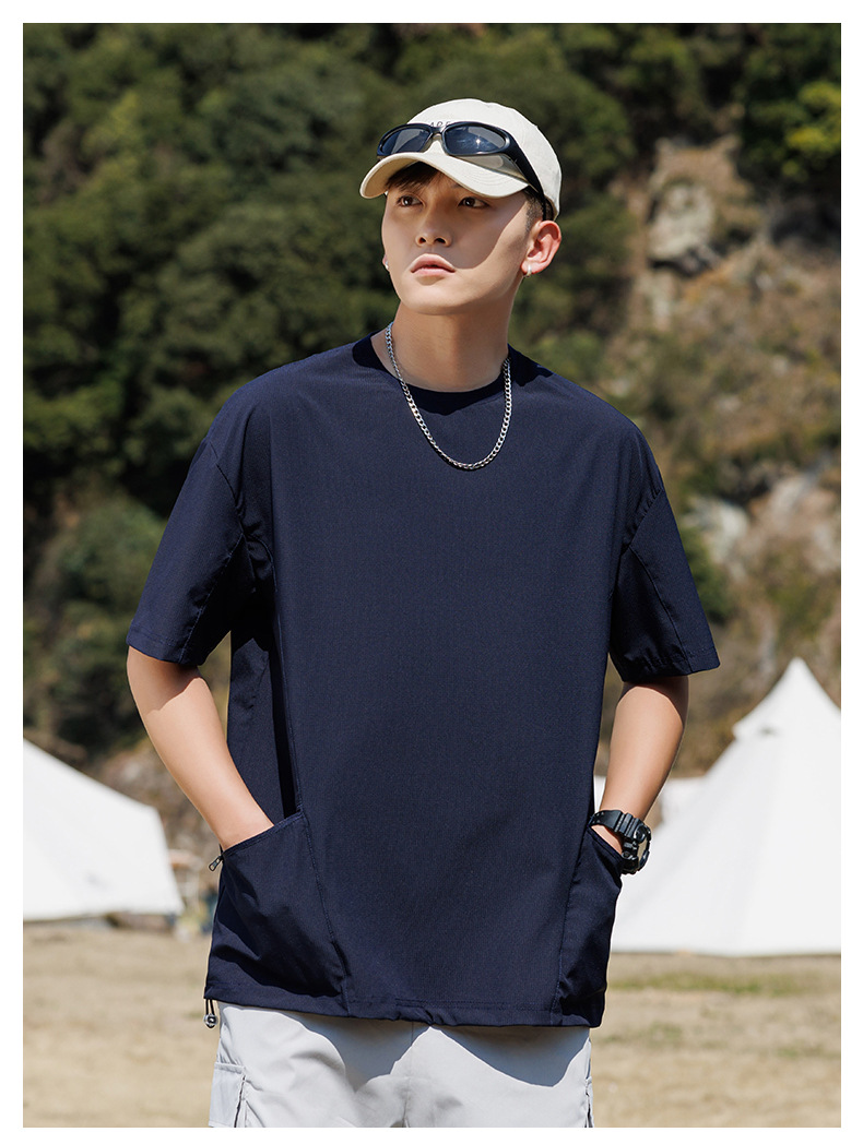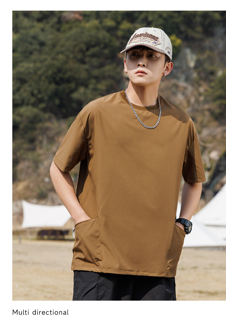 빠른 건조 남성 티셔츠 여름 트렌디 브랜드 남성복 다용도 캐주얼 재킷 자외선 차단 루즈핏 상의 시원한 반팔 남성용